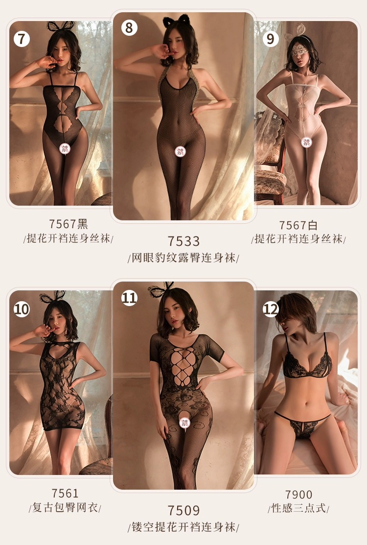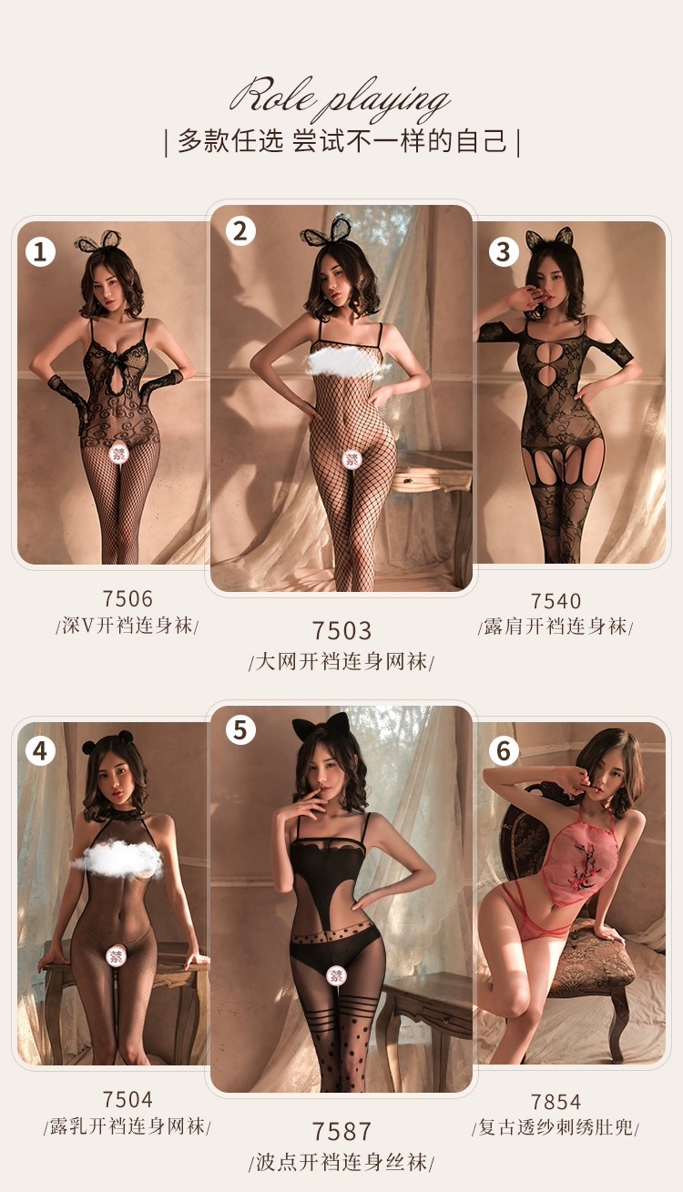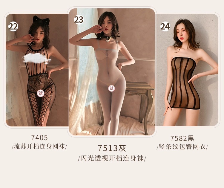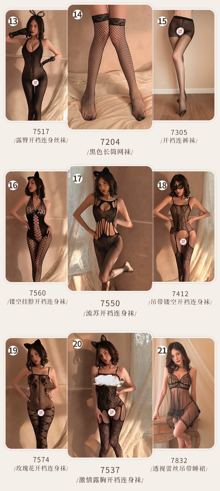 【情趣内衣】霏慕吊带中网眼开档连身袜7503