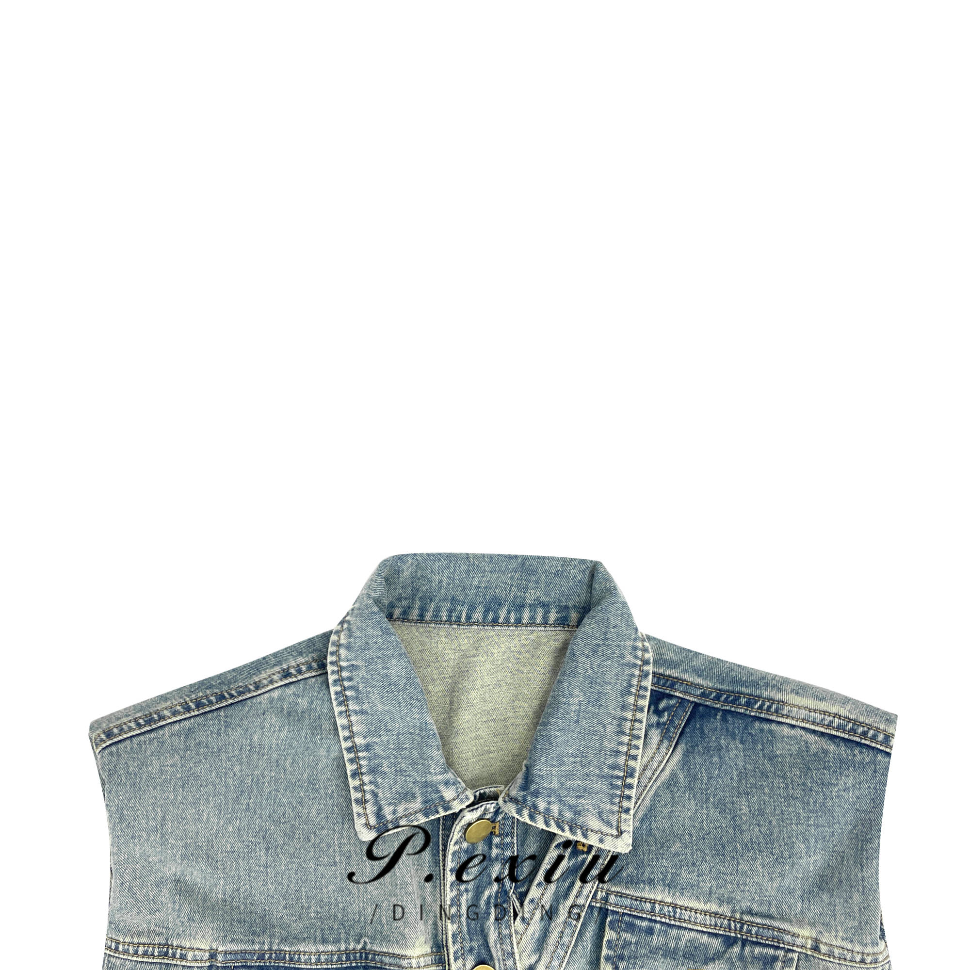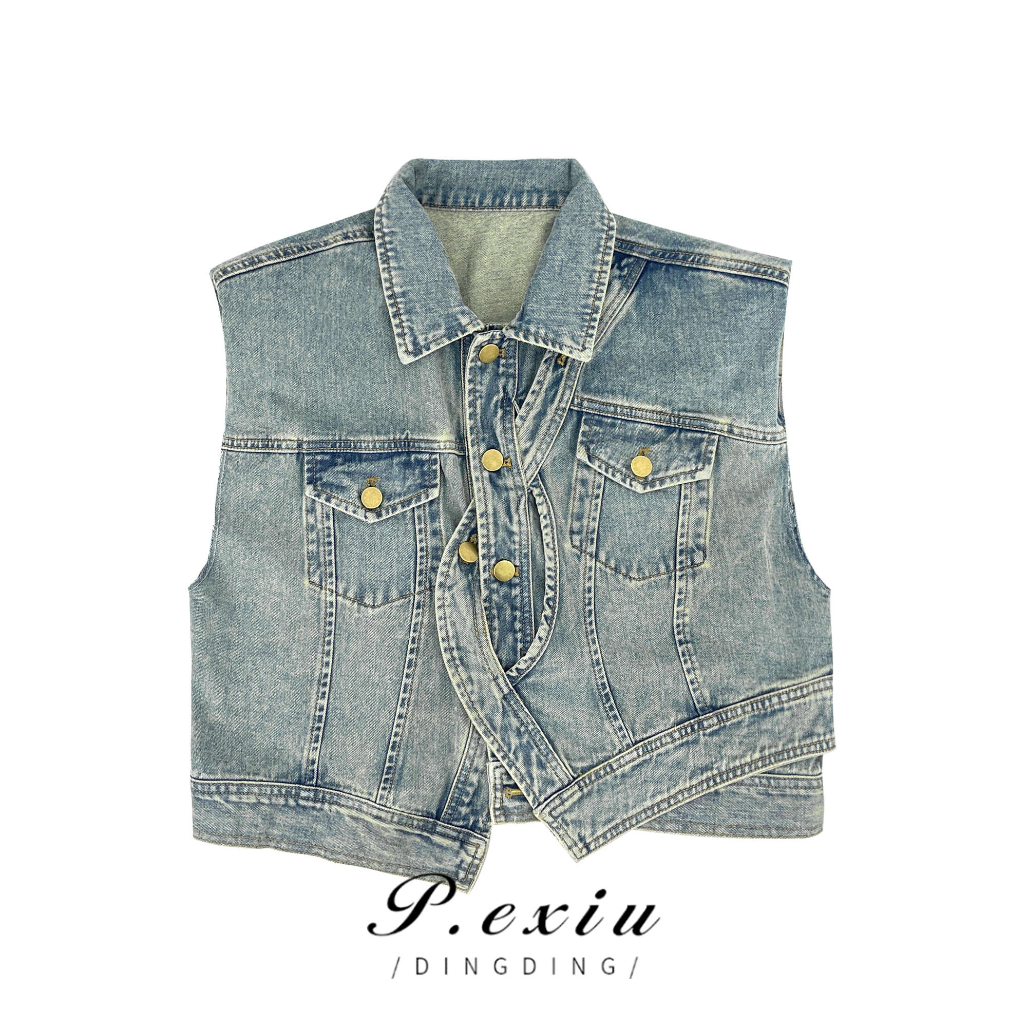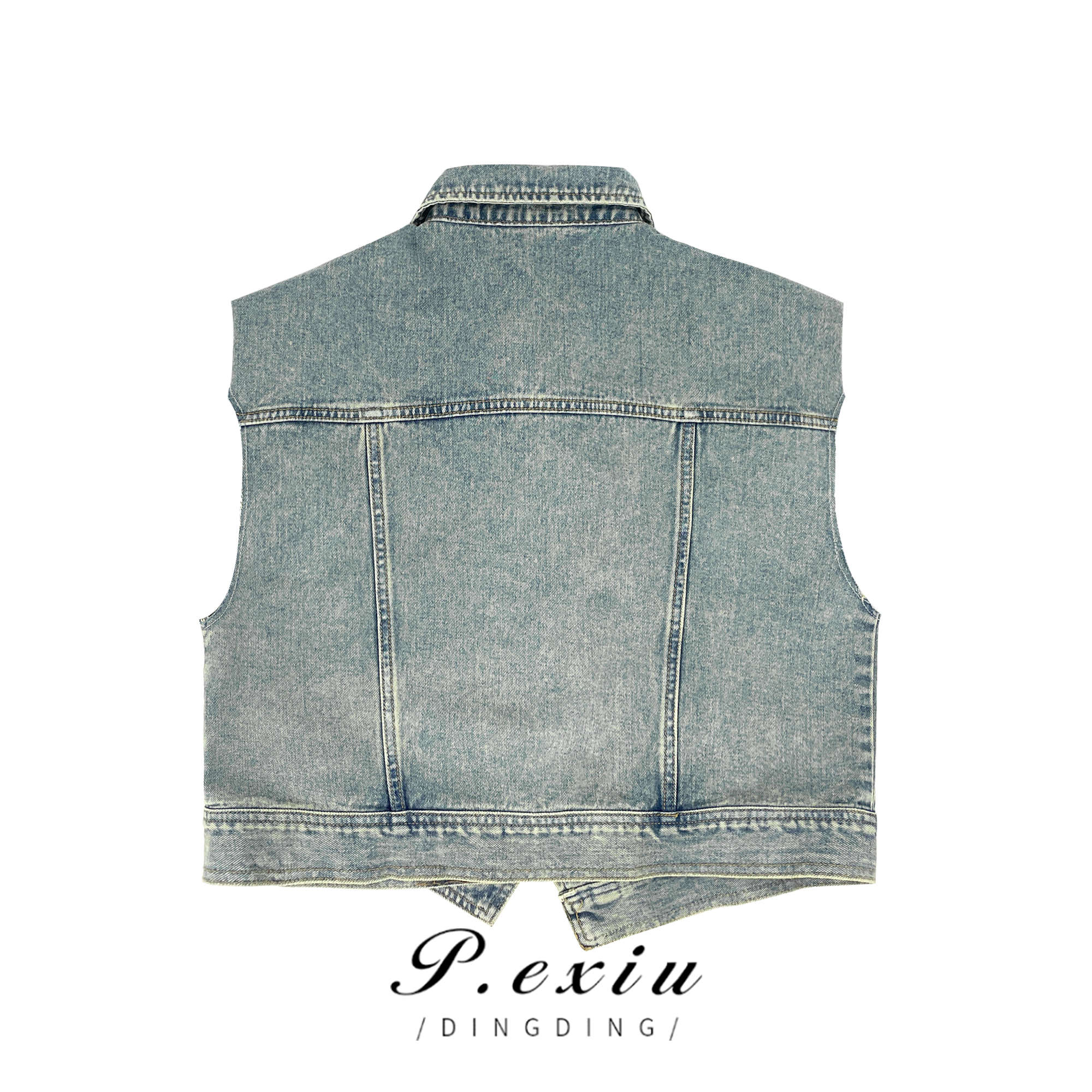 03-3潘依绣丁丁宠粉【现货】0514 PanYiXiu/潘依绣夏季设计感坎肩无袖复古时尚洋气牛仔马甲 D5896