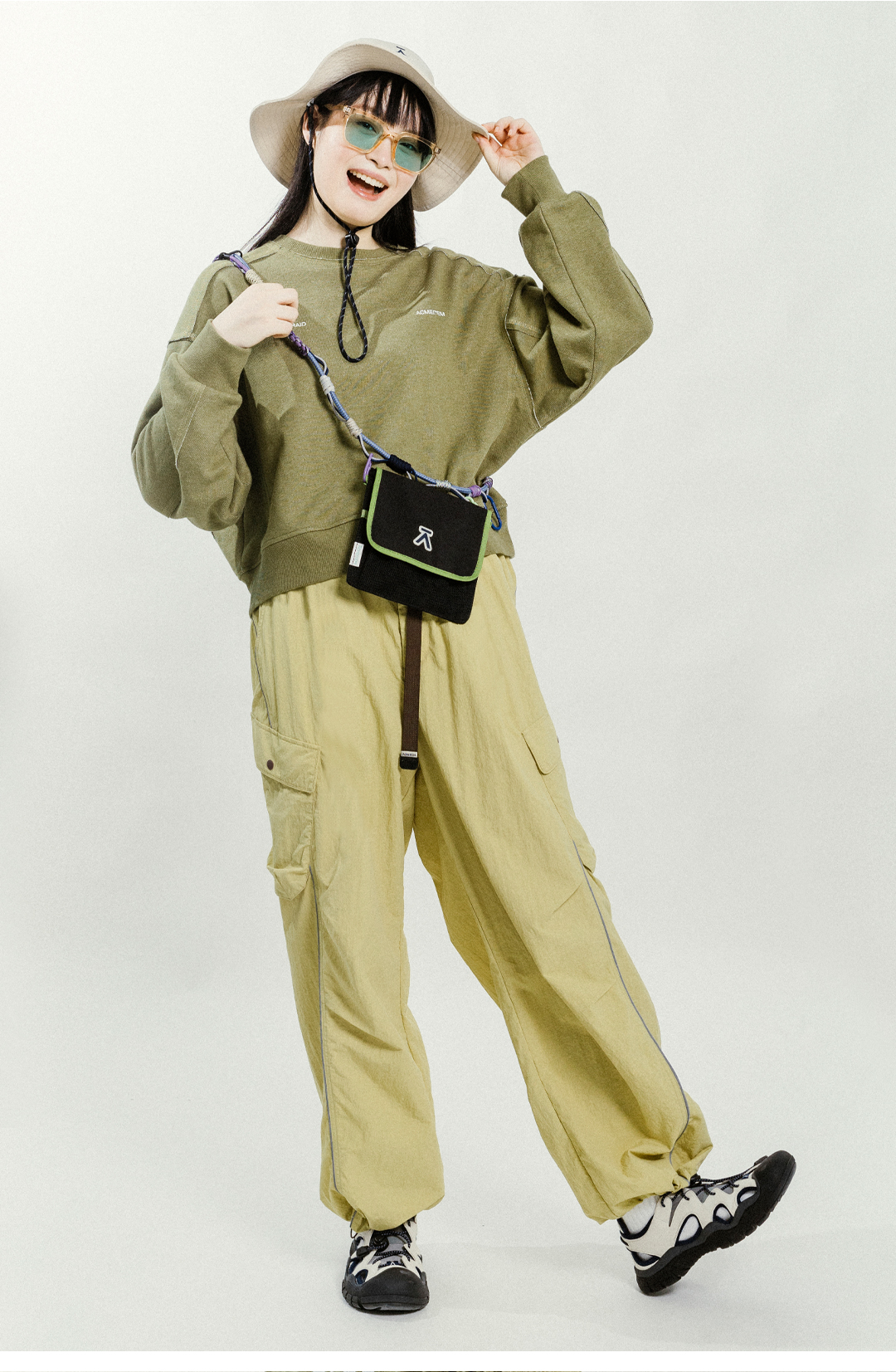 【童品会专属】ACMEITEM 爱棵米 春季户外情侣骑行长裤可调节宽松休闲长裤子男女 GAG3020341A