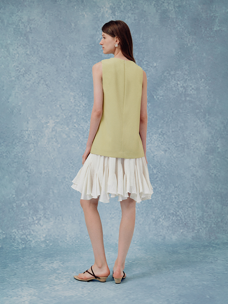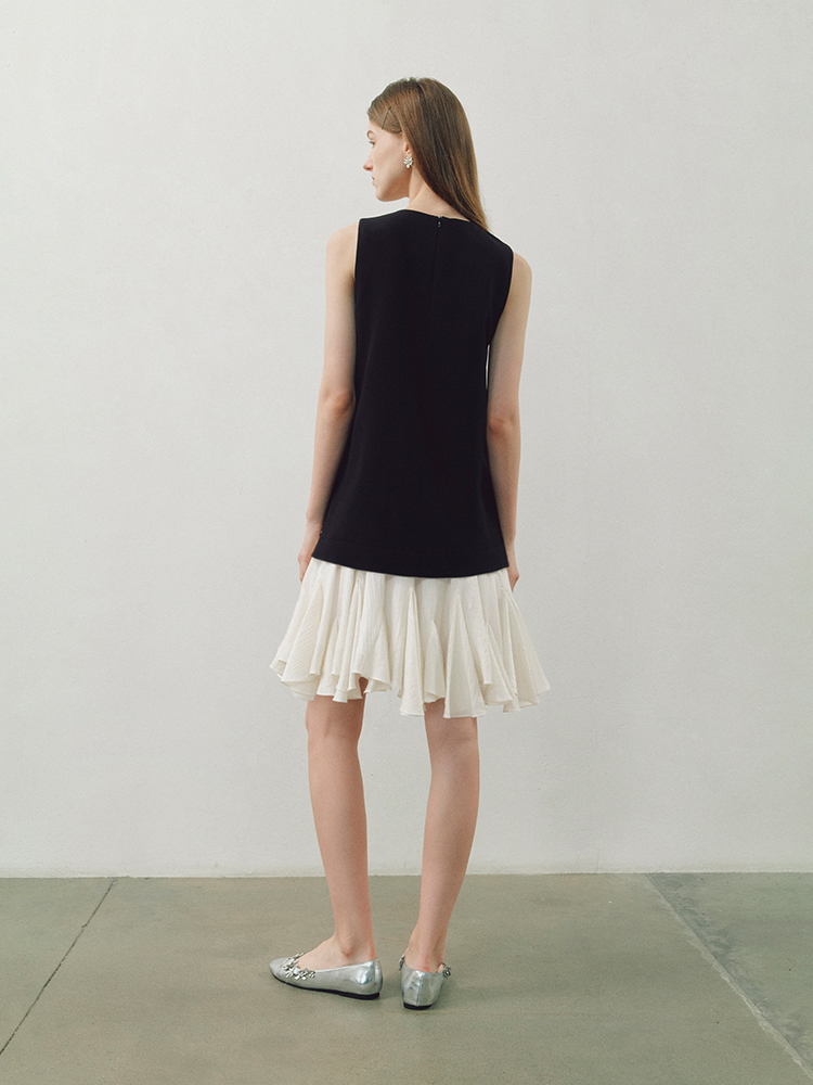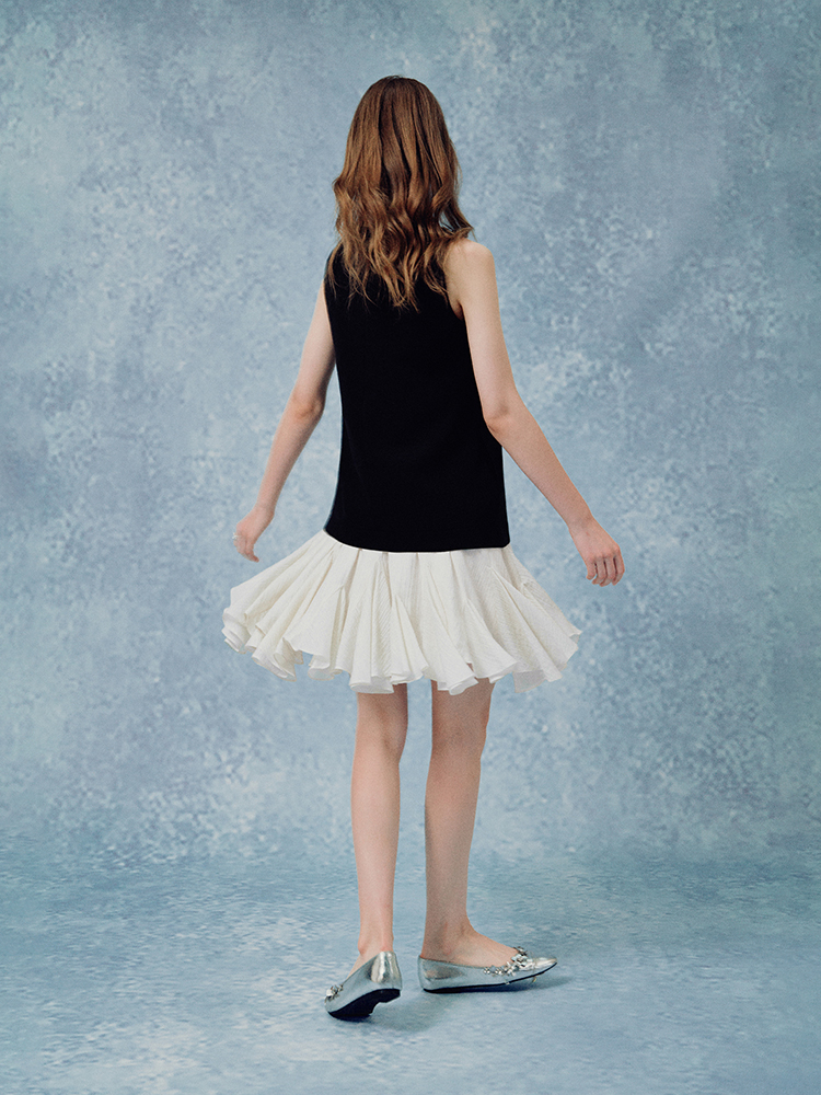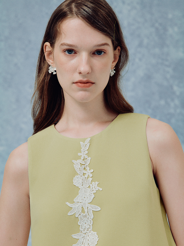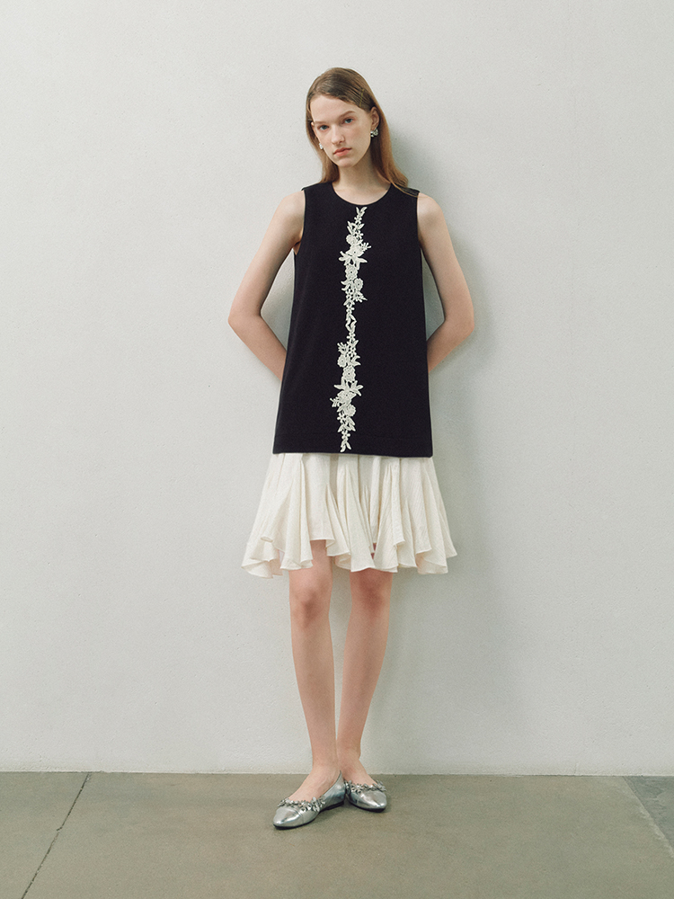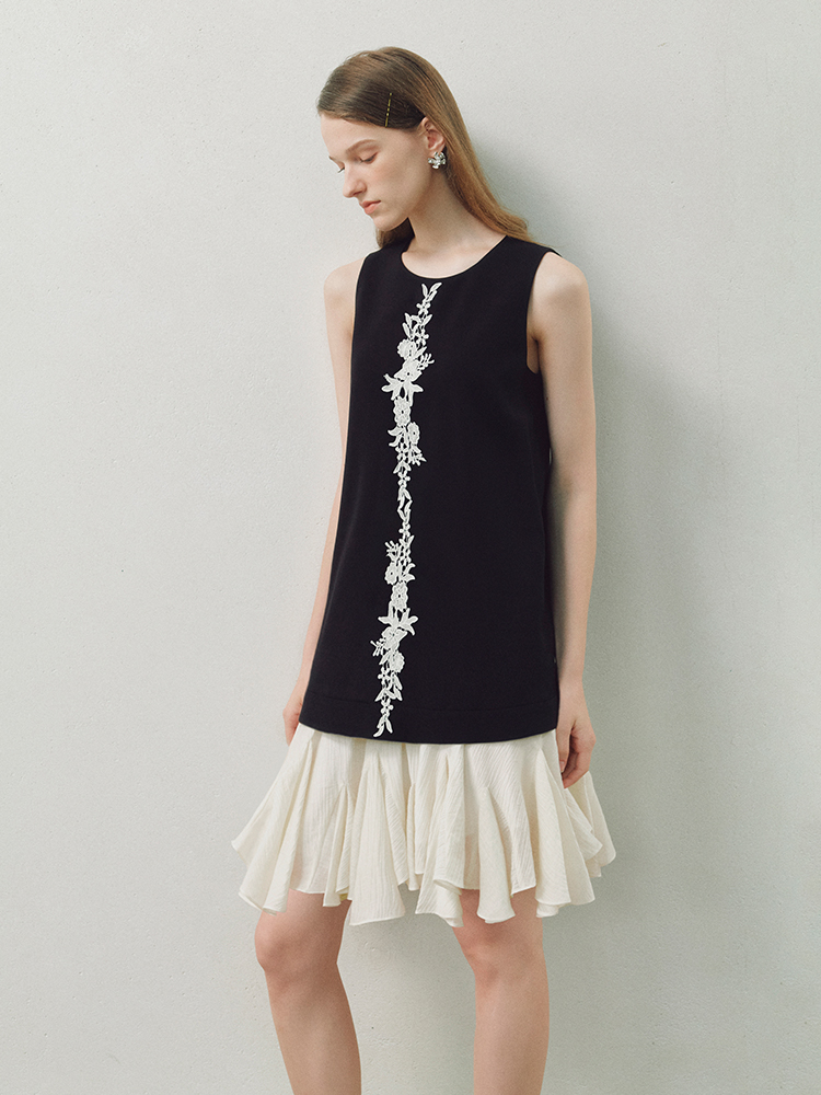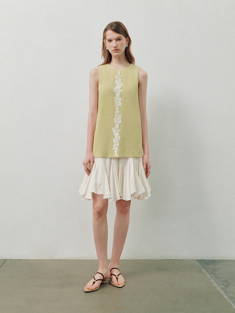 ForPoem 现货 25/SS原创设计蕾丝花边醋酸拼接不规则下摆短款连衣裙