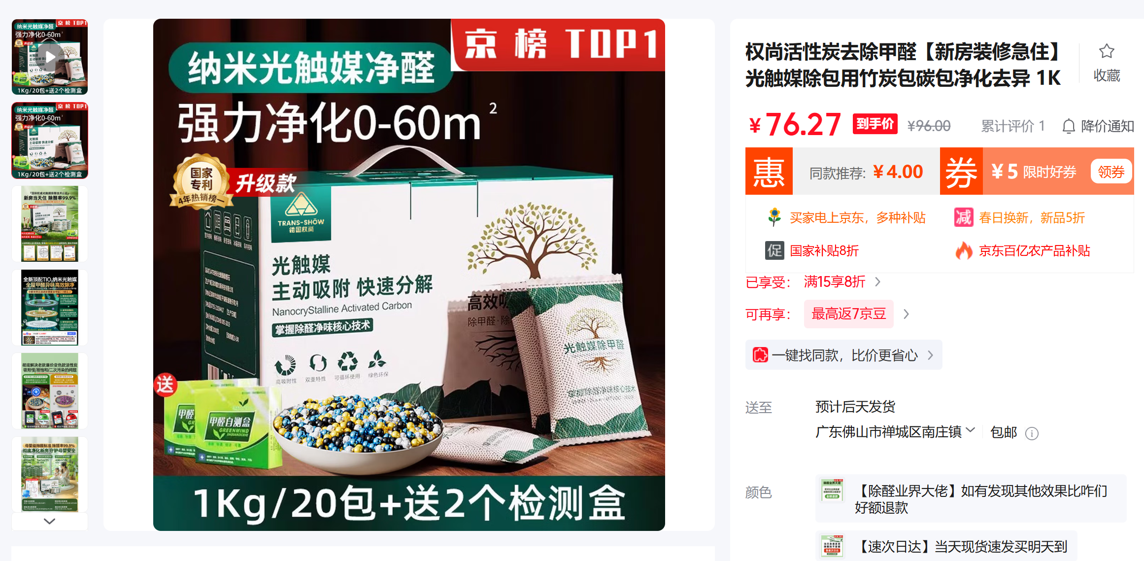 【环保安全】德国权尚 光触媒除甲醛 纳米矿晶活性炭包 新房装修除味 高吸附性 可循环使用 1kg/盒