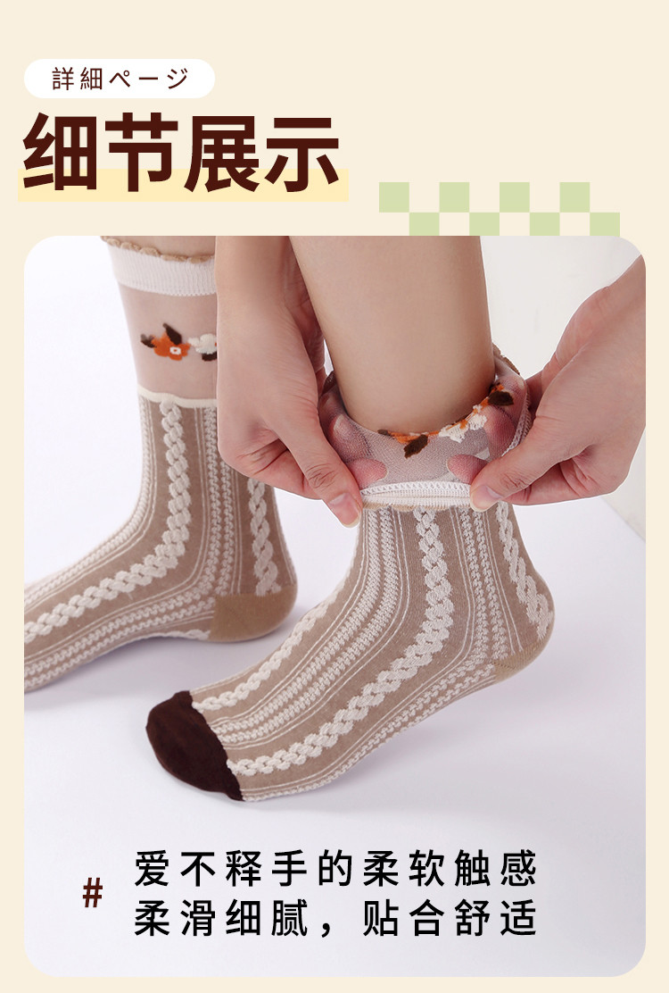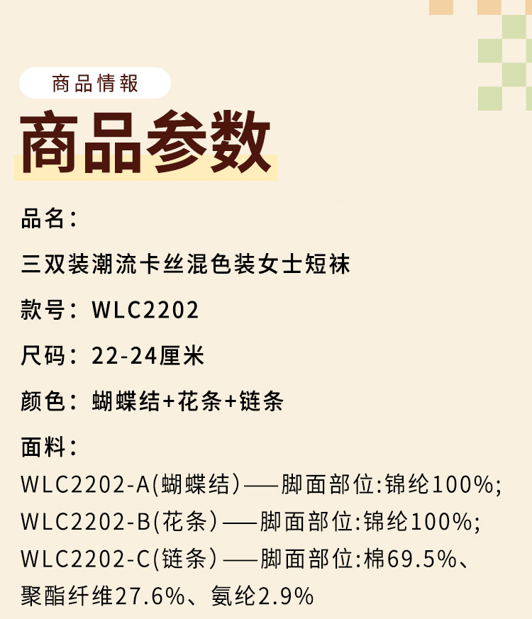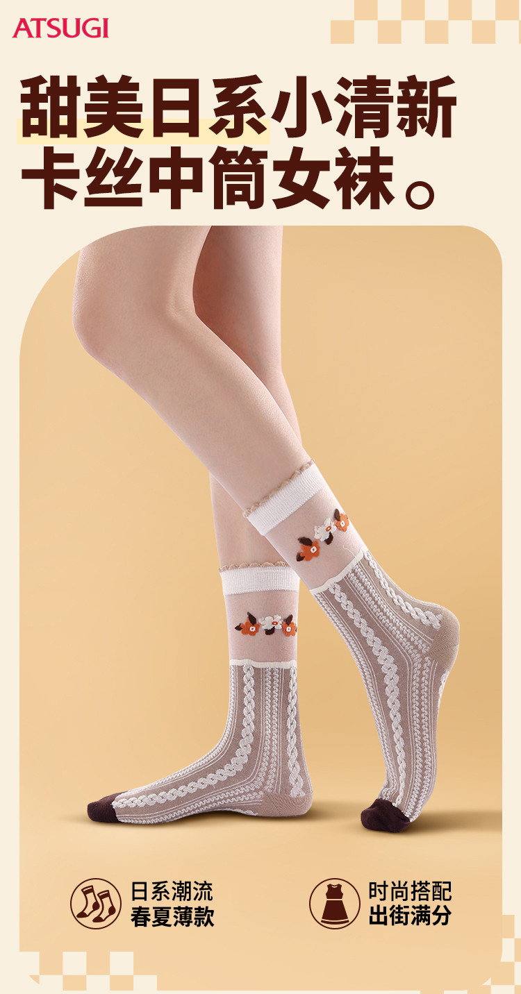 厚木Atsugi日系春秋款小清新中筒女袜三双潮流卡丝混色装 WLC2202
