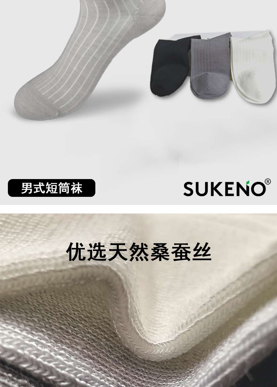 SUKENO桑蚕丝吸汗透气男士薄款短袜