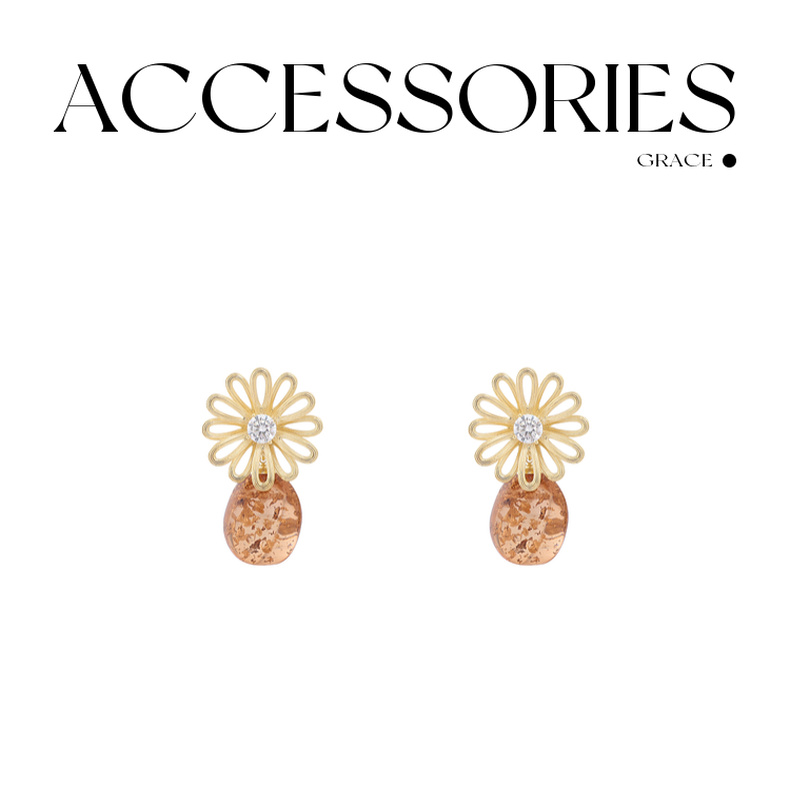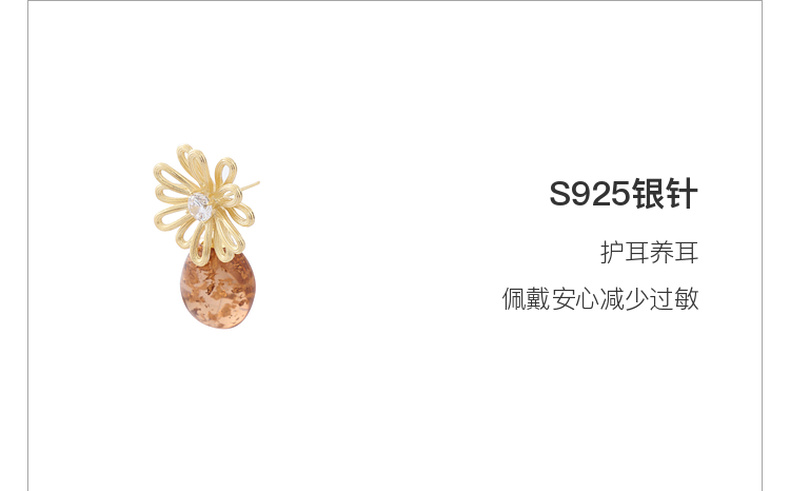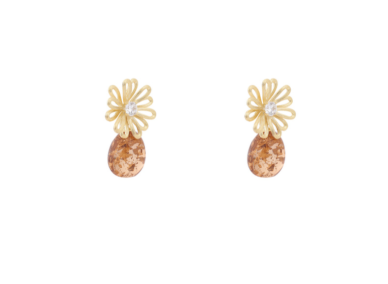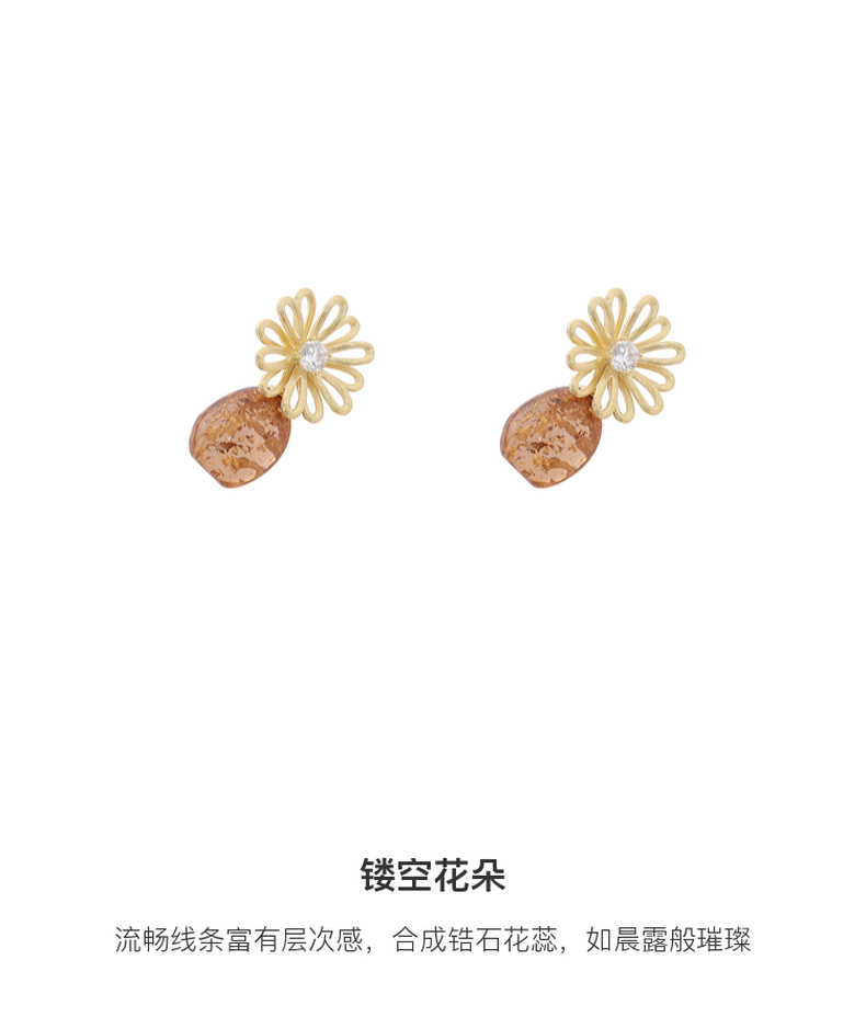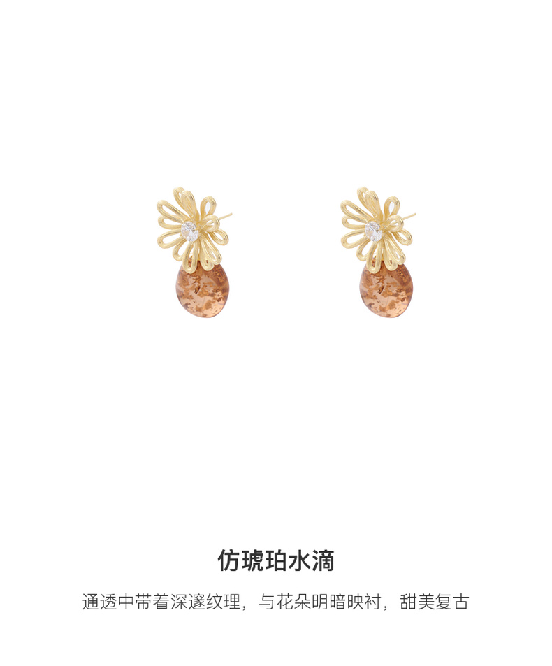 【琥珀流光】三彩2025新款复古花朵耳环S925银针镂空轻奢锆石甜美