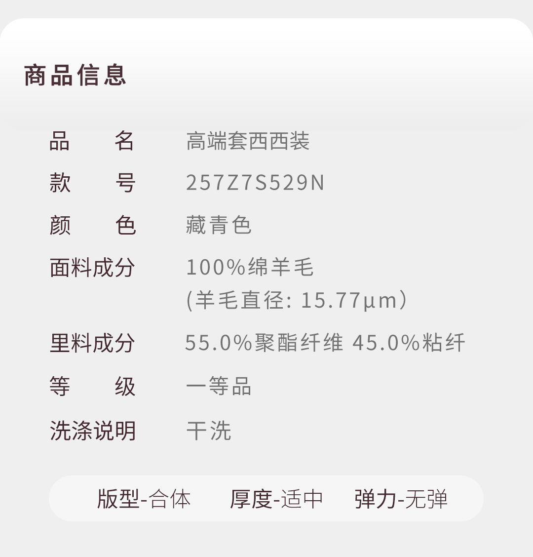 【黑金五号】50羊毛半麻衬高端套西西装单件上装230A0S505N