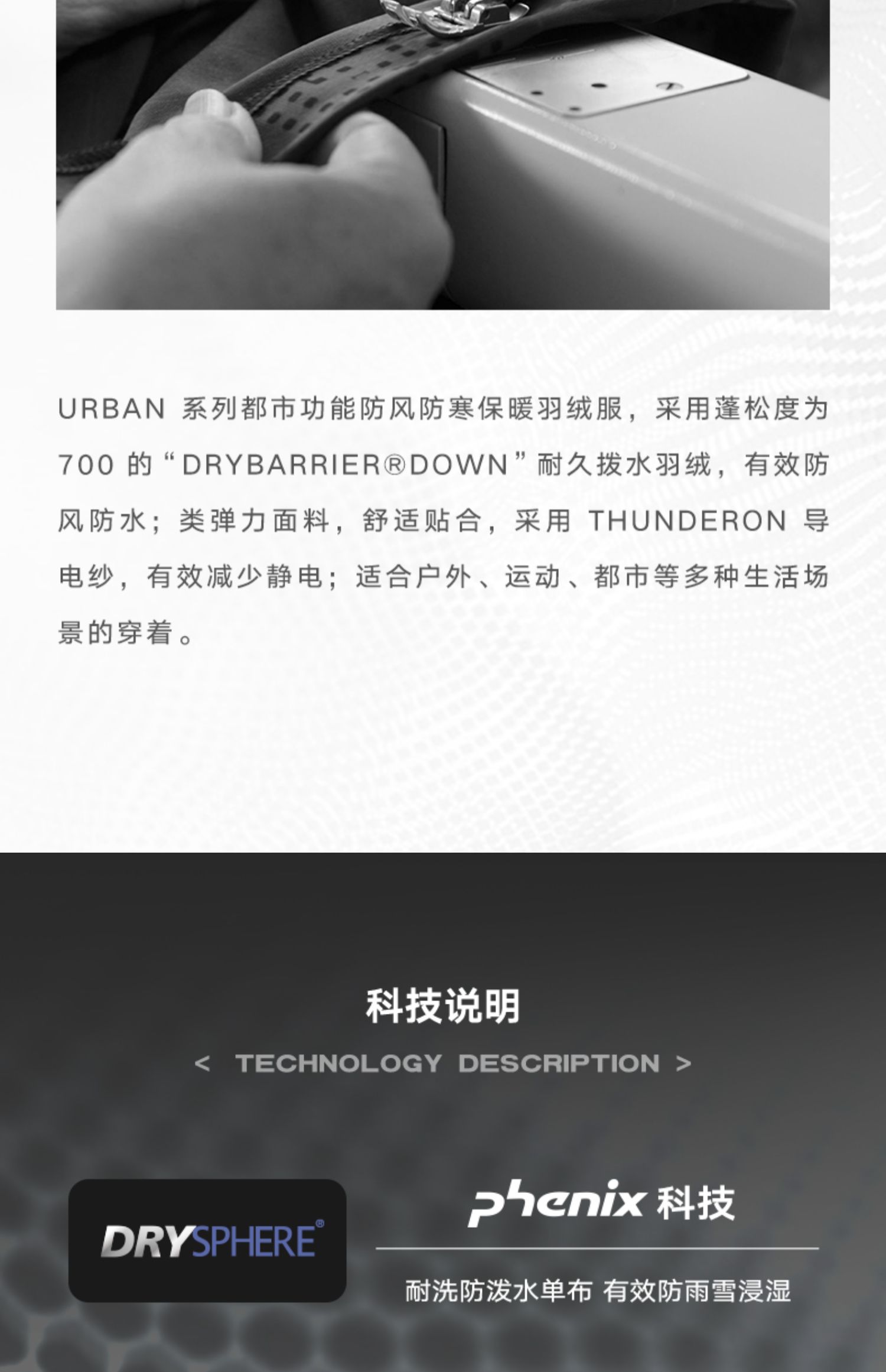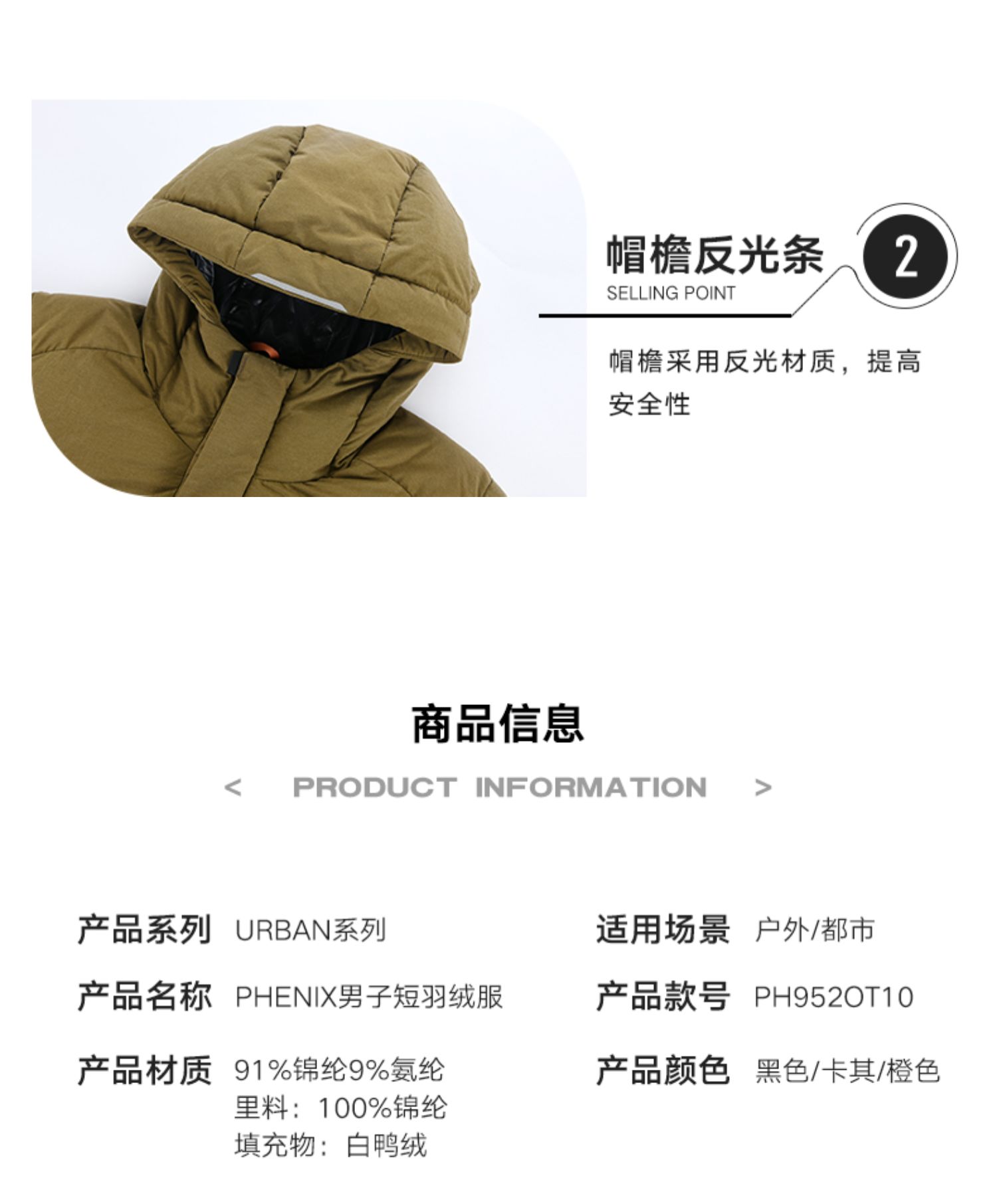 Phenix菲尼克斯Urban男子户外休闲运动保暖加厚短款羽绒服防水