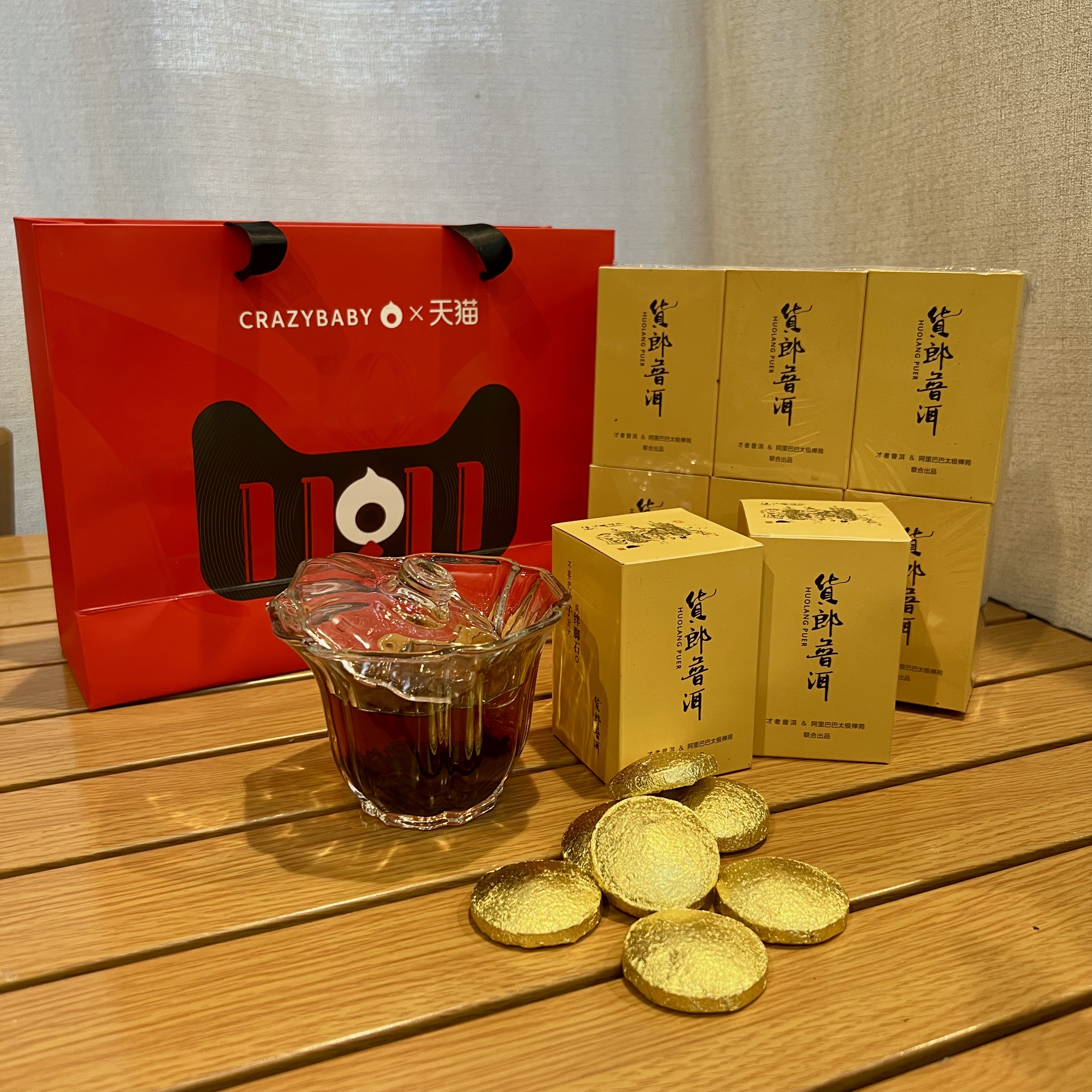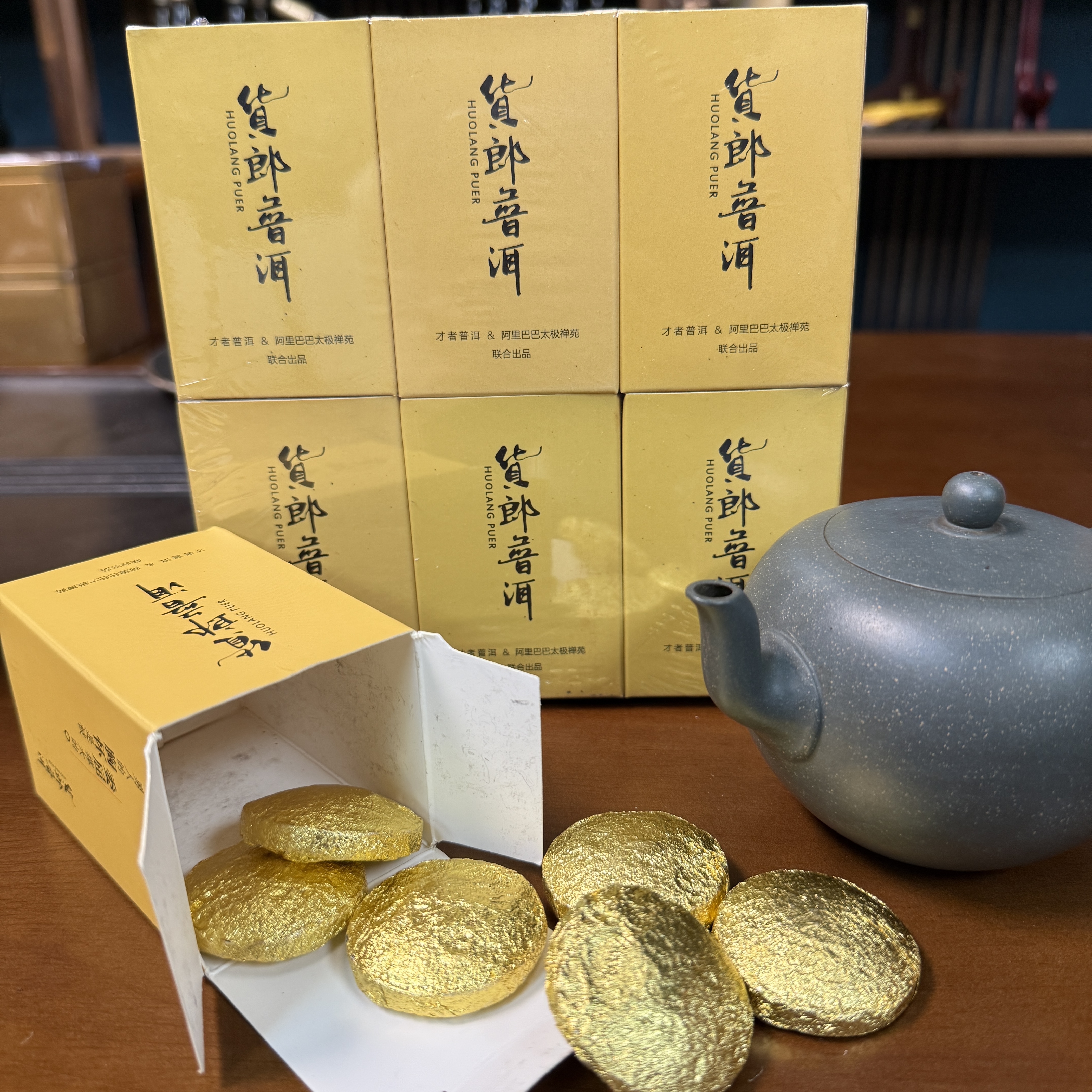 太极禅苑 货郎普洱茶(生茶)紧压茶,土话装,用天猫的包装纸袋,一袋6小盒,每盒7饼,每饼8克(一泡)等于336克。