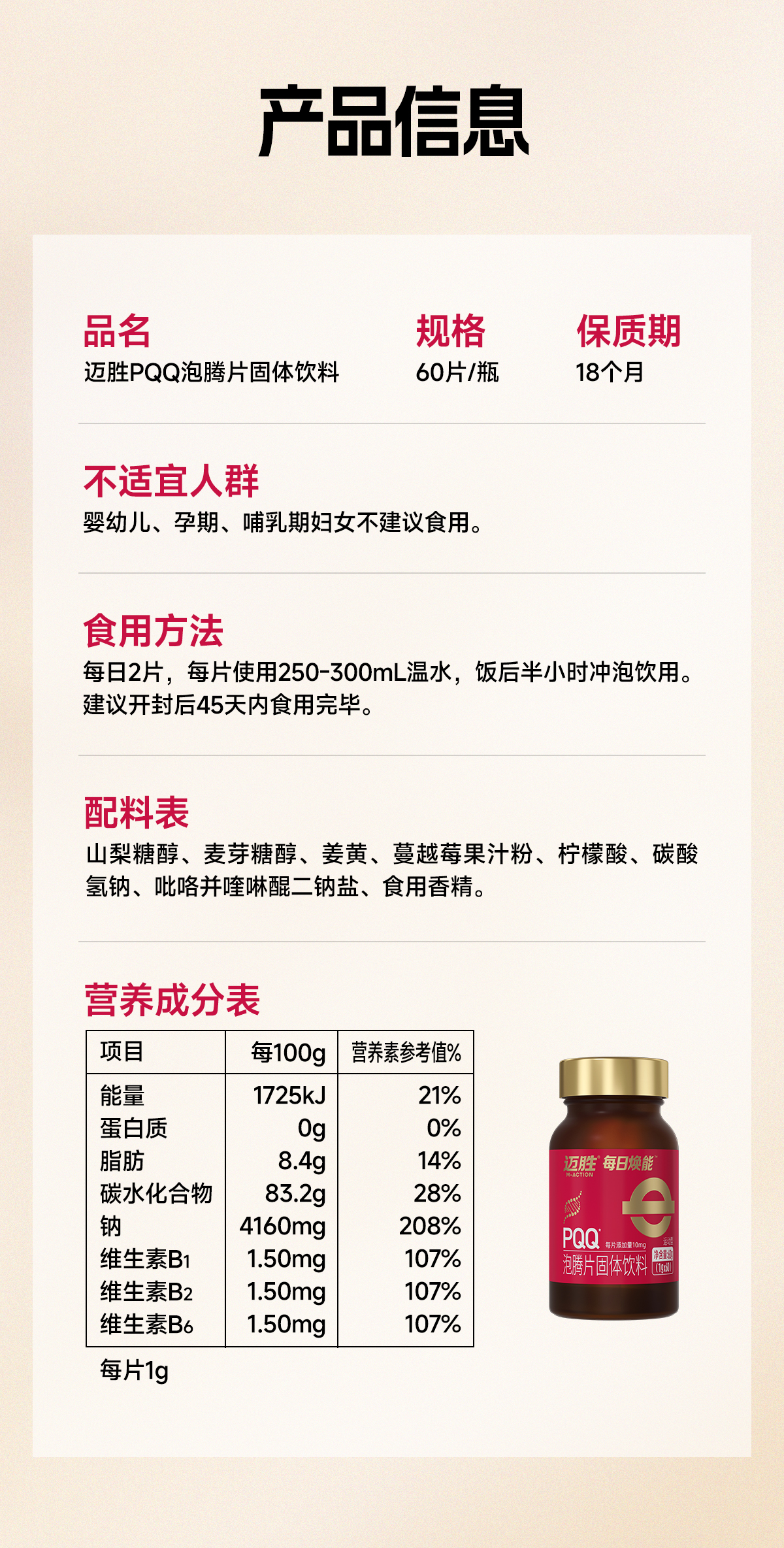 【迈胜星球 | 迈胜每日焕能PQQ 】10mg*60片/瓶