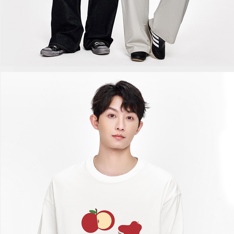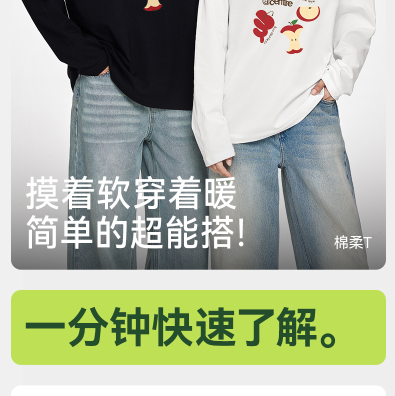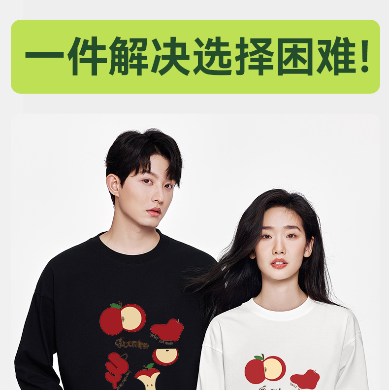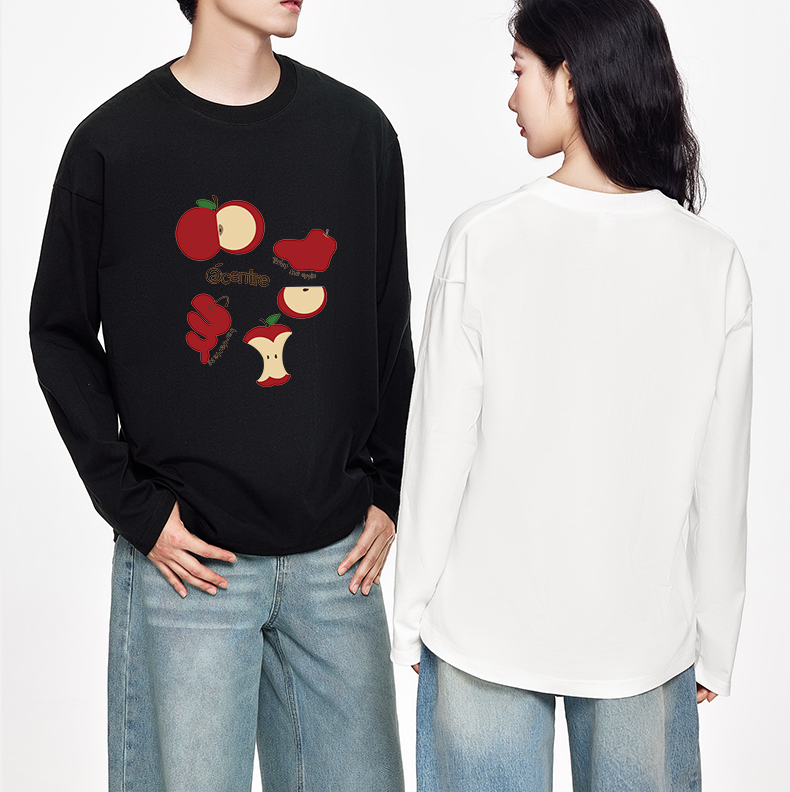 「棉的美学」纯棉打底衫长袖T恤薄款苹果印花小众设计感宽松上衣