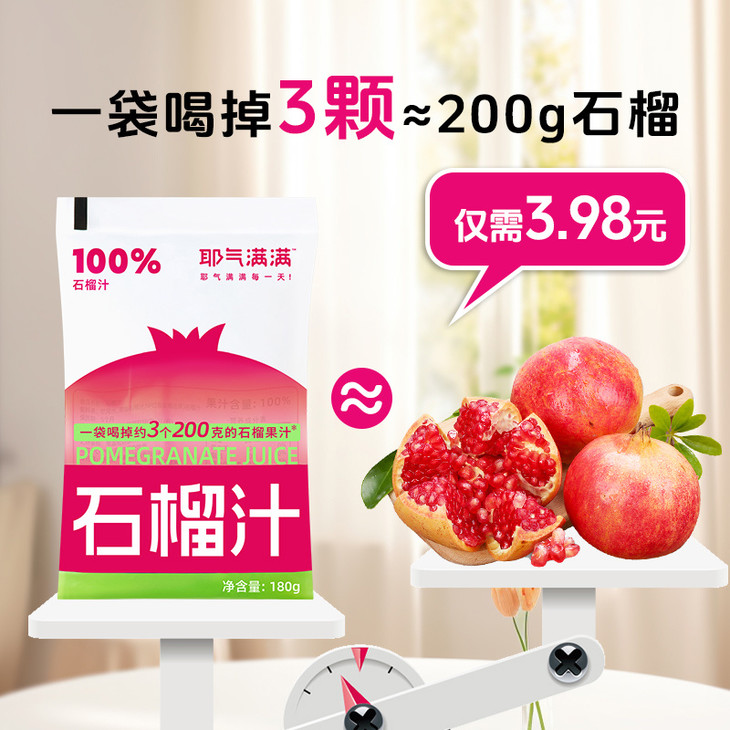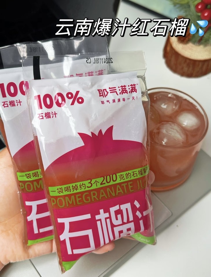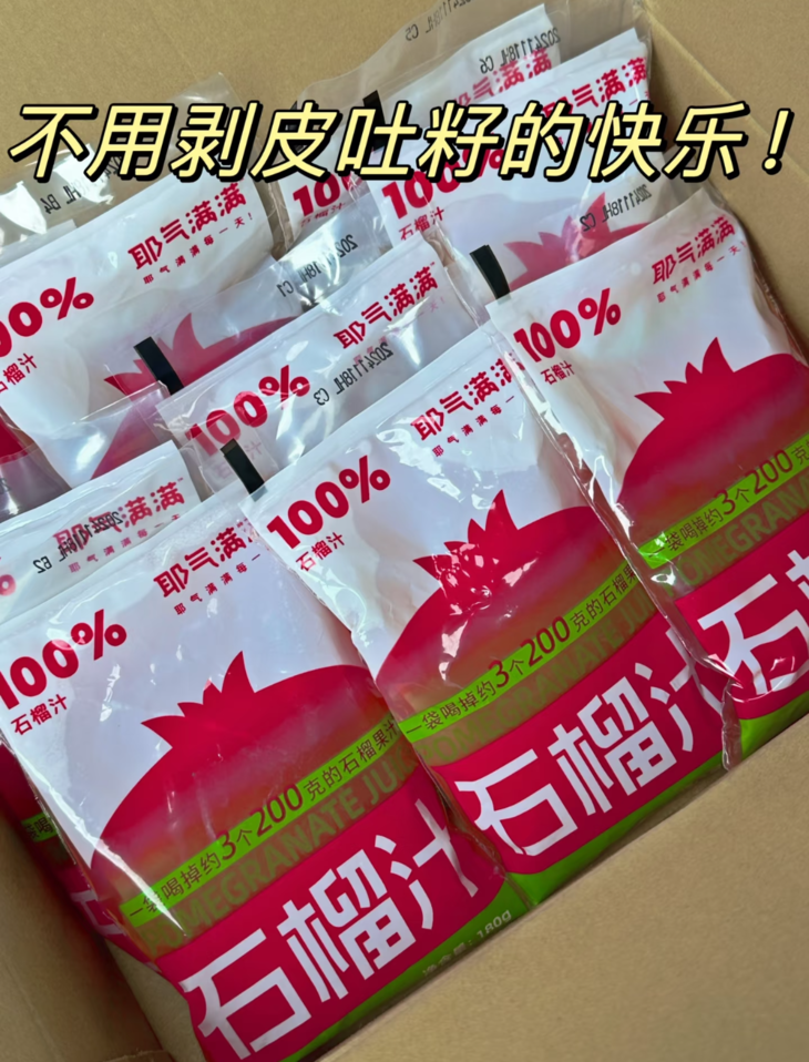 //【耶气满满100%石榴汁】!一袋喝掉约3个200g石榴🍷天然精华,纯净享受😋唤醒活力,尽在每一滴纯正石榴汁中,和现榨一样好喝! ✅精选云南红石榴,甄选好果,坚持品质