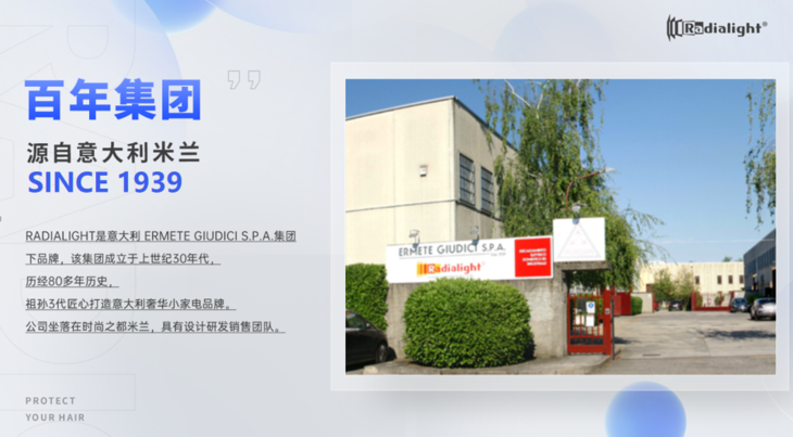 Radialight 是意大利米兰一个老牌子家电品牌,创建于1939年, 在米兰总部拥有自己的小家电工厂,以及欧洲研发中心,公司获得100多项欧盟原创专利。