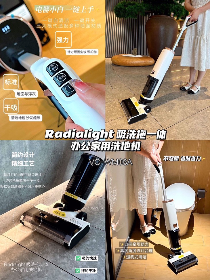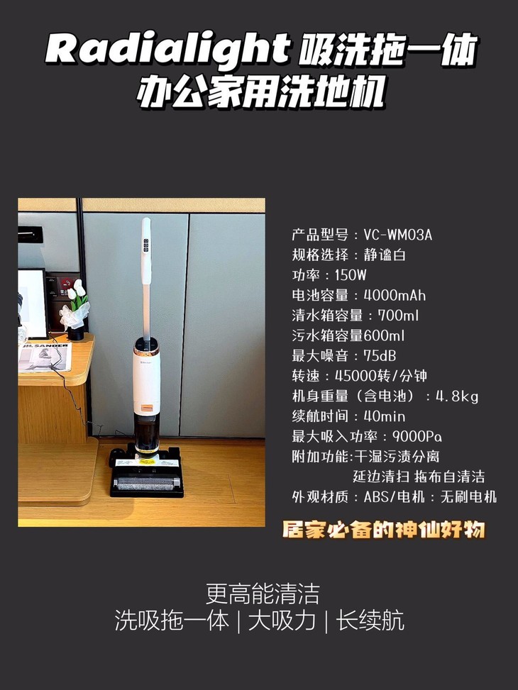 Radialight 吸洗拖一体办公家用洗地机看起来像高科技的把,好像没什么特别,但是用上后就真的发现了新大陆👀