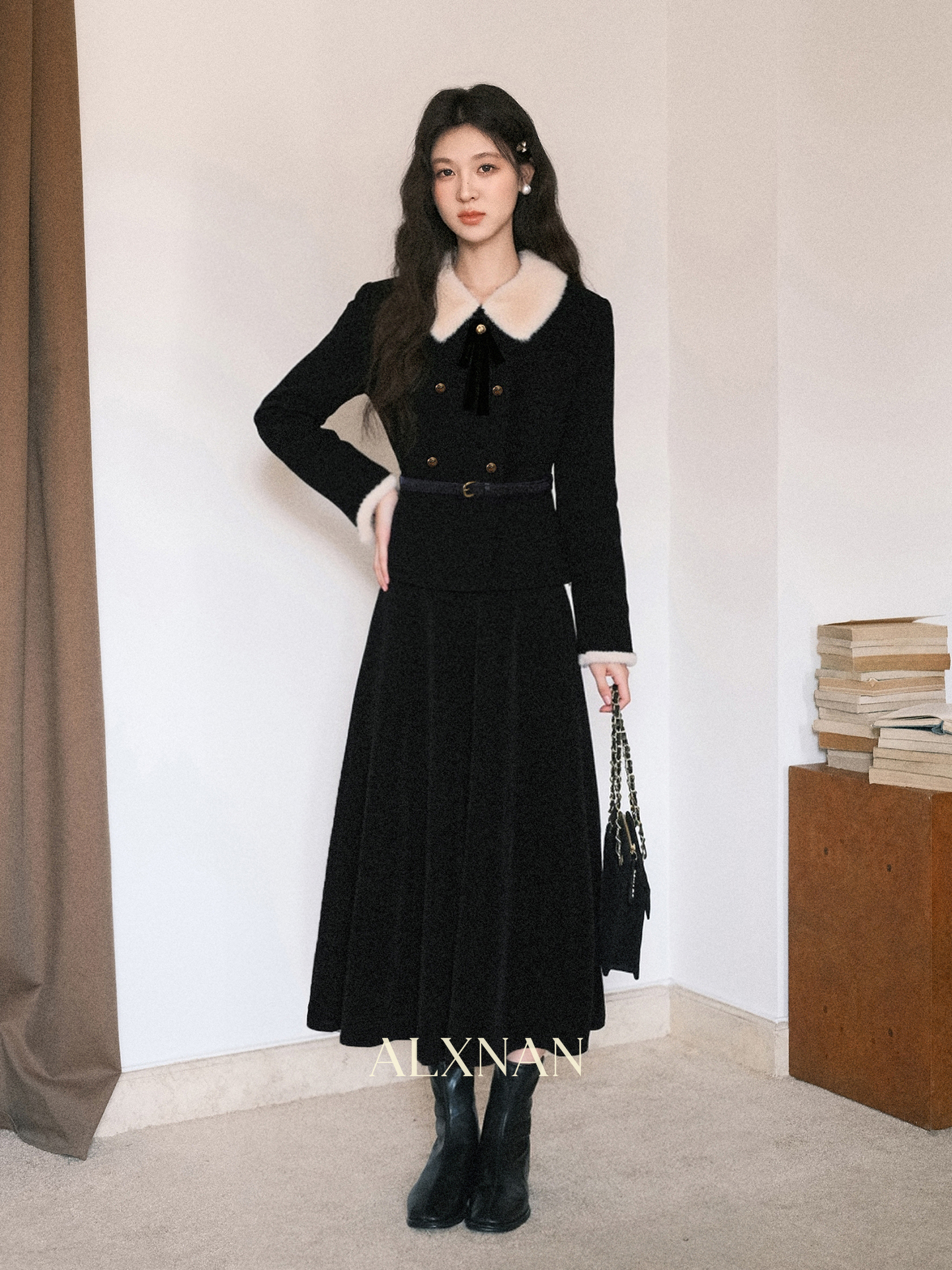 鹿向南「雾都晚宴」法式高级感千金风气质女秋冬毛呢外套半裙套装