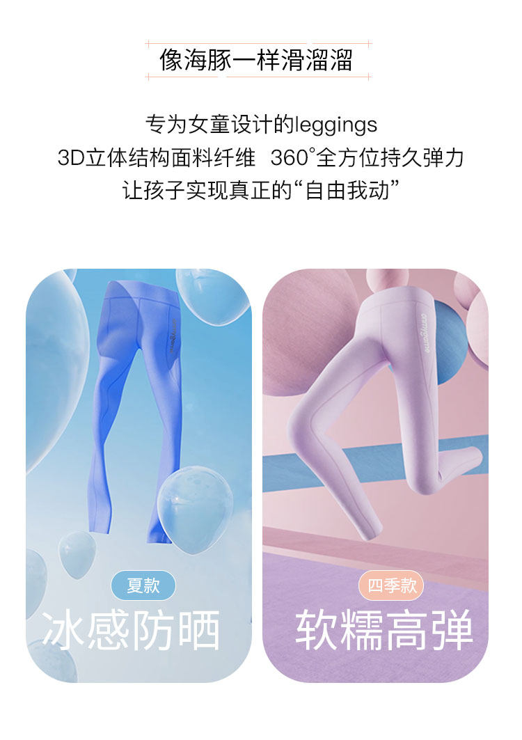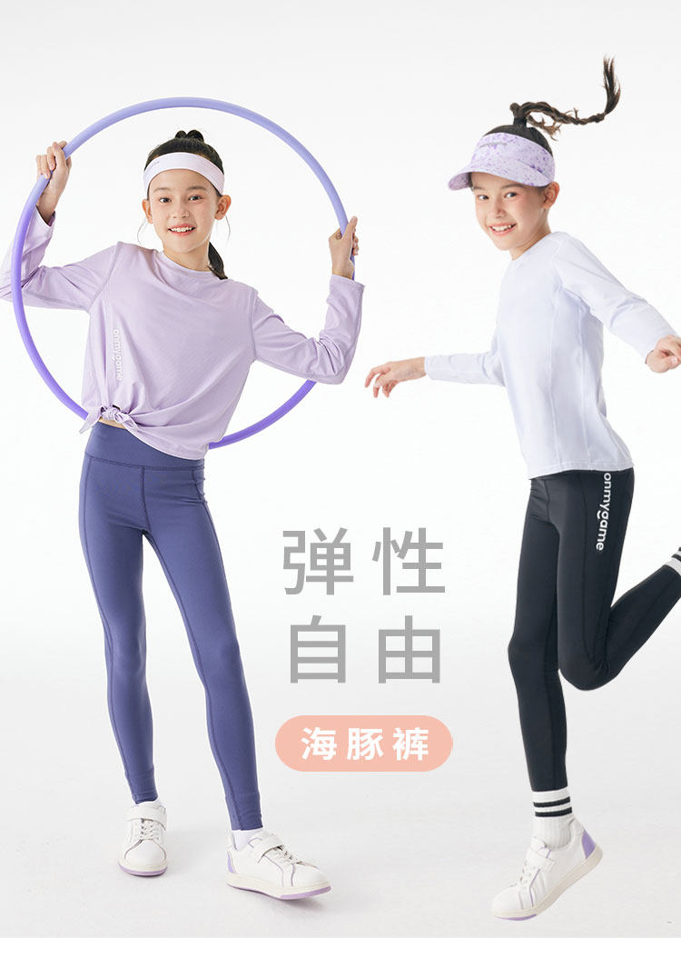 onmygame〖海豚裤〗女童瑜伽裤春装儿童鲨鱼裤轻薄紧身运动打底裤