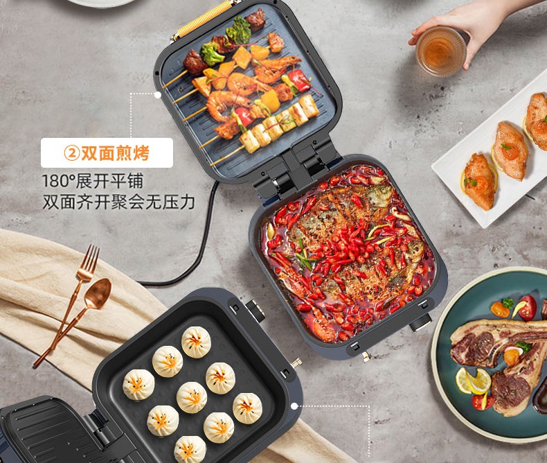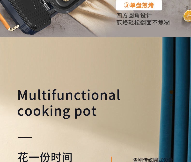 摩飞电器(Morphyrichards)多功能锅 家用电火锅料理锅*锅电煮锅热锅机械升降 4升容量 火锅锅 MR9090 英石红