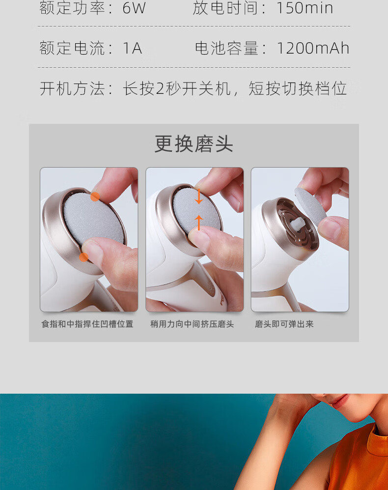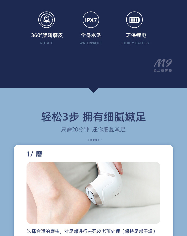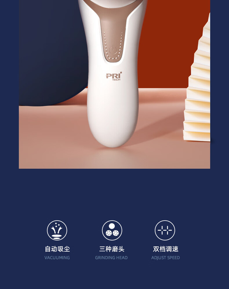 匹奇(PRITECH)电动磨脚器 去脚老茧死皮刀家用工具修足机充电式修脚神器 M9