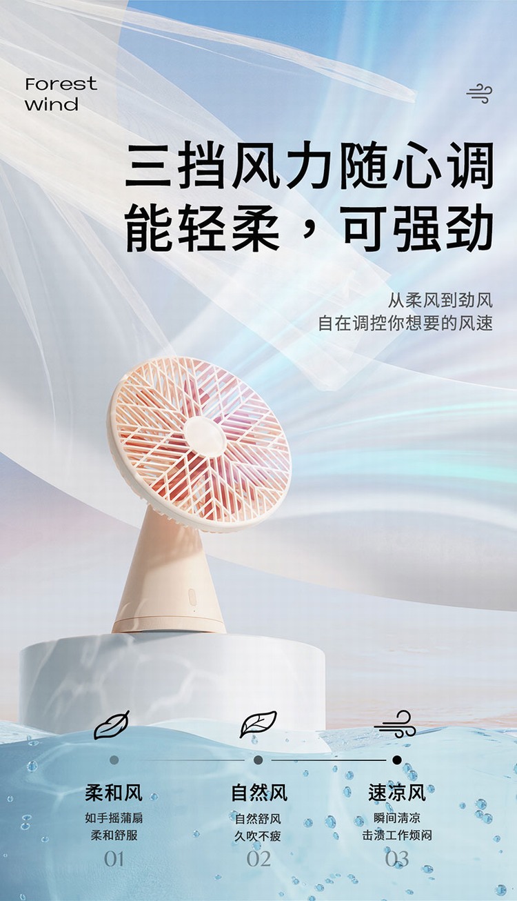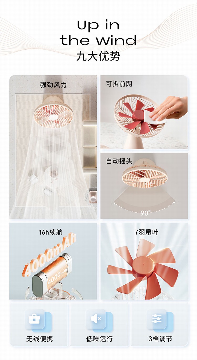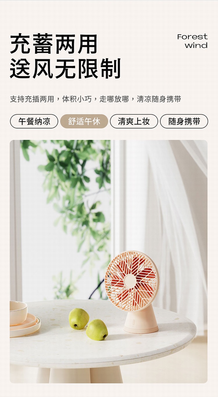 向物桌面小型电风扇无线长续航自动摇头版 DSHJ-S-2215