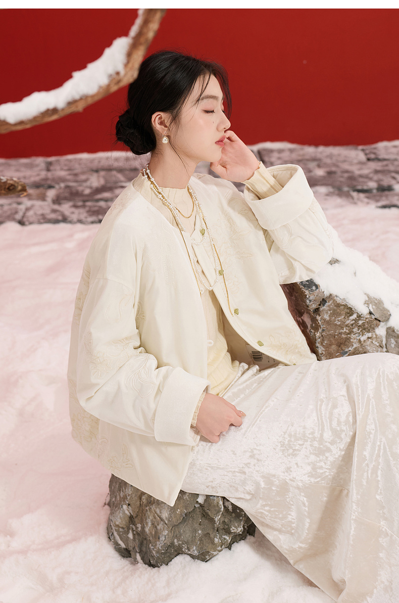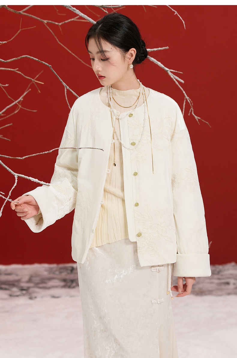 【社群秒杀】三彩【桂影浮光】2025冬季新款丝绒绣花羽绒服90白鸭绒保暖C