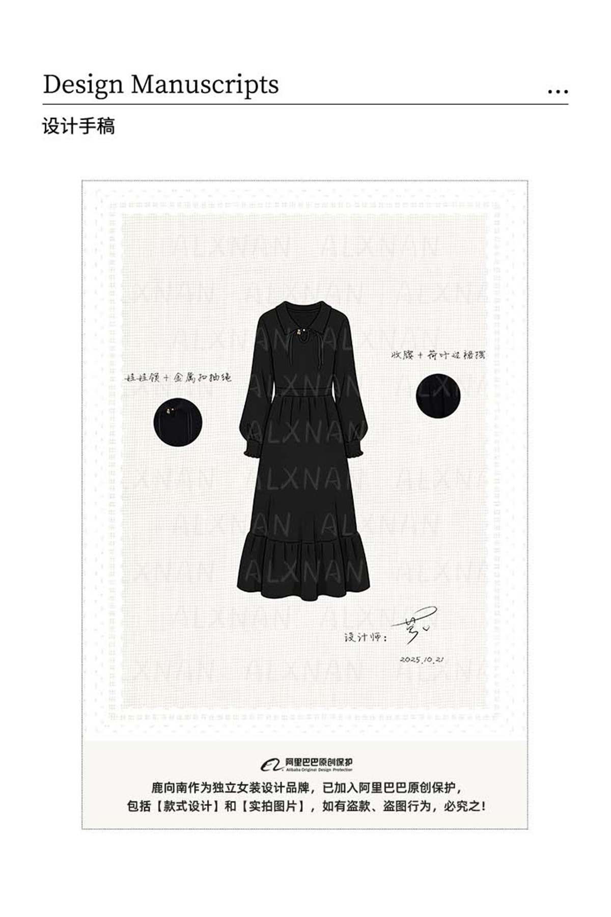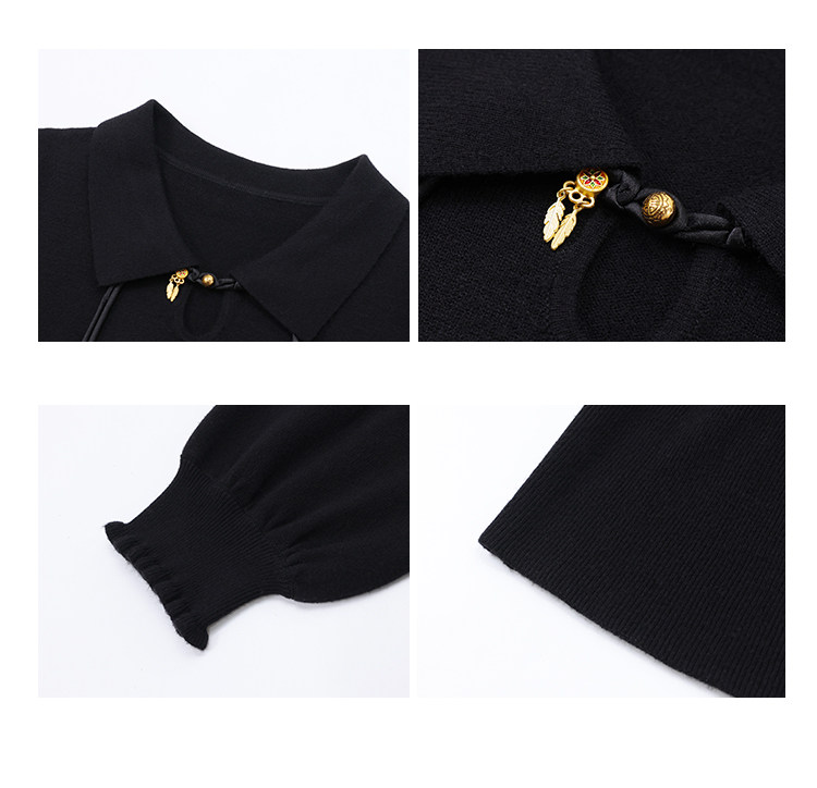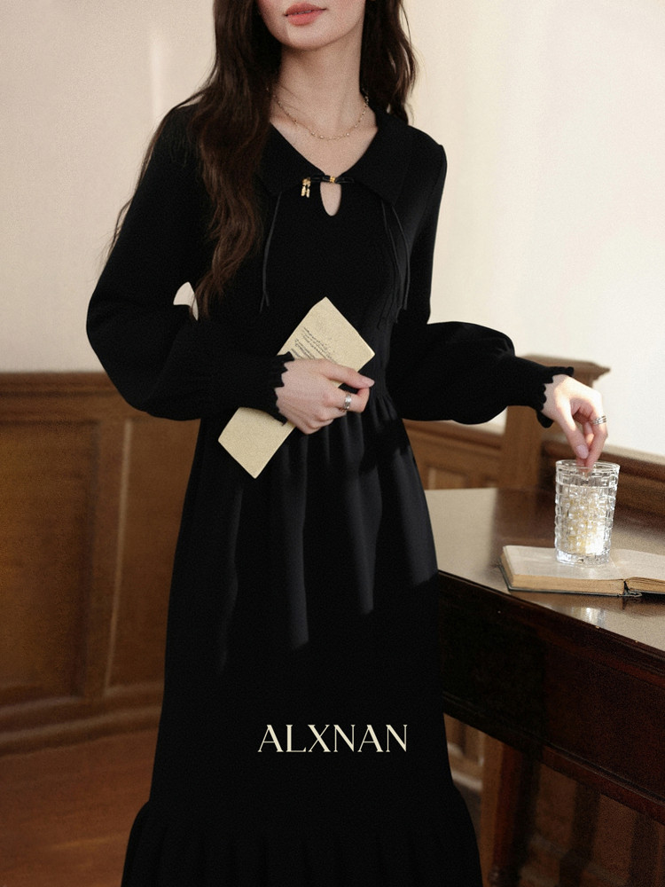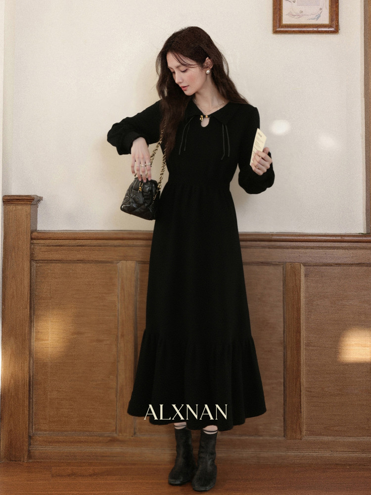 现货 鹿向南「缦缦未央」新中式改良国风连衣裙秋黑色针织长裙