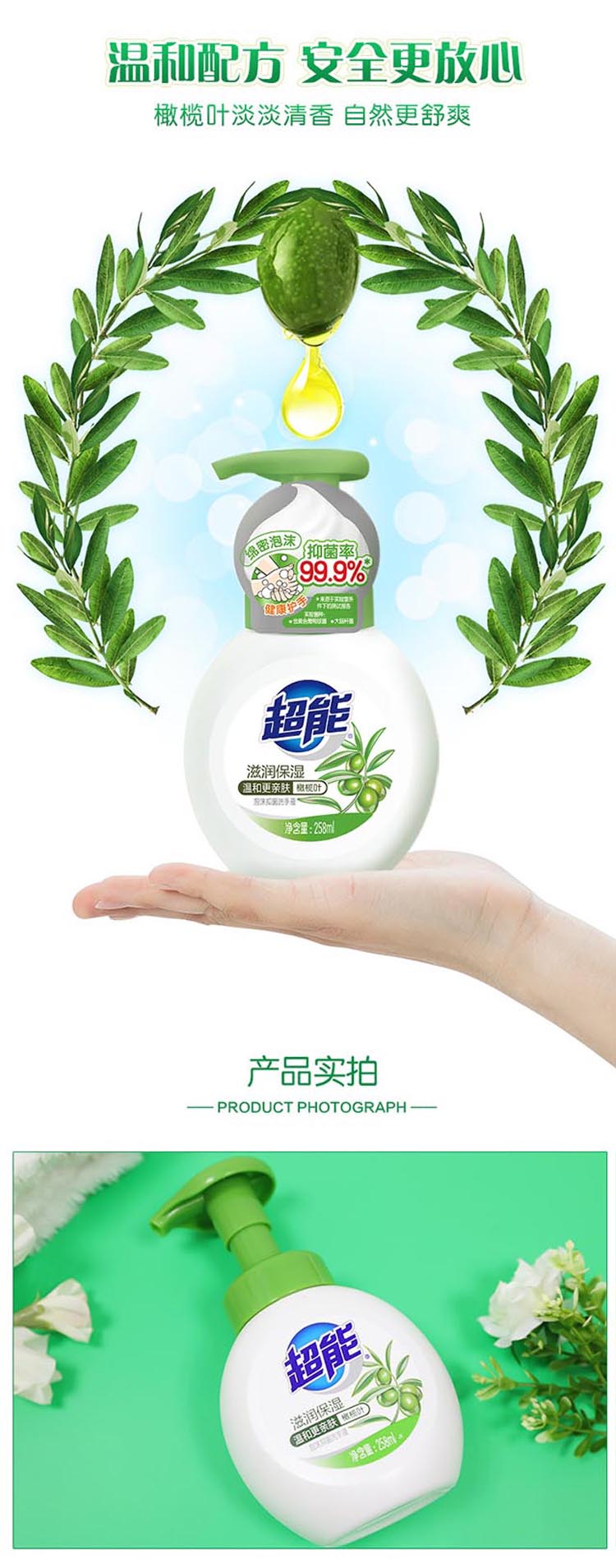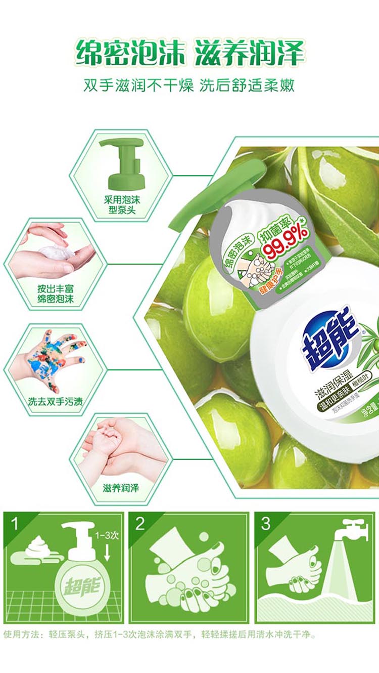 超能泡沫抑菌洗手液(滋润保湿)258ml*2瓶