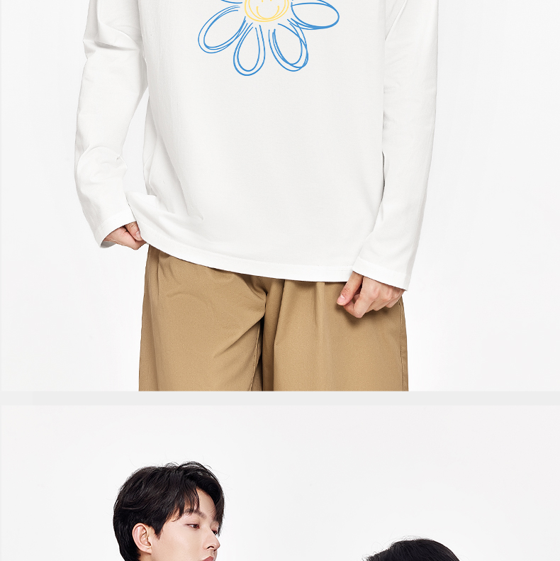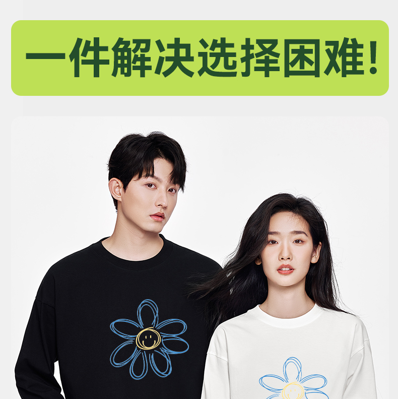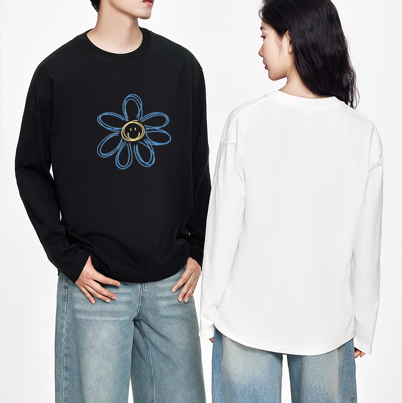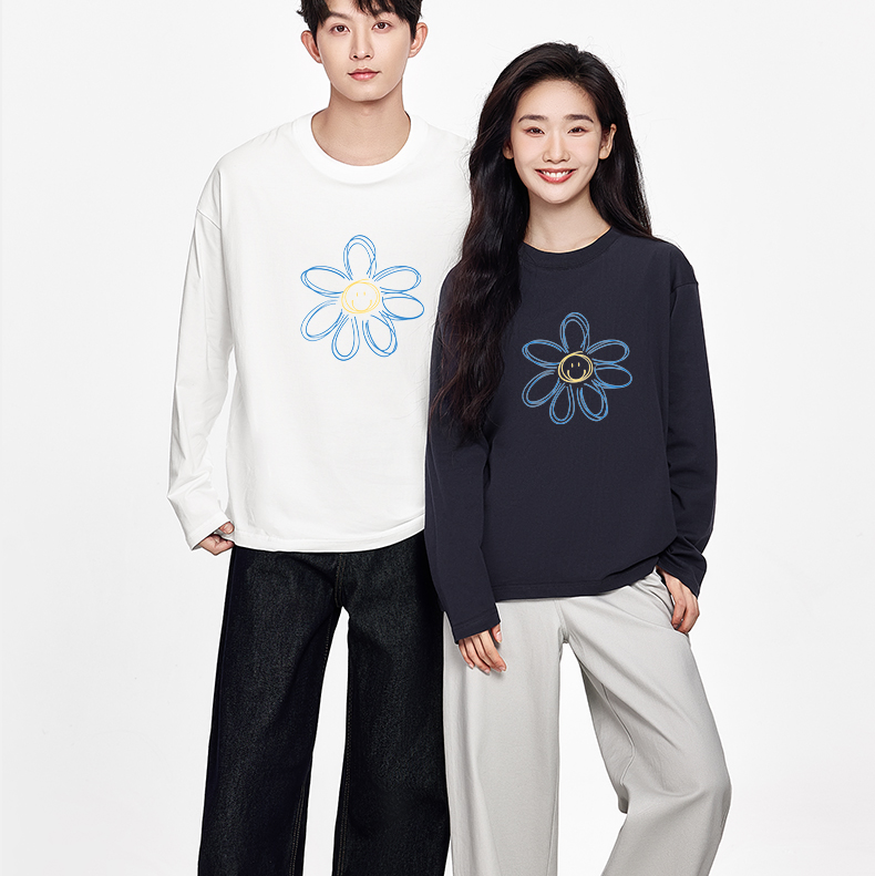 「棉的美学」230g重磅开心花瓣印花长袖T恤女打底衫宽松休闲上衣