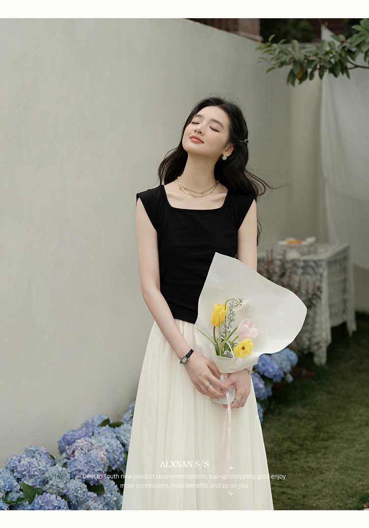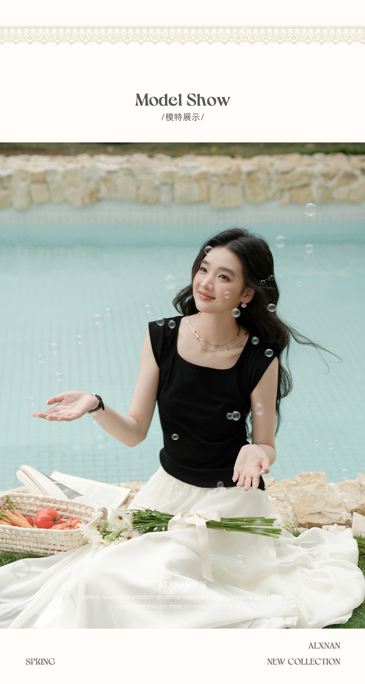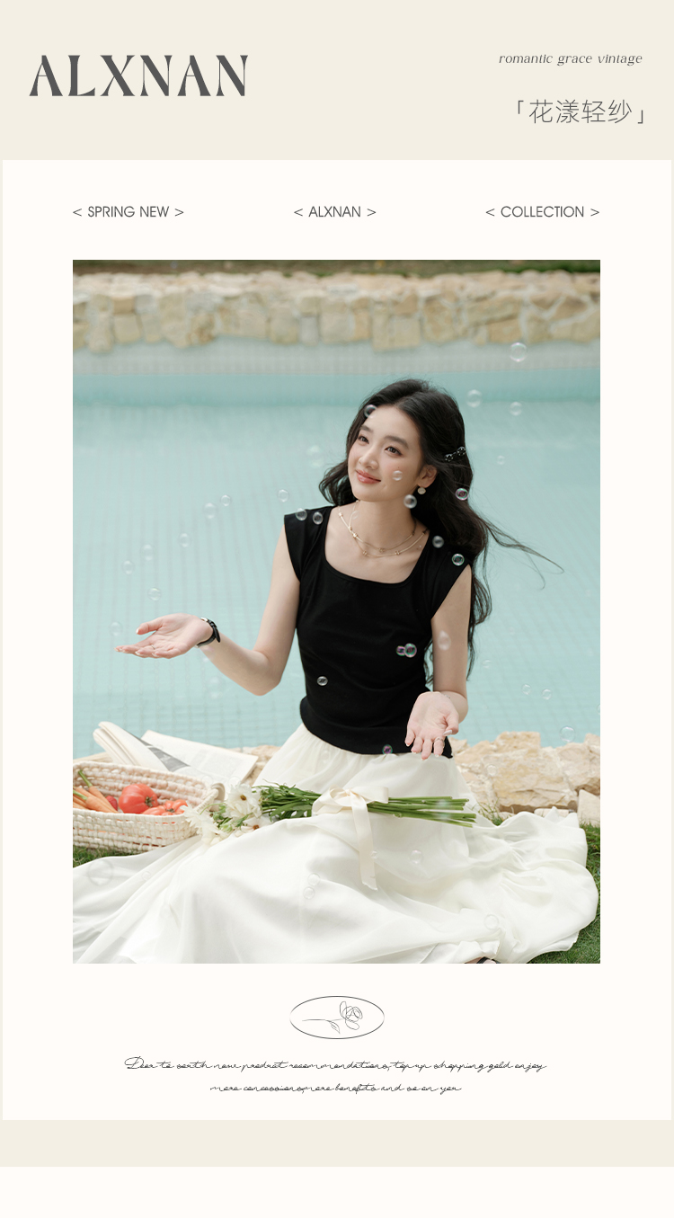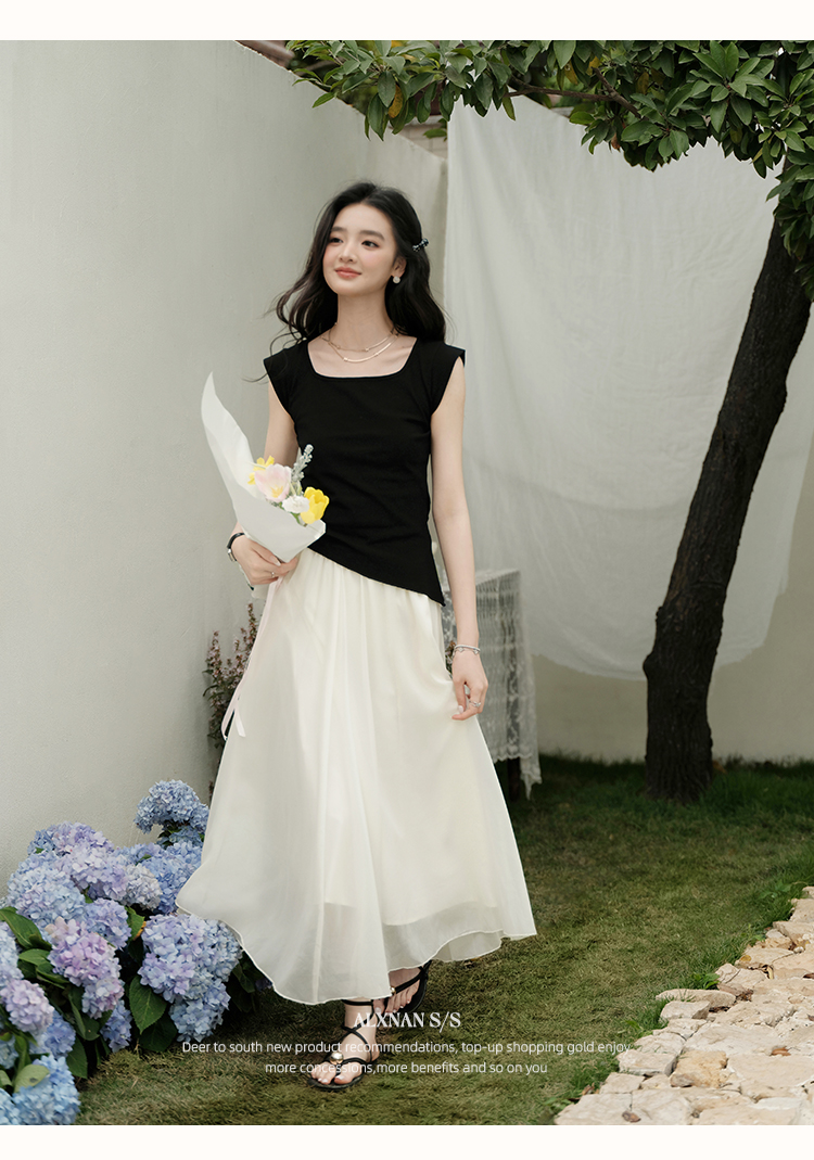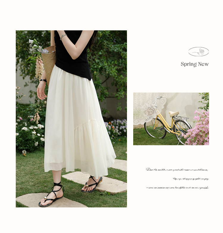 鹿向南「花漾轻纱」复古优雅白纱宽松半身裙女2025新款夏季A字裙