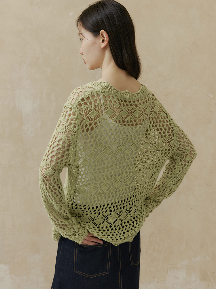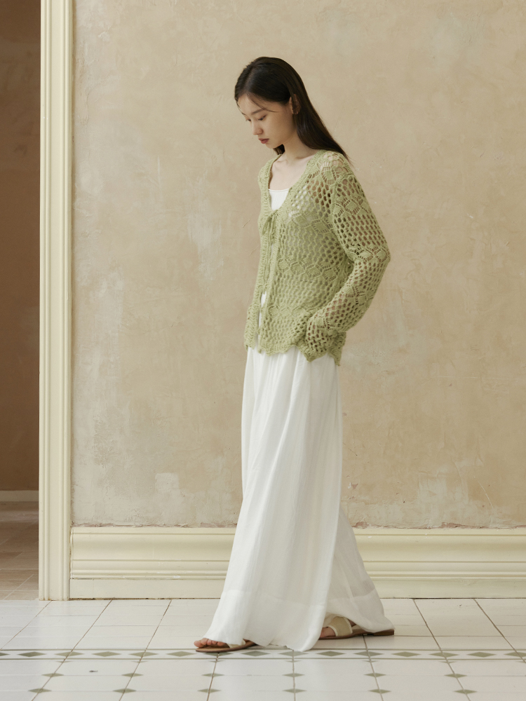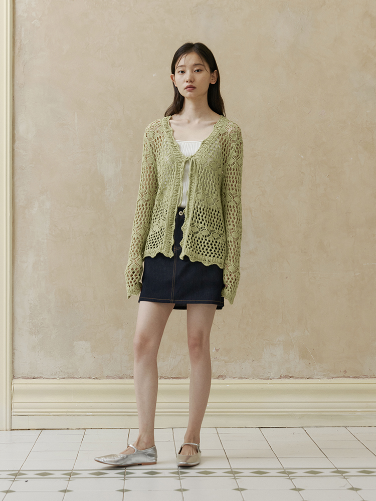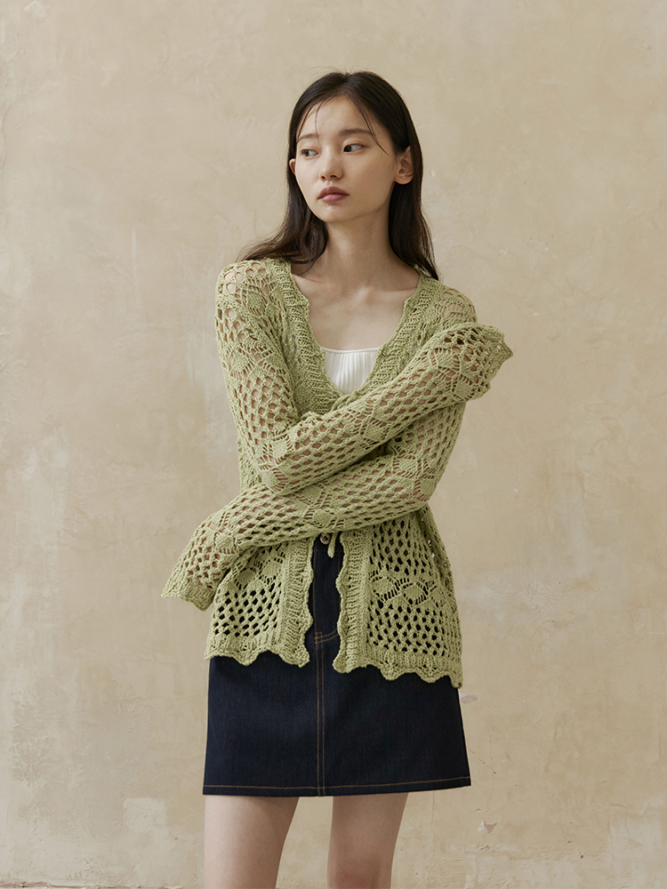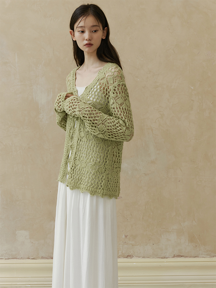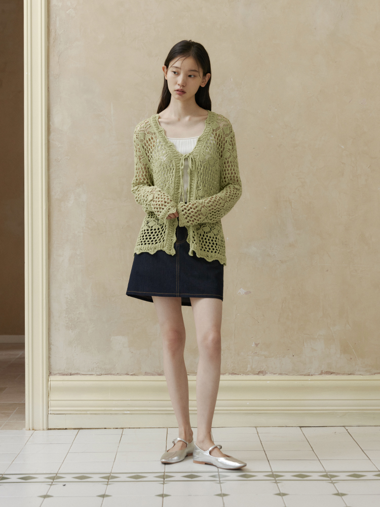 ForPoem 现货 24/SS原创设计亚麻编织镂空复古系带外搭针织罩衫上衣