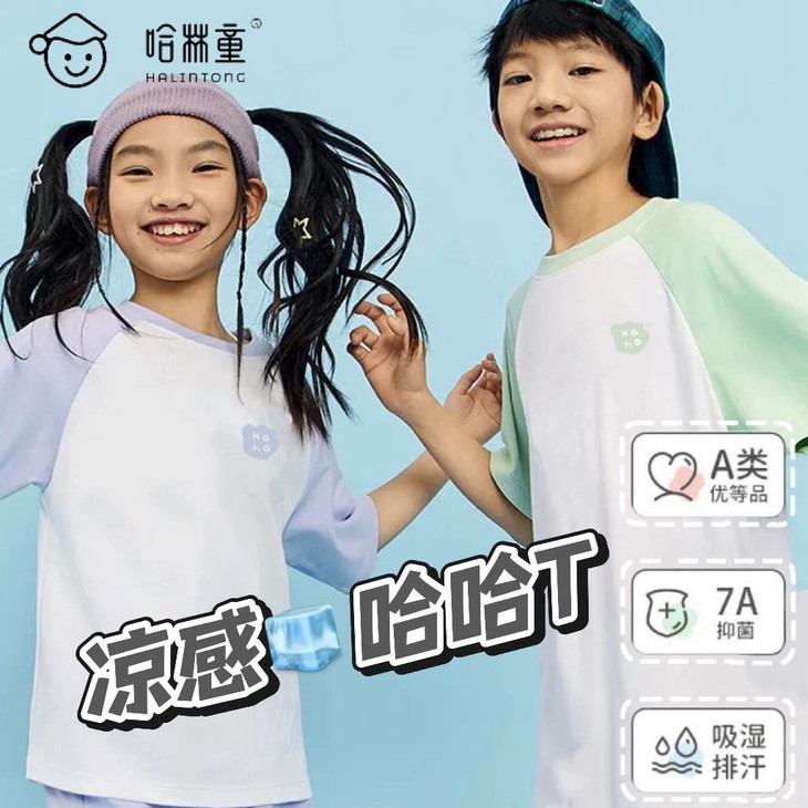 『P*MA童装同款高定凉感面料』【哈林童凉感🧊趣味哈哈T】 夏日王者T恤💰49.9买一送一,闭眼冲! ✔️A类婴幼儿标准➕7A抗菌,大大的安心 ✔️50s紧赛纺凉感纤维,源自纯木源,贴身即凉