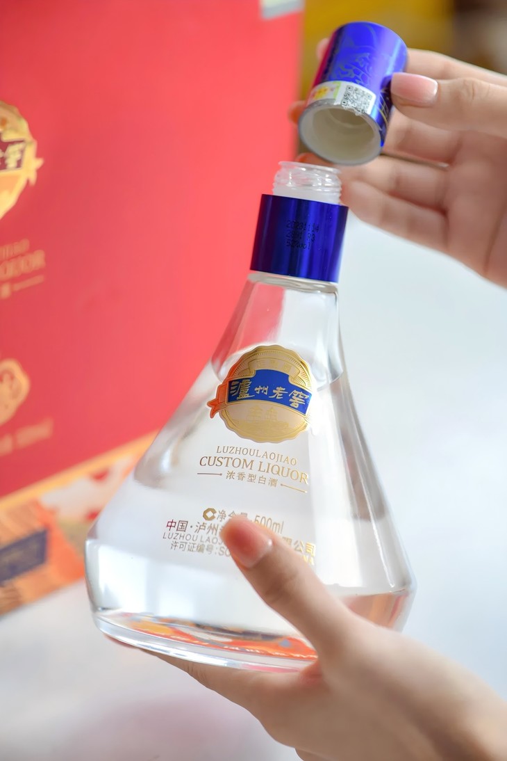 瓶身上还印有醒目的“泸州老窖”品牌logo,更添了几分贵重,不管是送礼还是自饮都不失牌面。