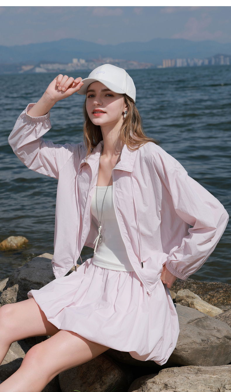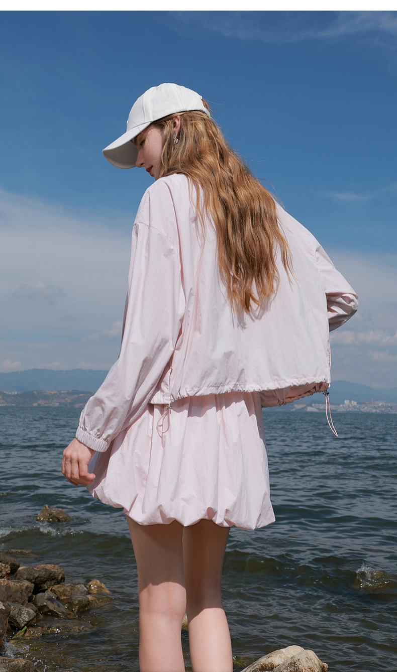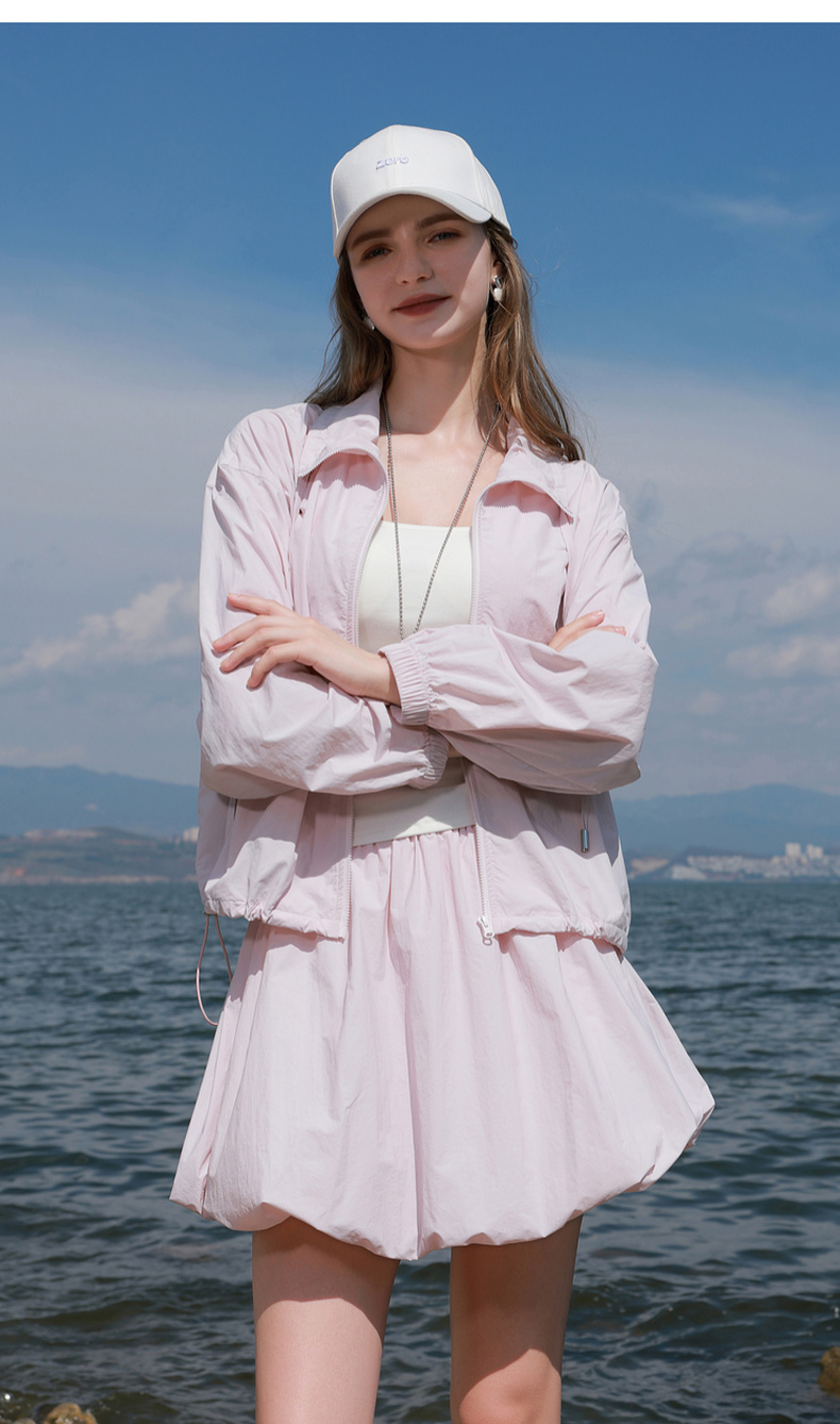 三彩2025秋季新款休闲防晒套装立领开衫外套半身裙花苞短裙M