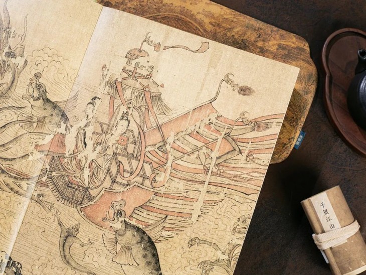 (书中的复刻品,是以辽宁省博物馆镇馆之宝《洛神赋图》为底本,制作过程中特意保留了原画的残缺部分,并非咱们的工艺问题噢~)
