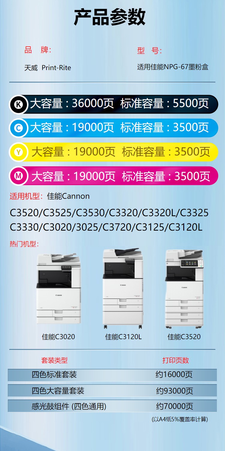 天威 适用佳能NPG-67粉盒 3120L墨盒 c3020墨粉 c3125 NPG67 C3520硒鼓 C3320L C3525 C3325
