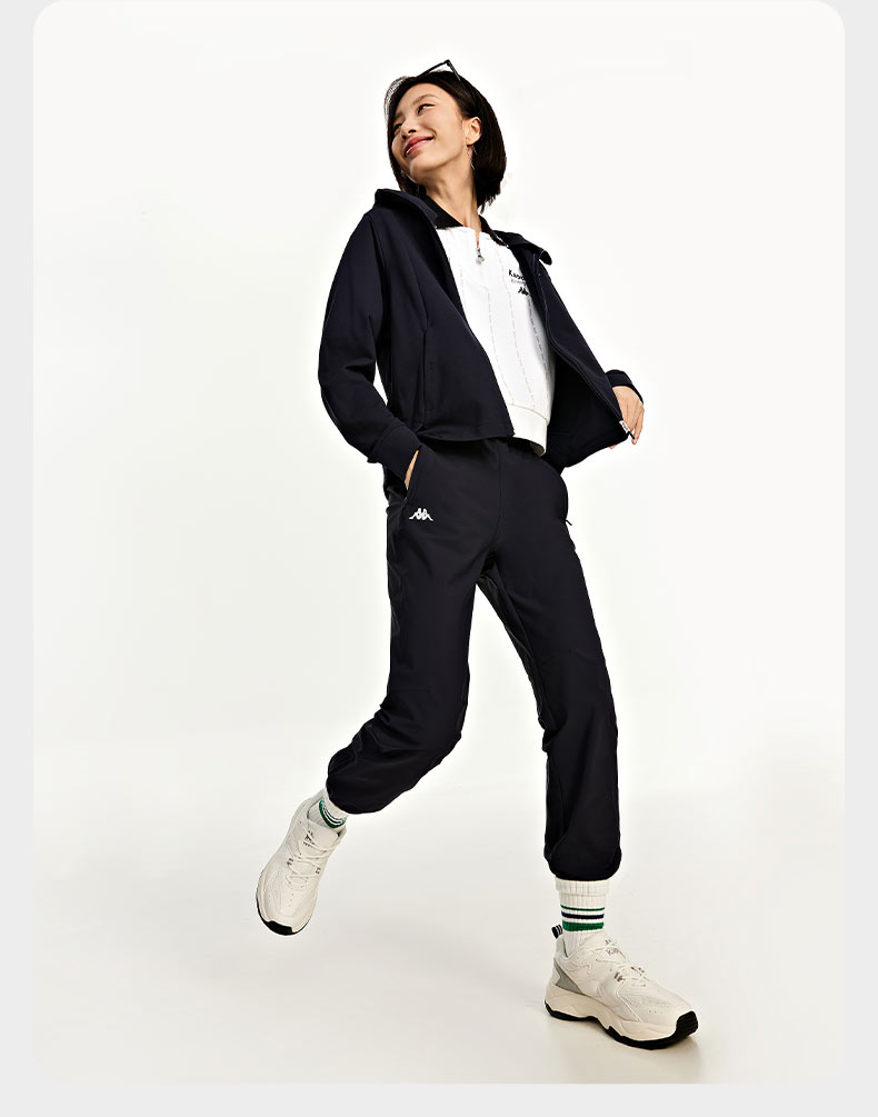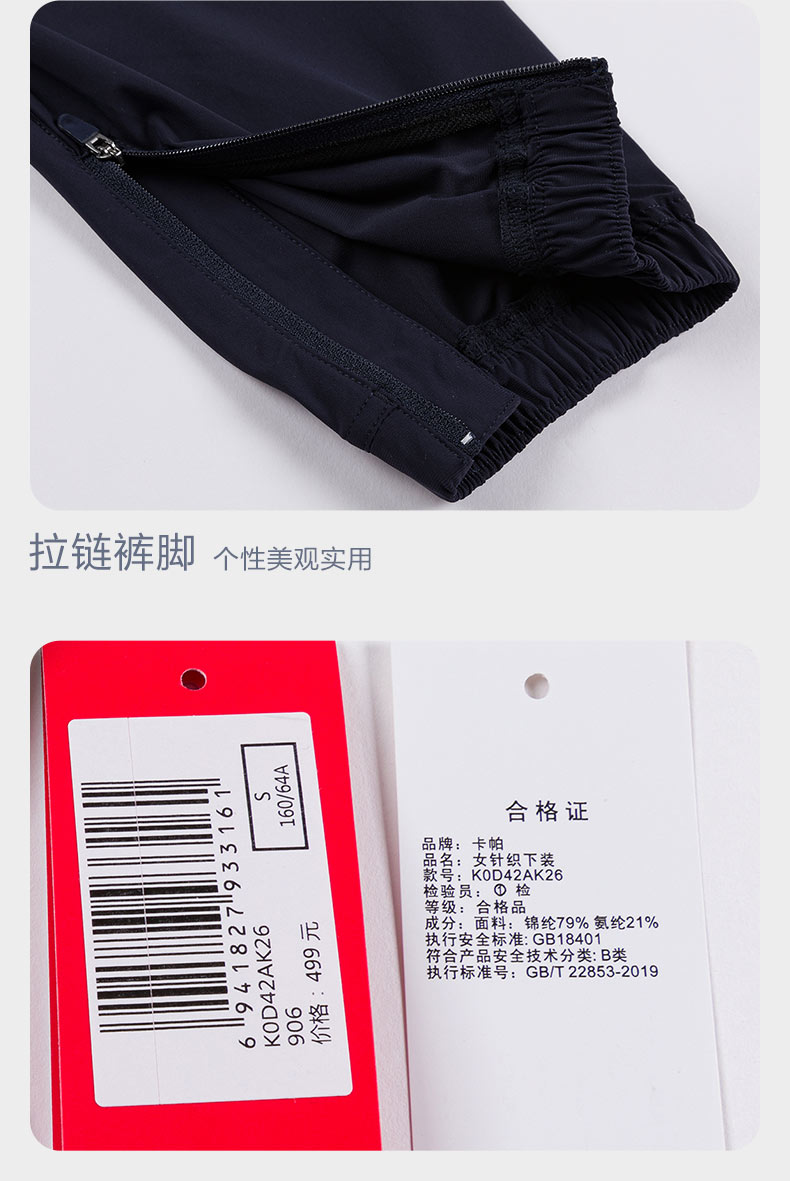 Kappa卡帕运动裤新款女黑色休闲裤长裤拉链收口小脚卫裤K0D42AK26