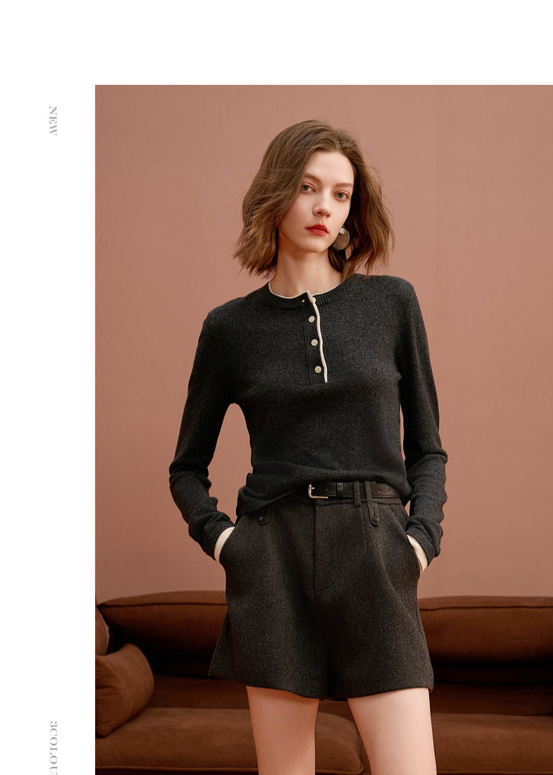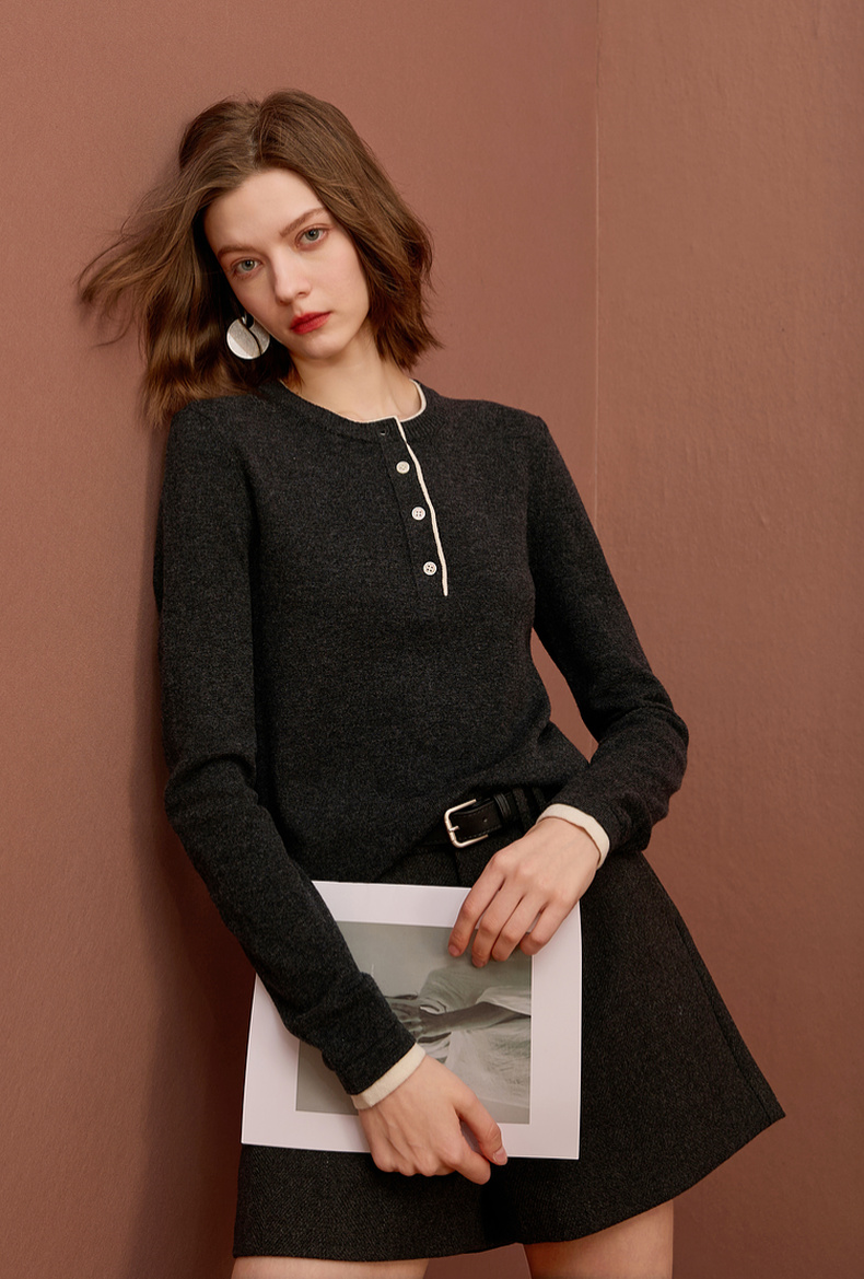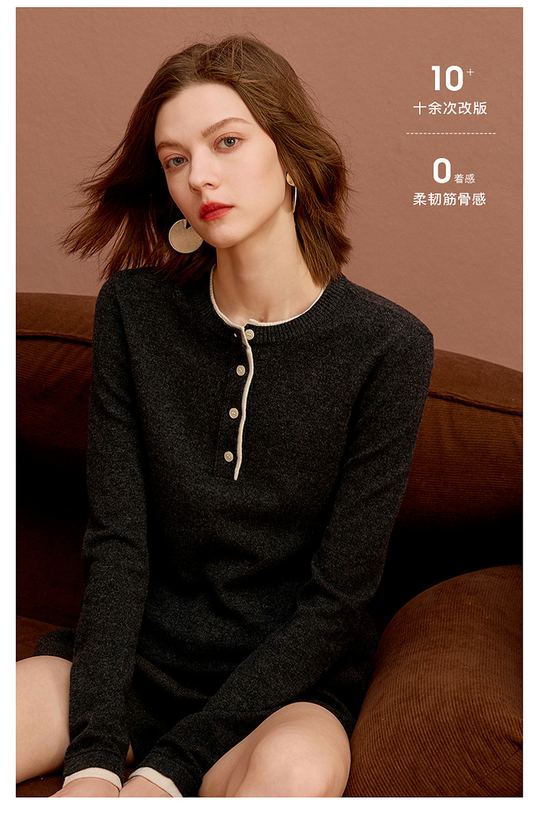 【绵羊毛】三彩2025冬季新款圆领针织衫长袖套头打底衫保暖S