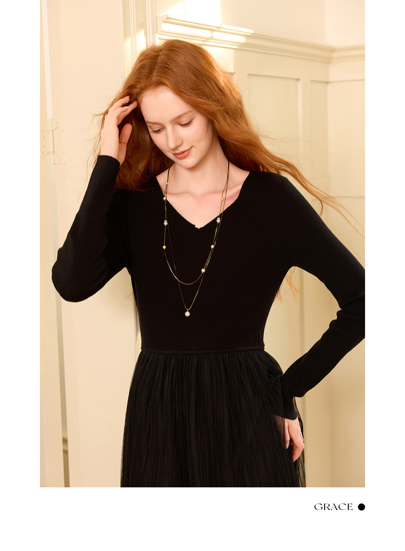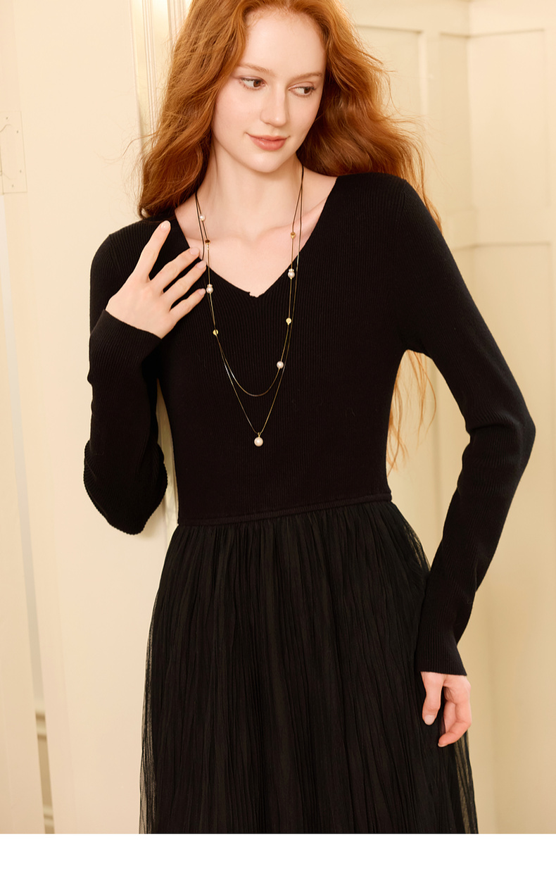 三彩2025新款轻奢合成珍珠项链双层叠戴优雅复古毛衣链约会小众