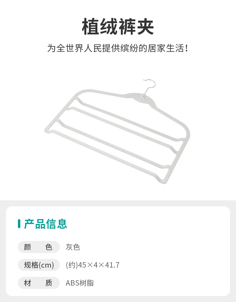 家用多功能衣撑服装店裤架子衣柜收纳夹植绒裤夹 灰色