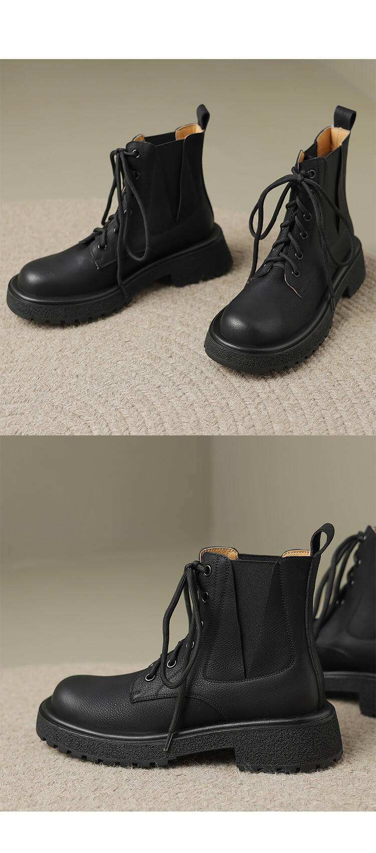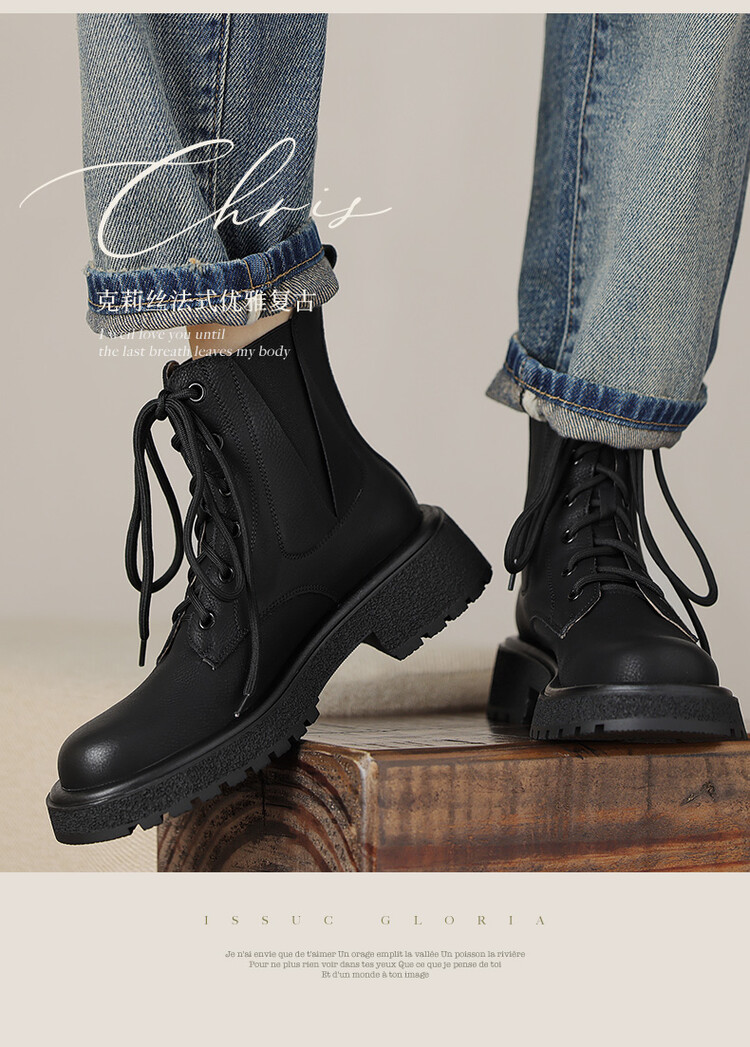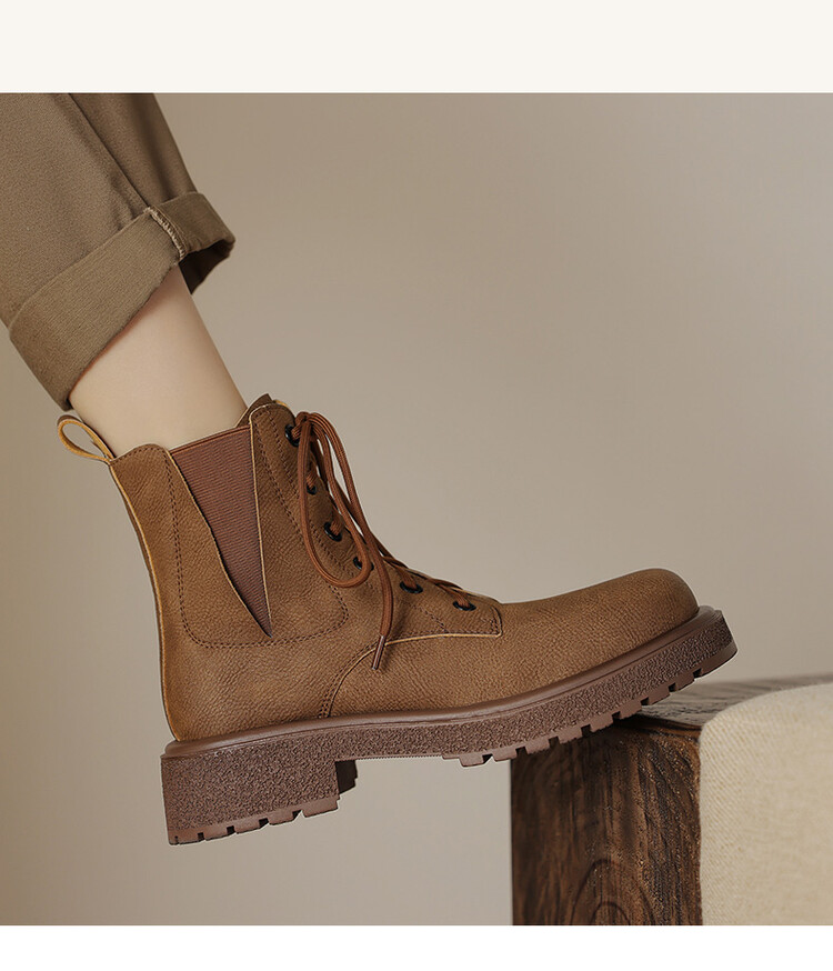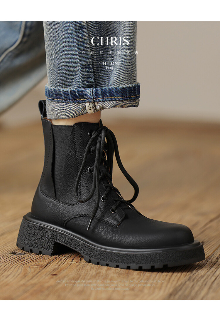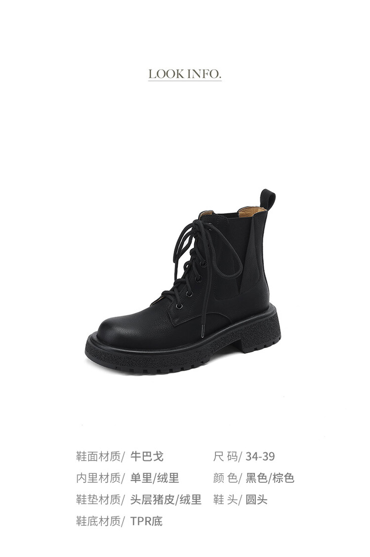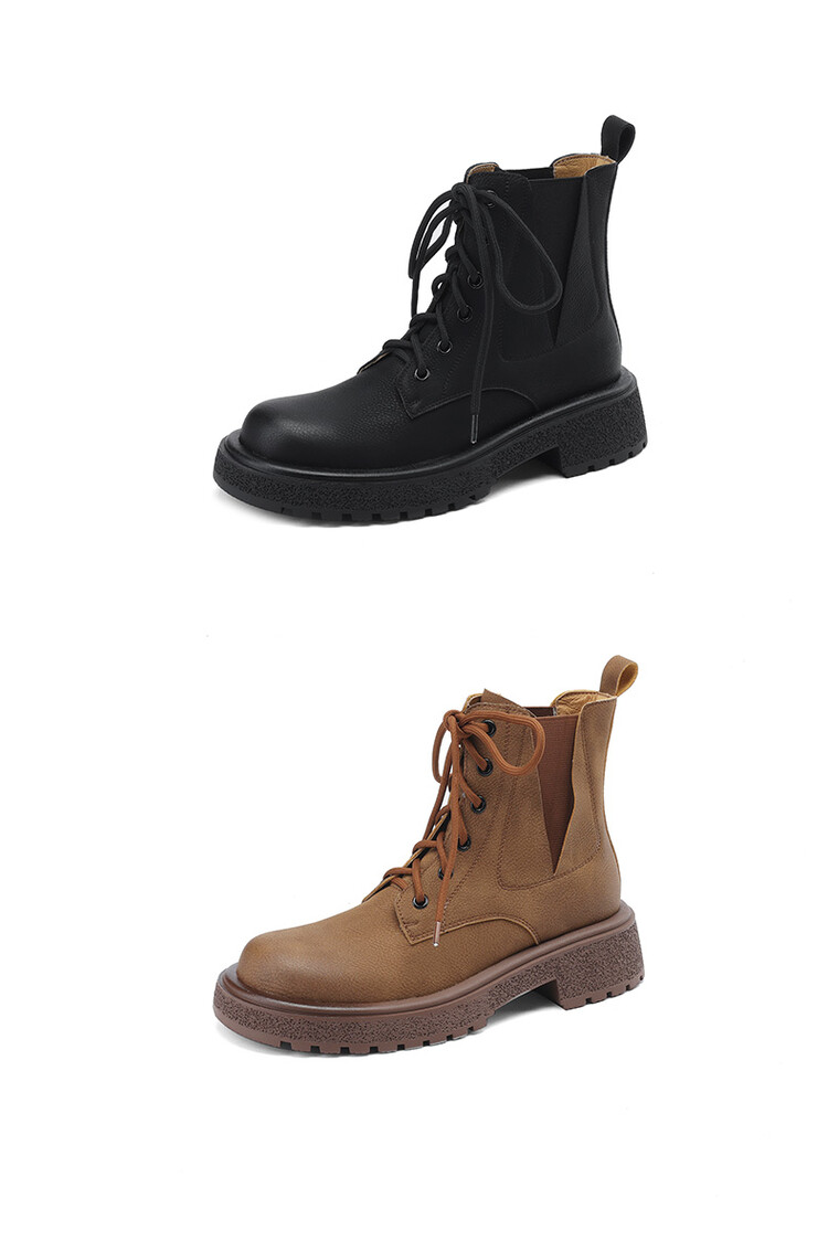 Ech&yolo系带经典款圆头牛皮拼接马丁靴HBP-3827