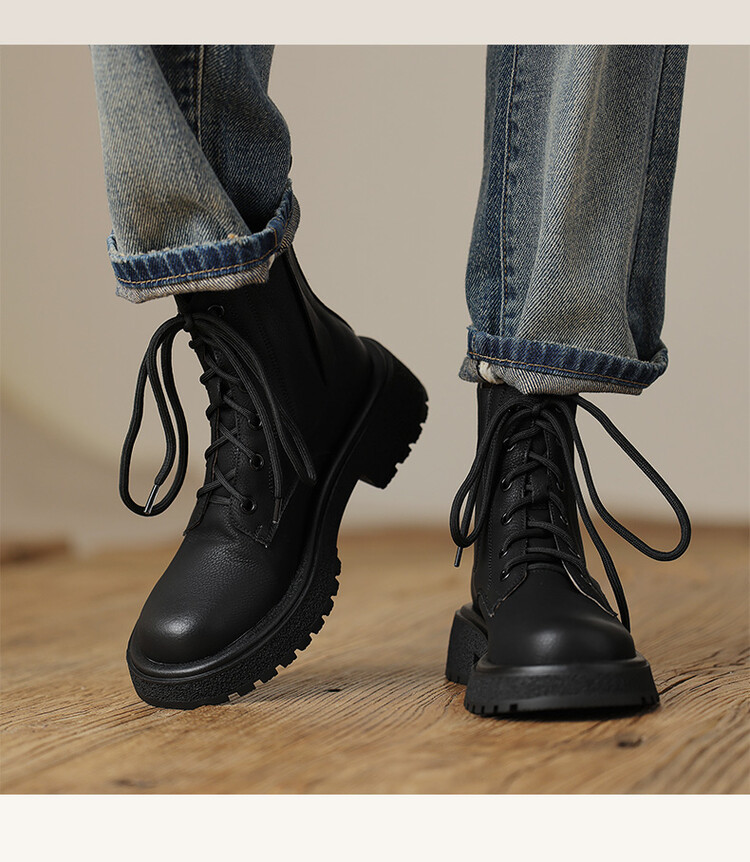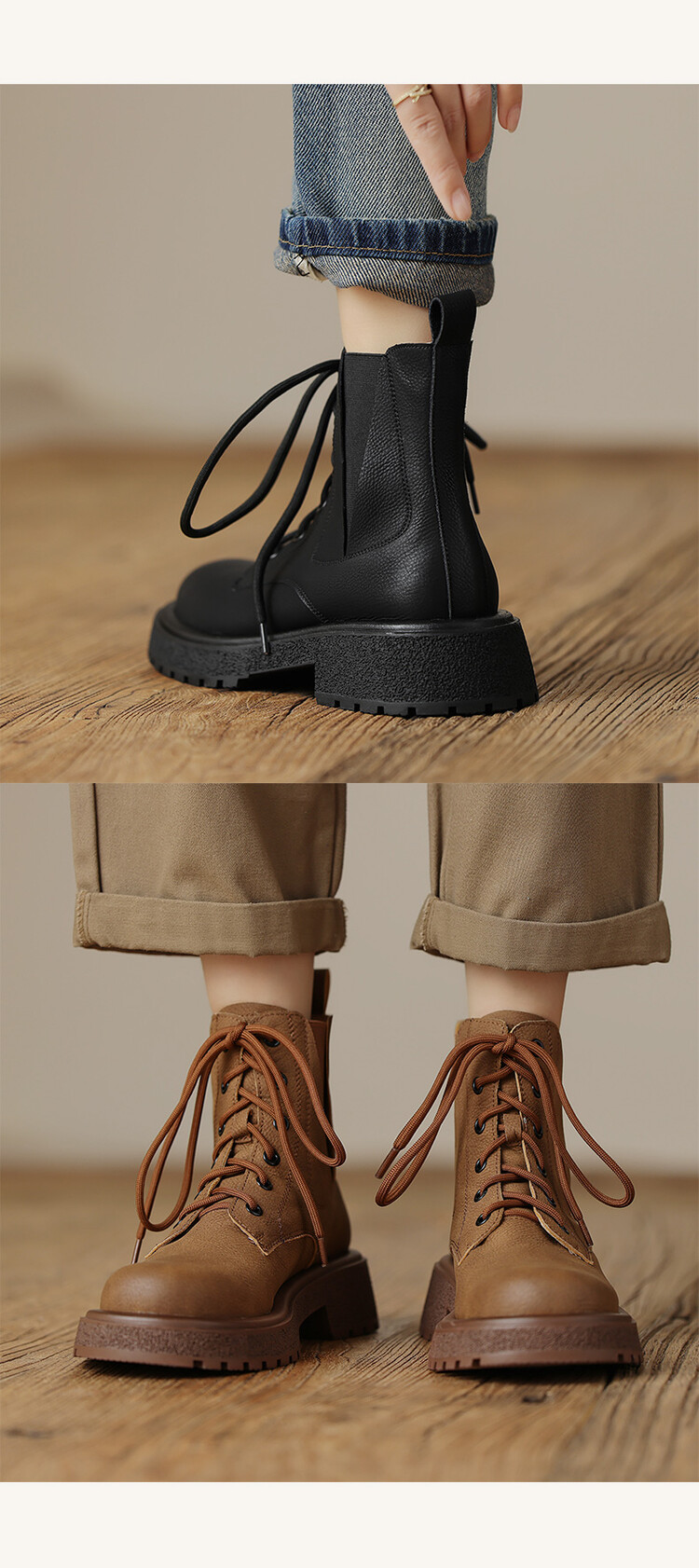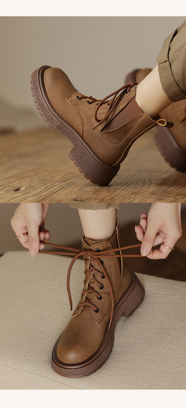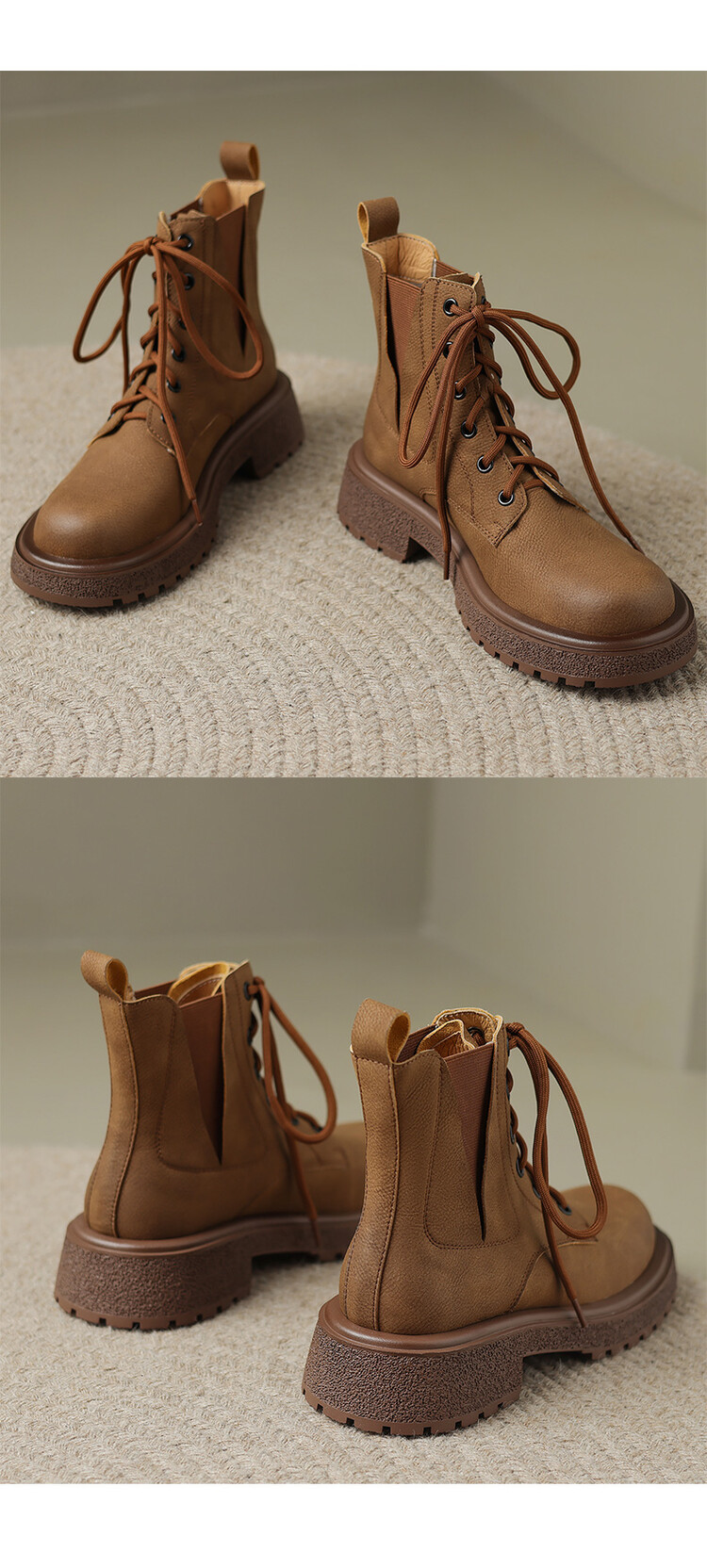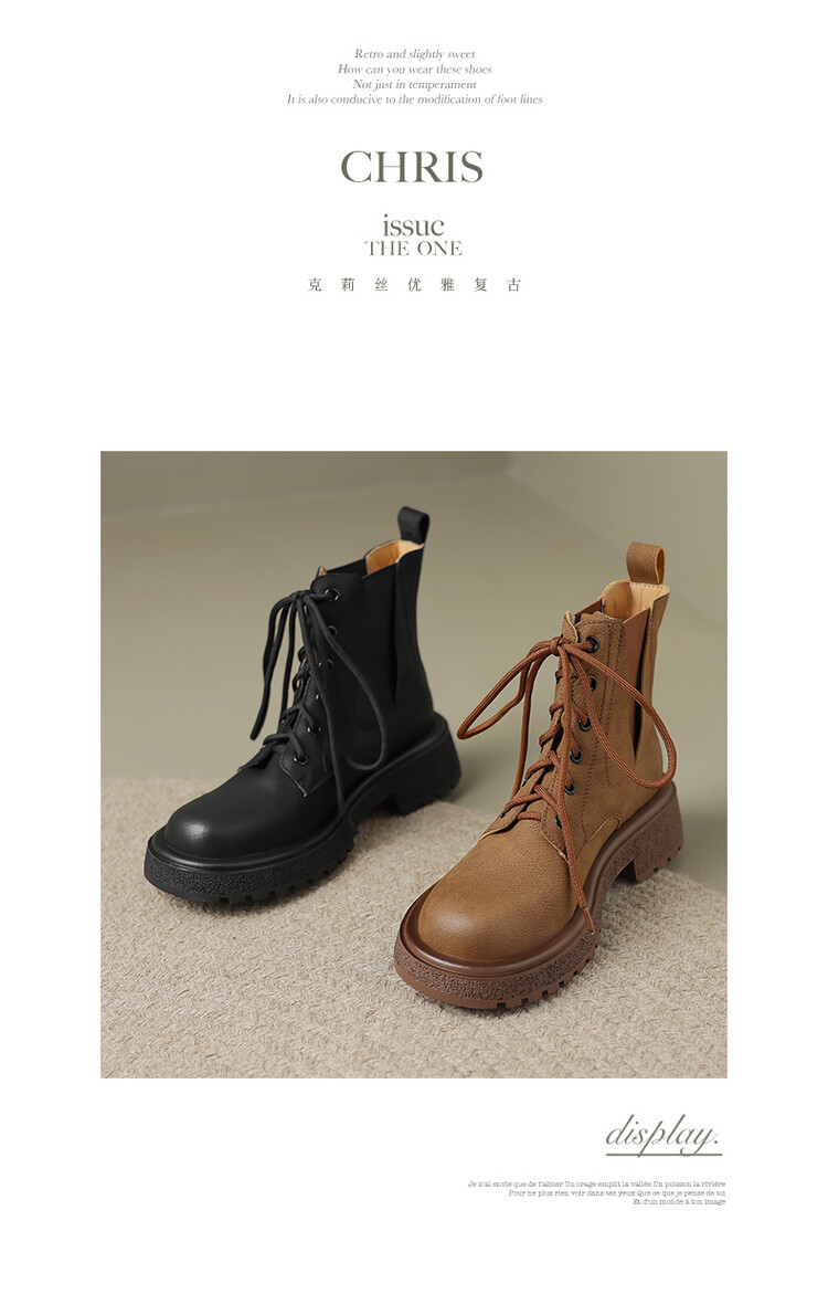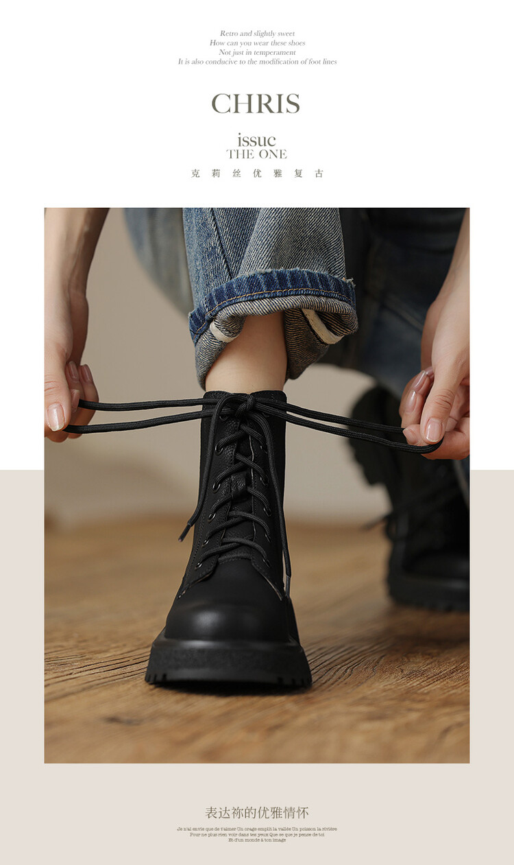 Ech&yolo系带经典款圆头牛皮拼接马丁靴HBP-3827