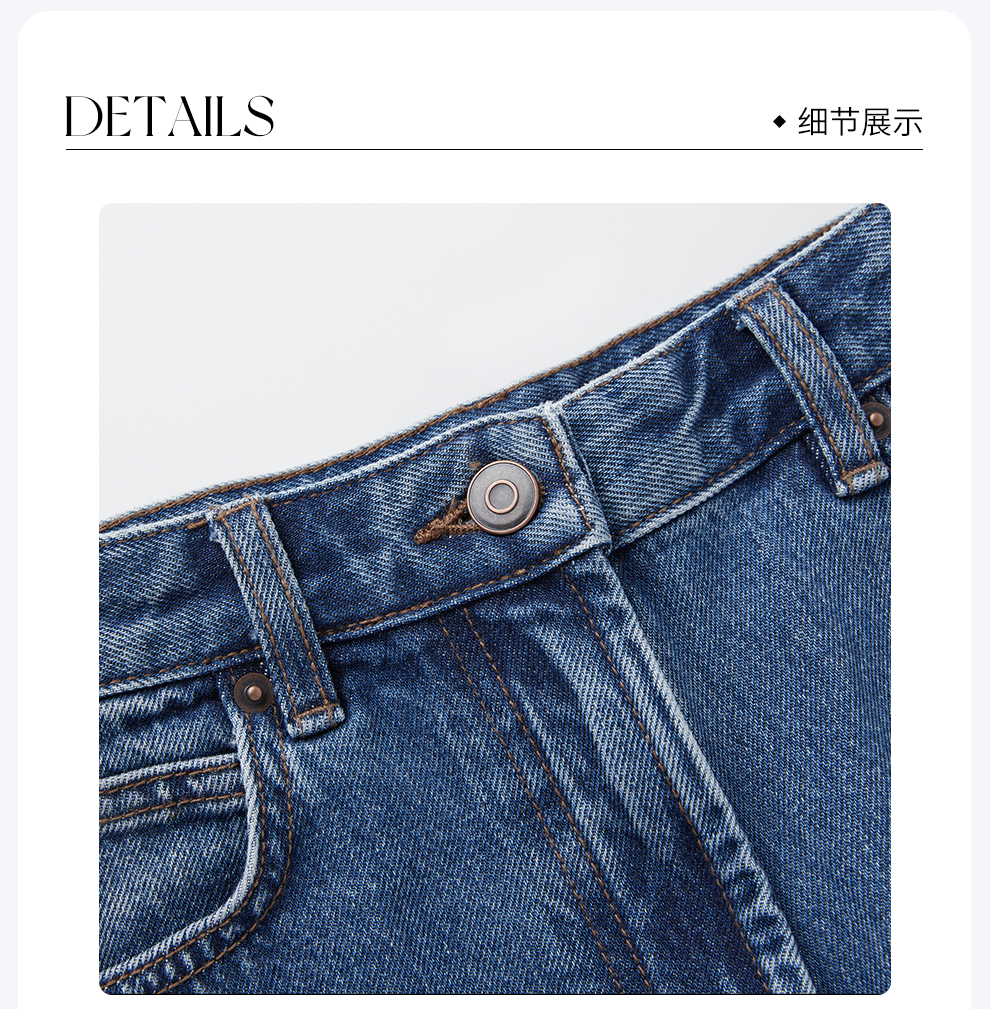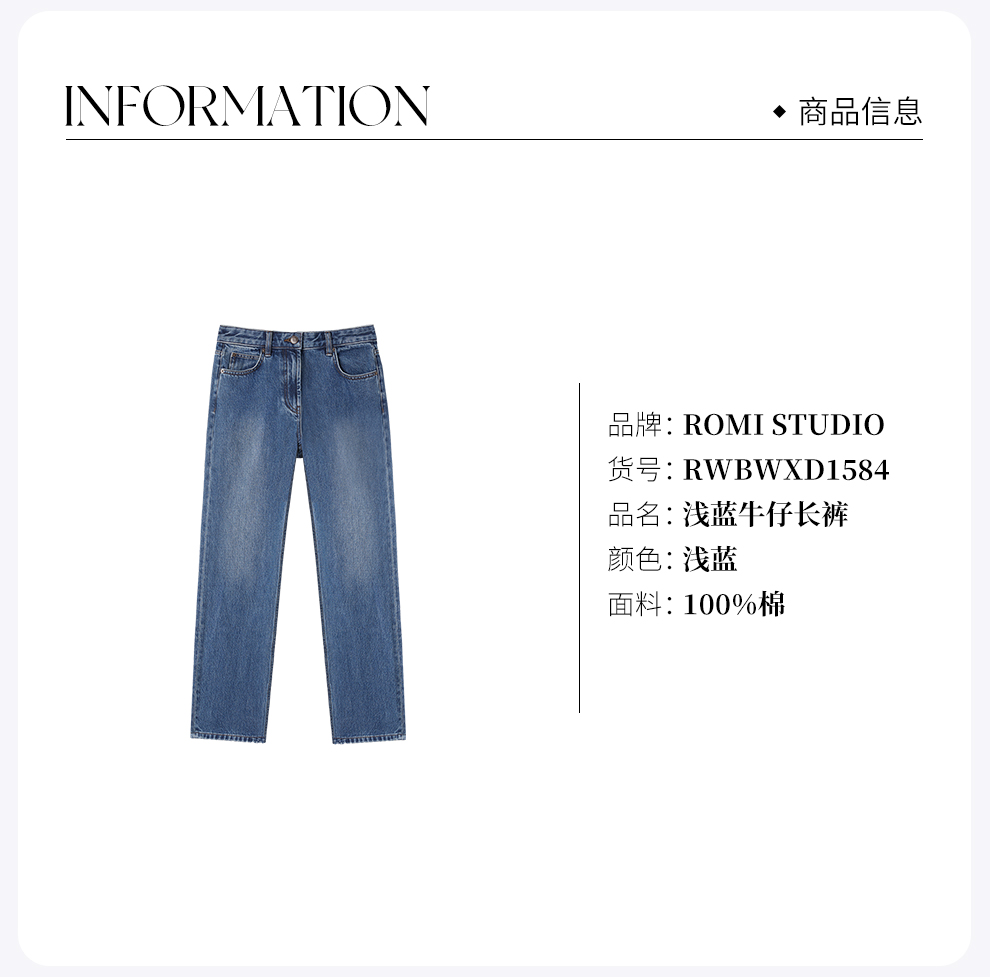 ROMI STUDIO“复古丹宁”环保洗水纯棉中低腰直筒牛仔裤 RWBWXD1584