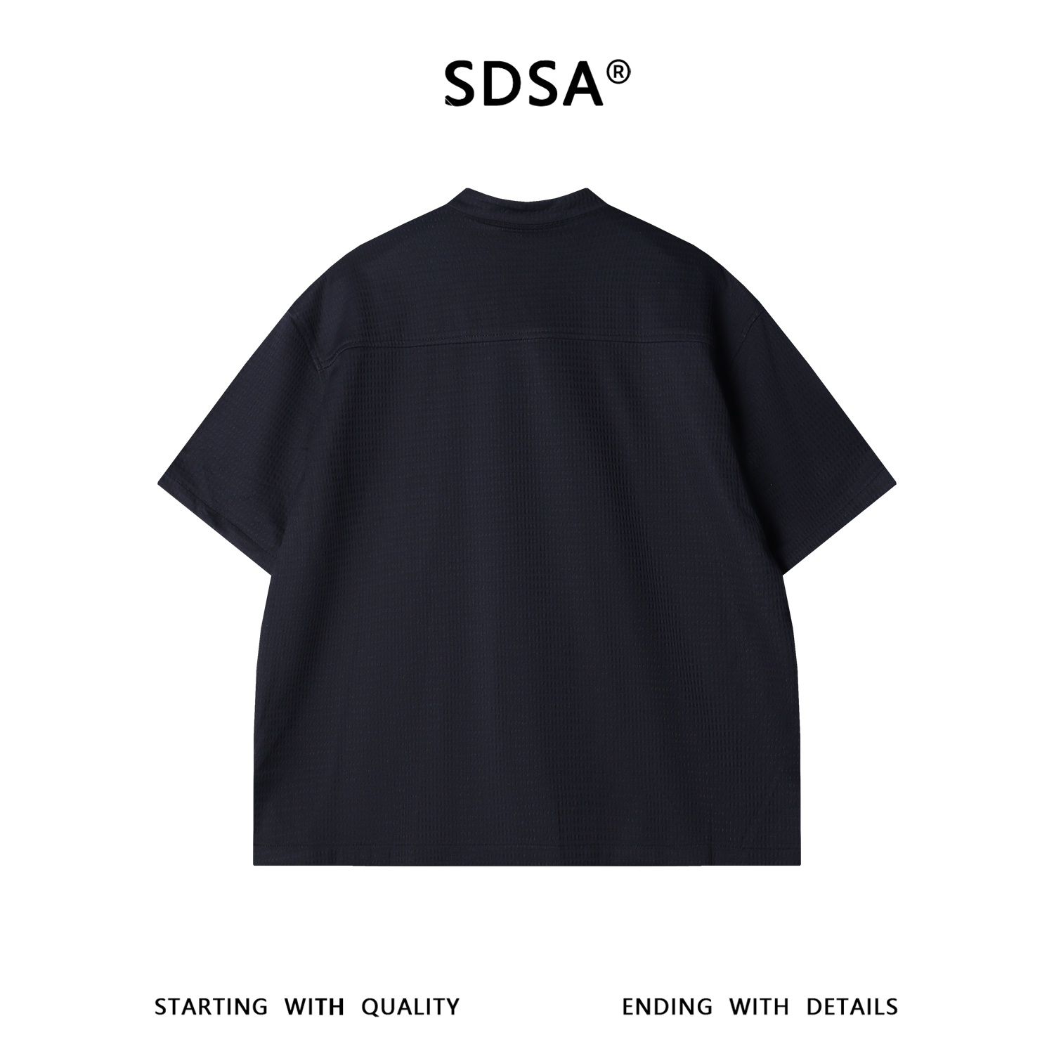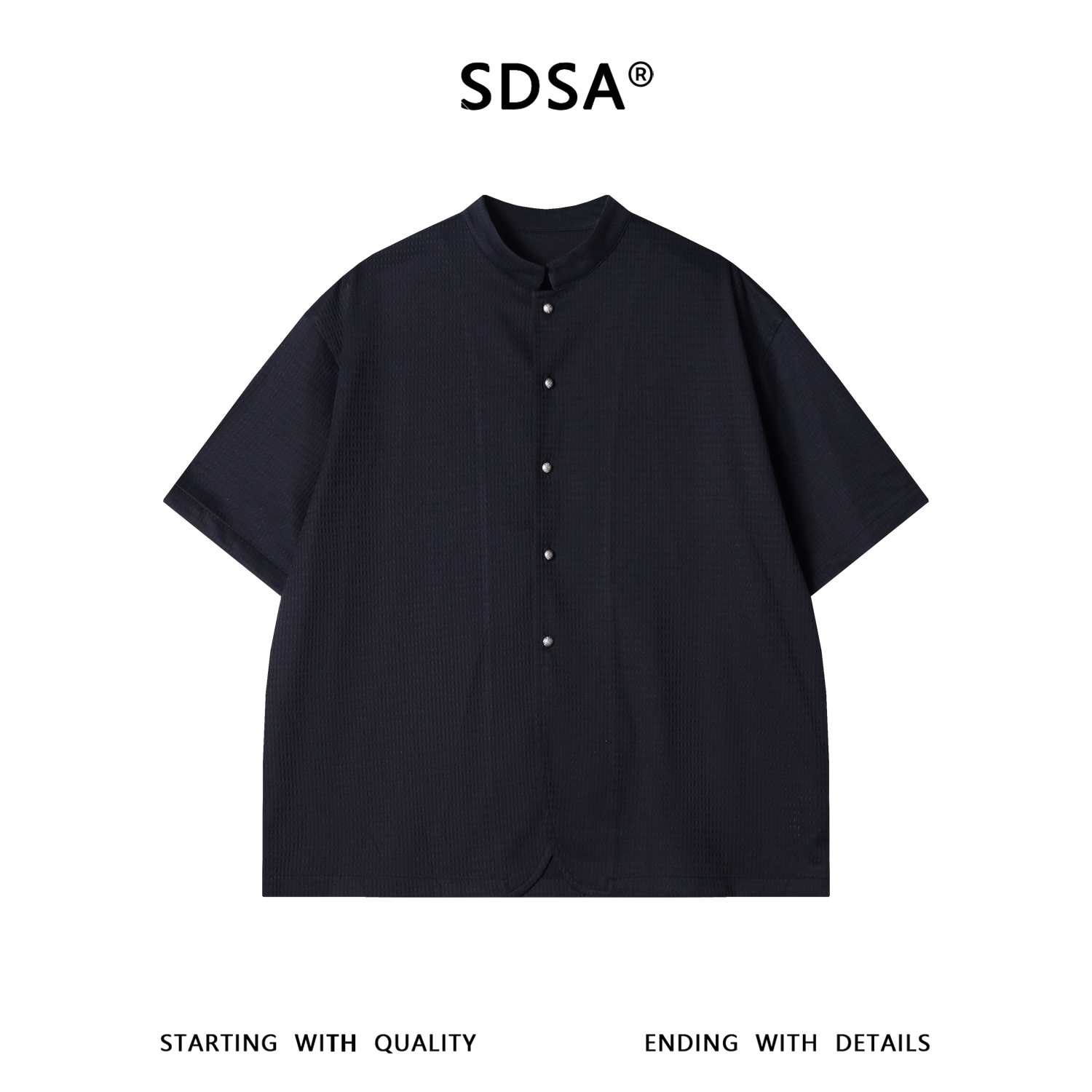 SDSA男装2026新款高贵轻奢极简风华夫格肌理立领短袖衬衫百搭休闲