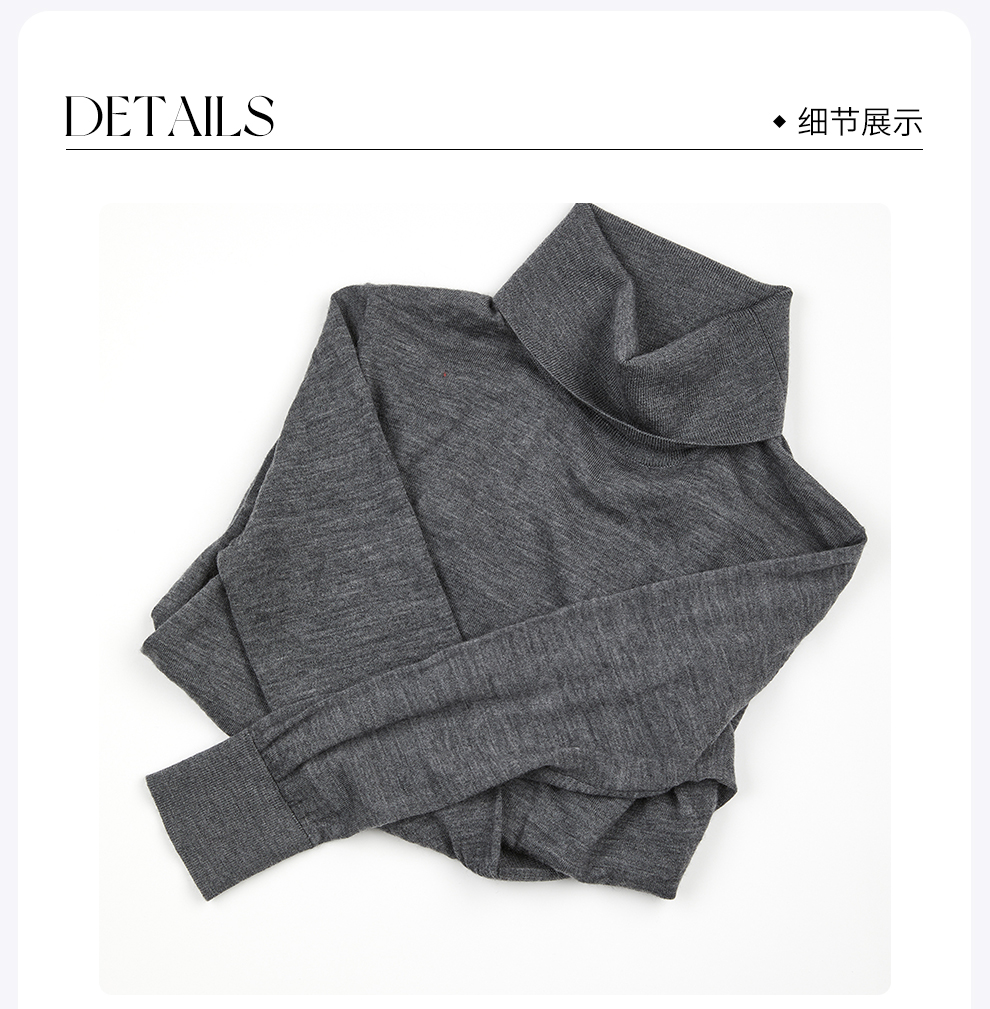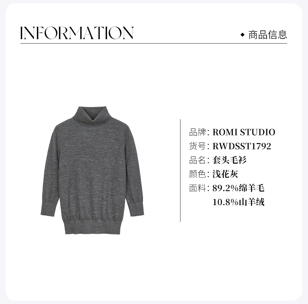 ROMI STUDIOMORO山羊绒绵羊毛半袖高领灰色针织套头衫 RWDSST1792