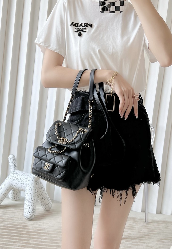 香奶奶 𝟮𝟯𝗖新款𝐃𝐮𝐦𝐚双肩包黑色大号