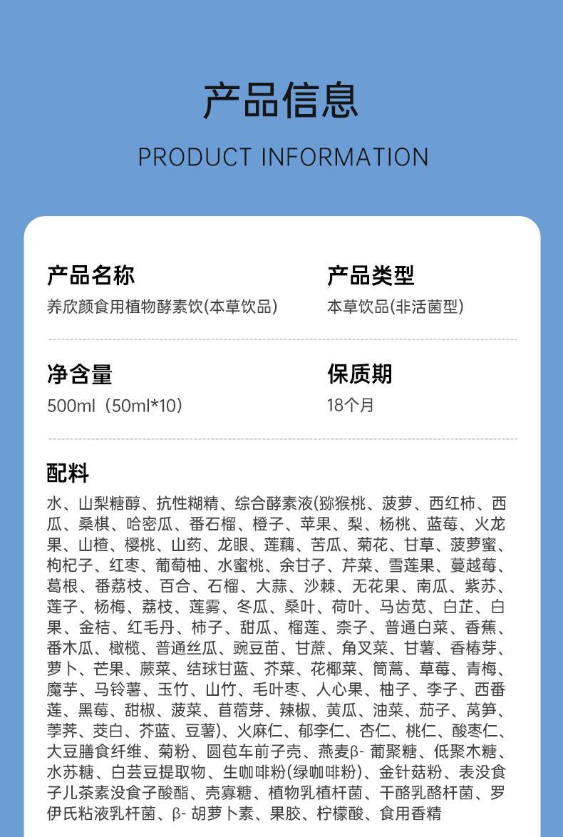 养欣颜素 养欣颜食用植物酵 素饮本草饮品 YO小瓶 YXY小绿瓶