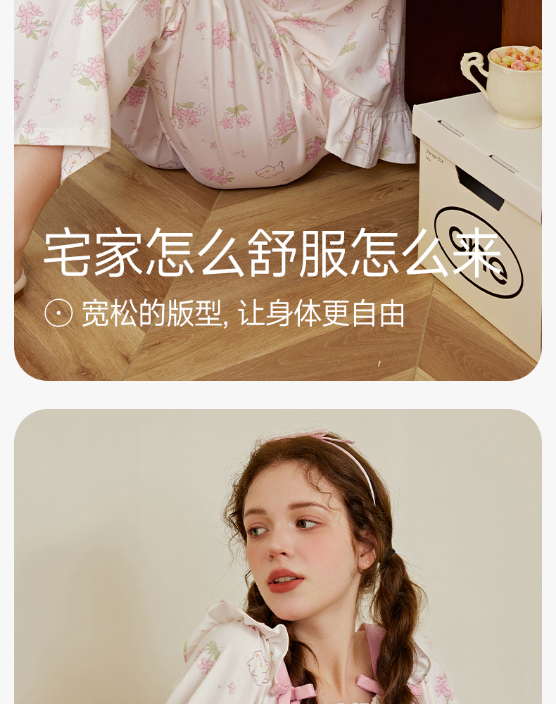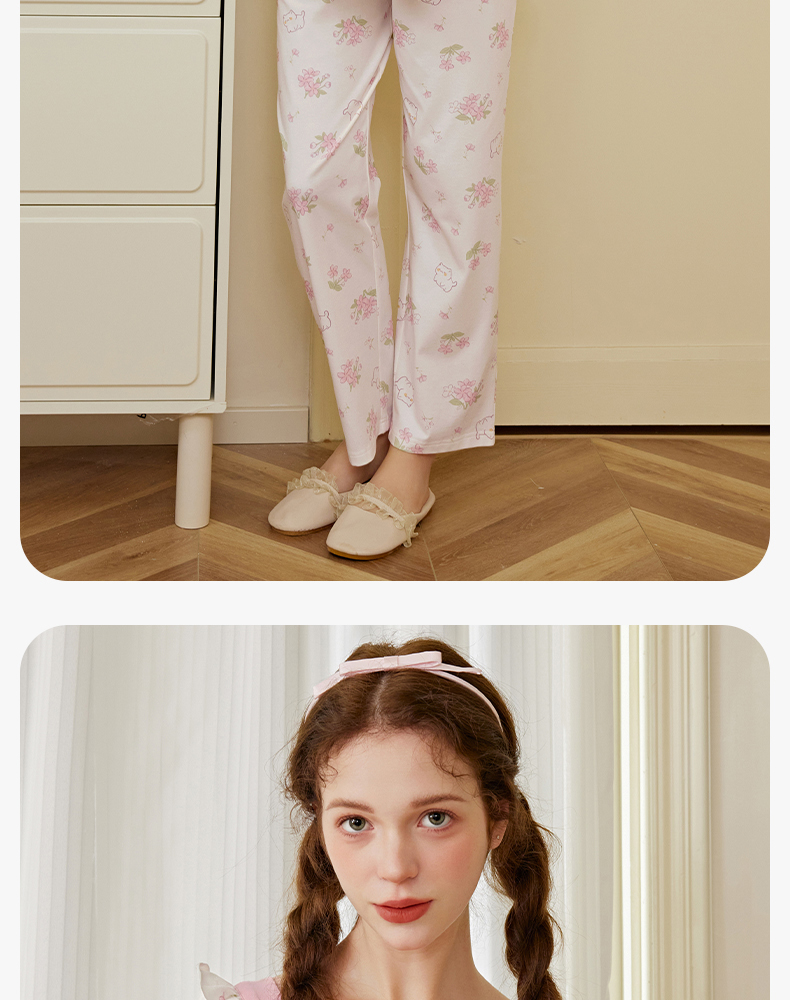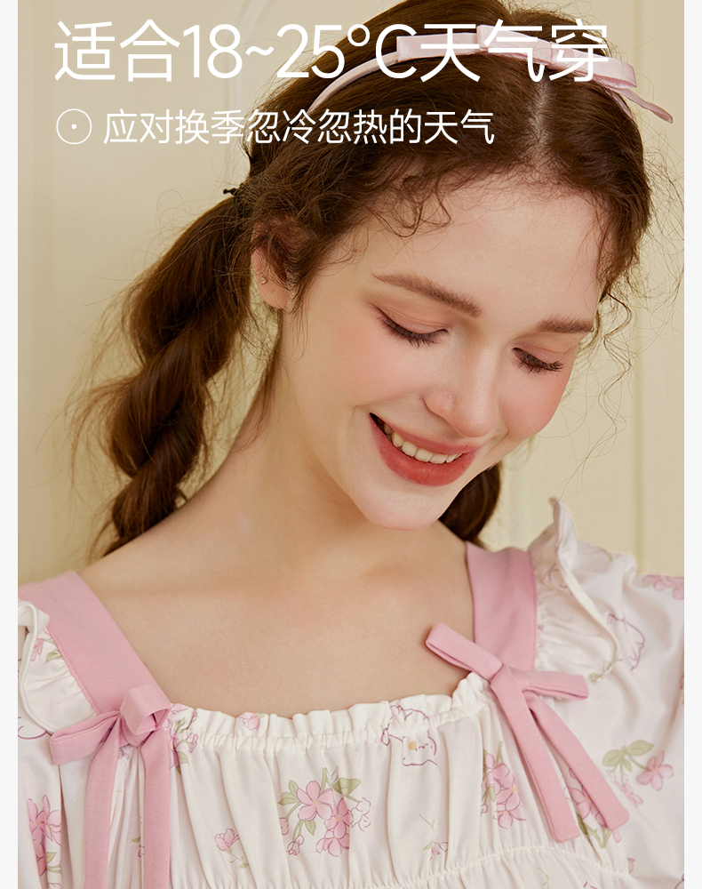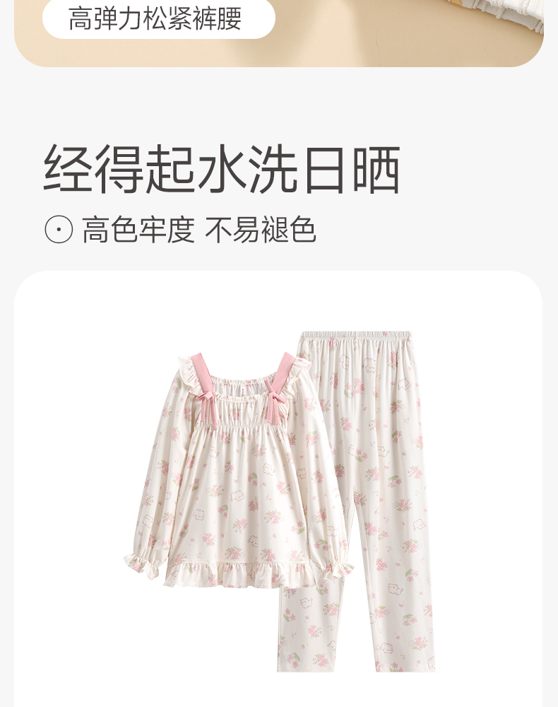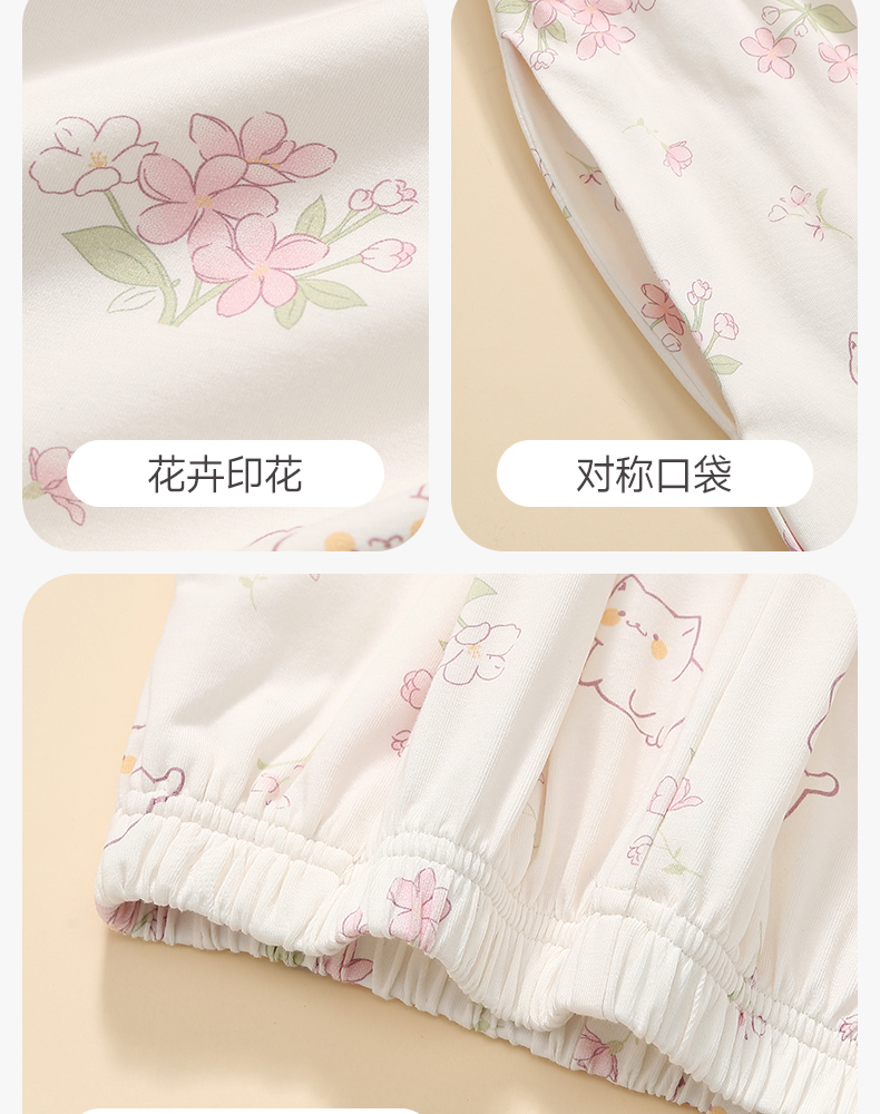芬腾女士睡衣春秋季纯棉长袖方领套装女款宽松休闲大码全棉家居服