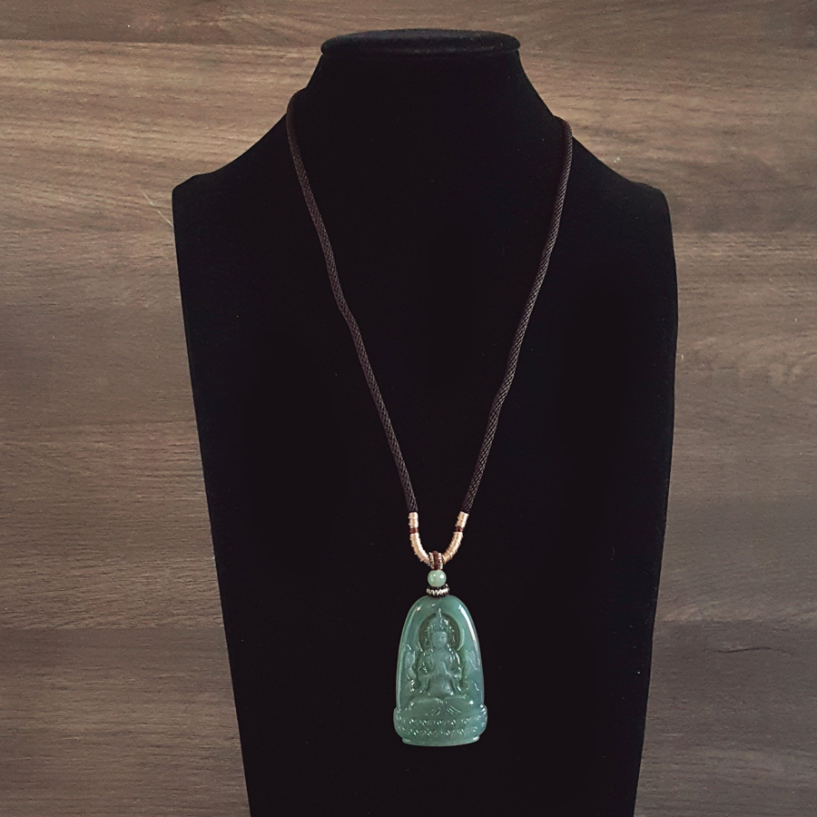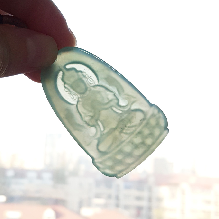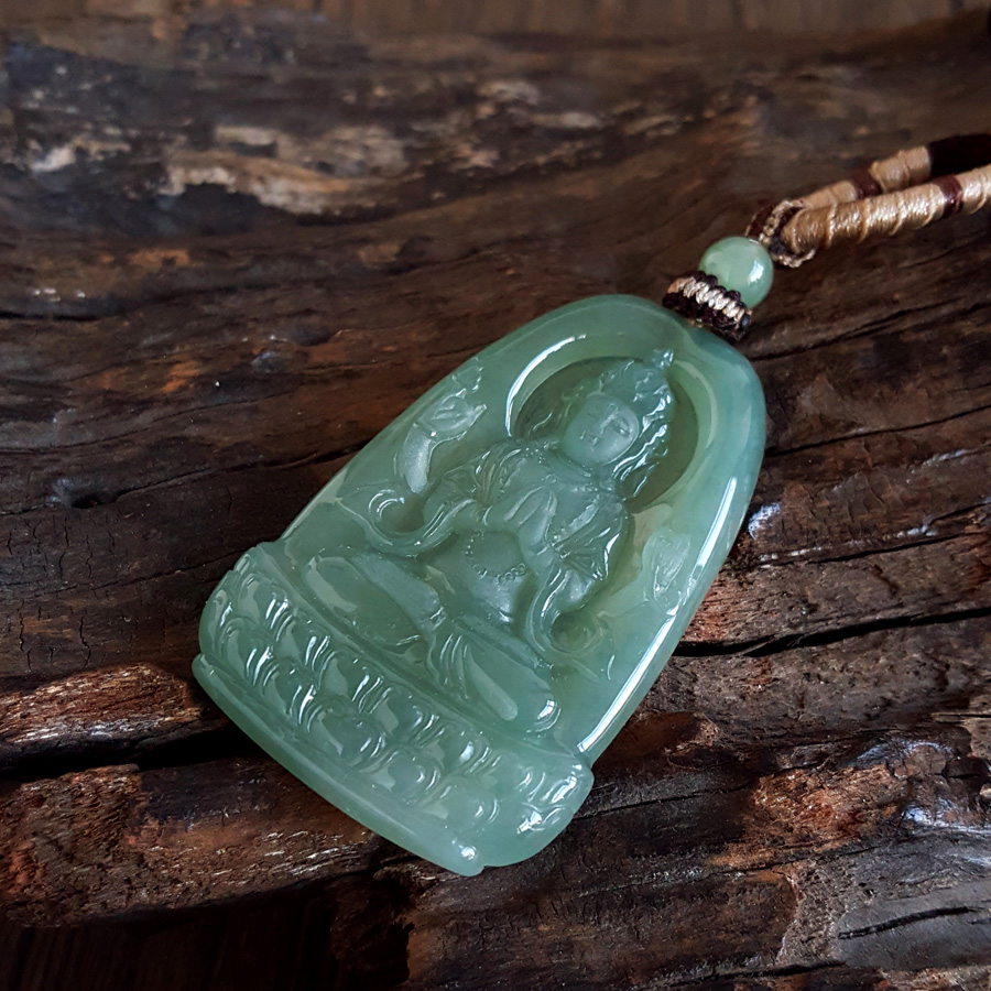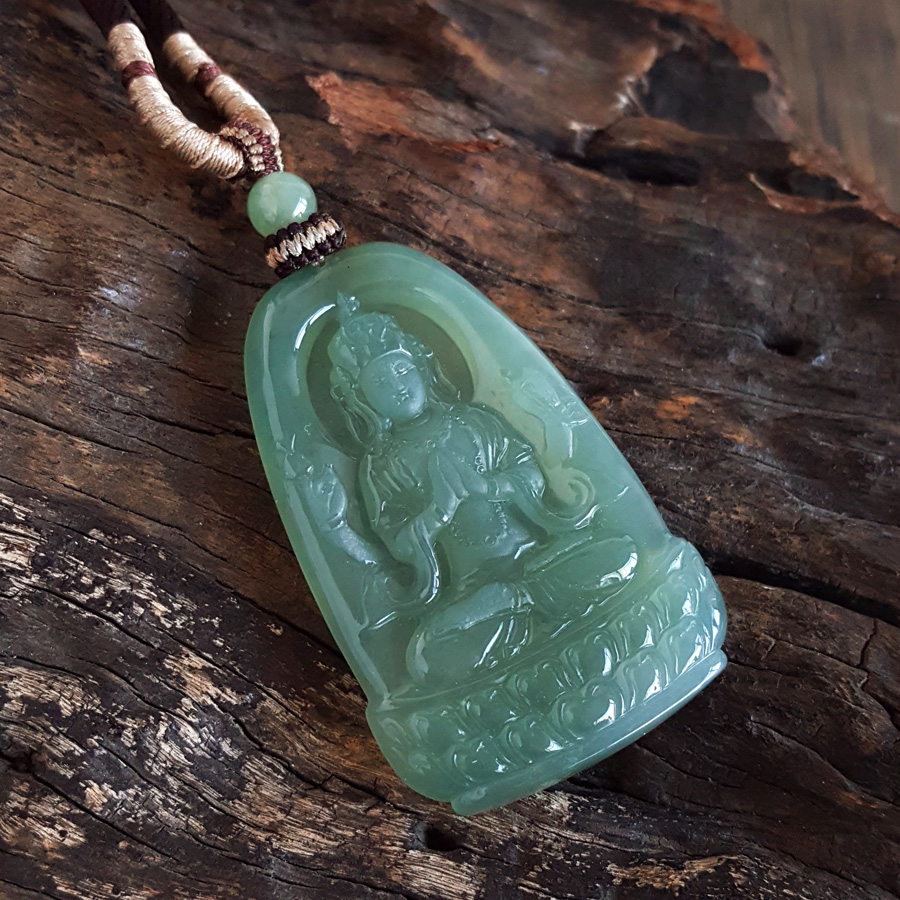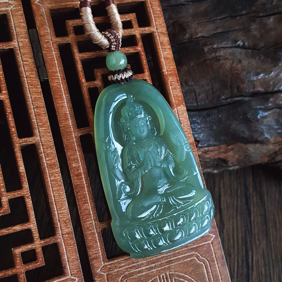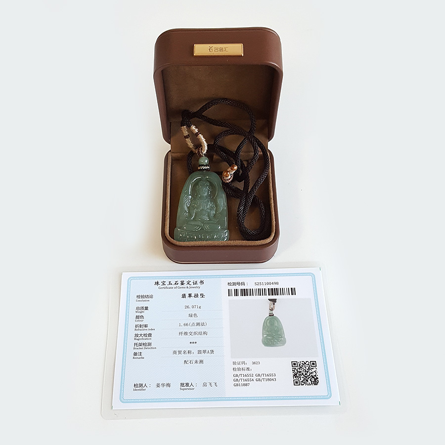 名称 | 天然无杂裂冰种绿色观音翡翠(平安、吉祥)吊坠项链 |