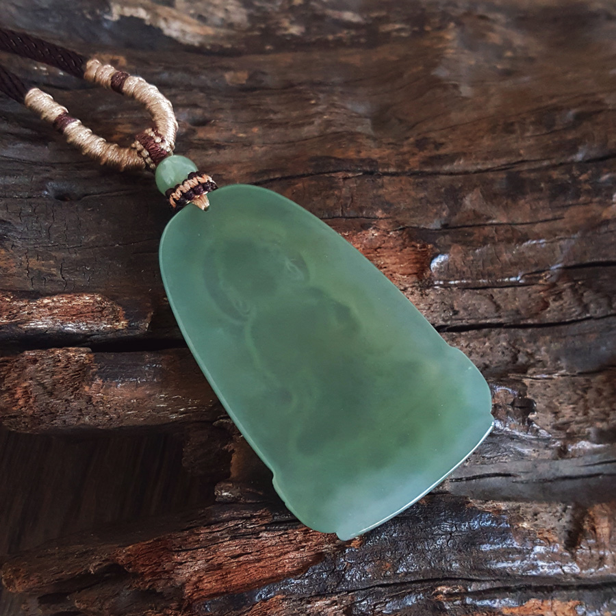 【天然正品】A货翡翠天然无杂裂冰种绿色观音翡翠(平安、吉祥)吊坠项链55.8*35.1*5.0MM(皆取最大值)男士、中性131125NJM41特价:1280