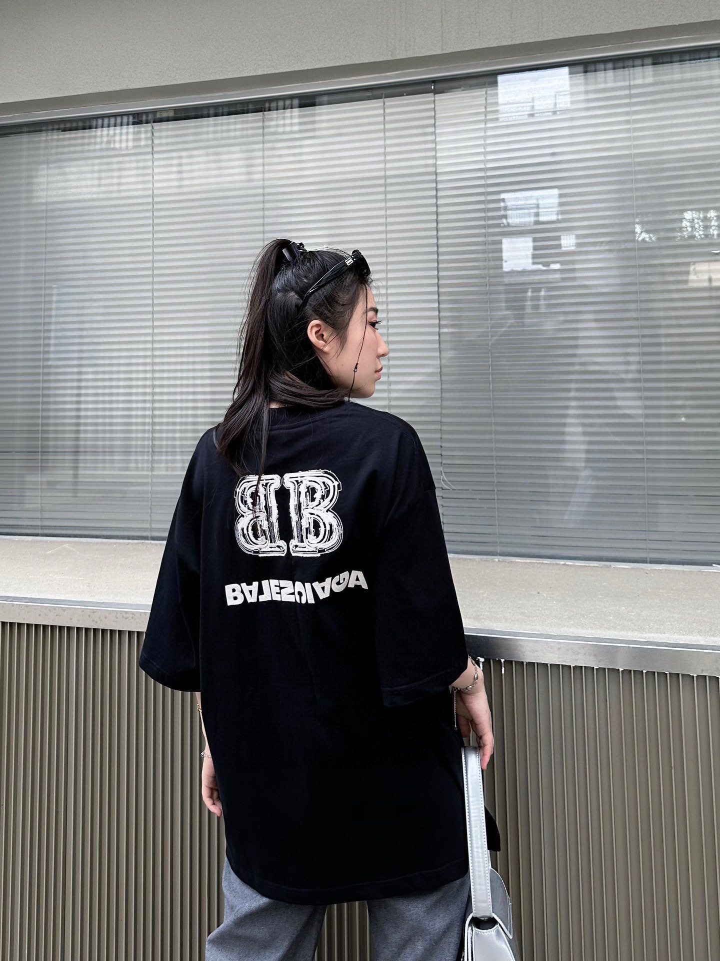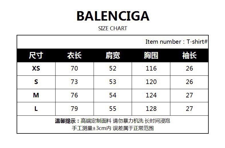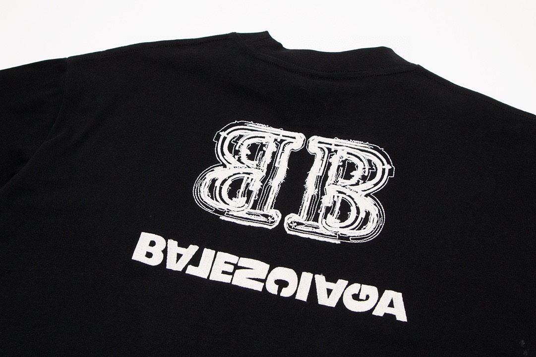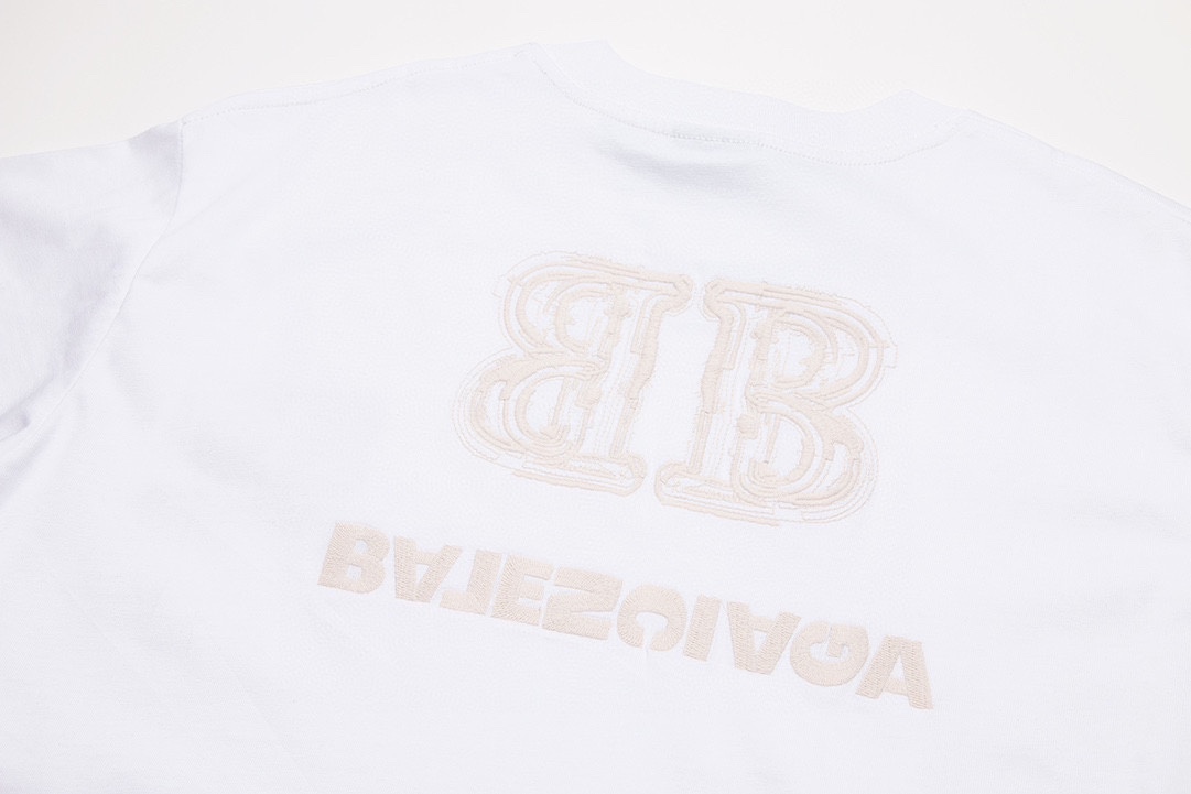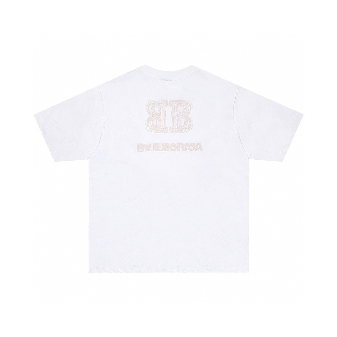 -BALENC*GA 巴黎新款BB反字母刺绣短袖T恤