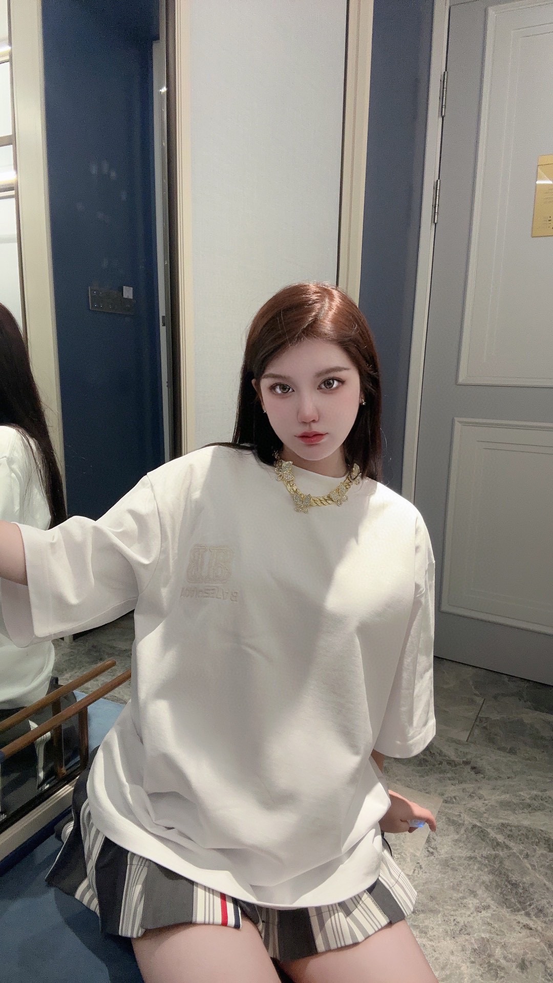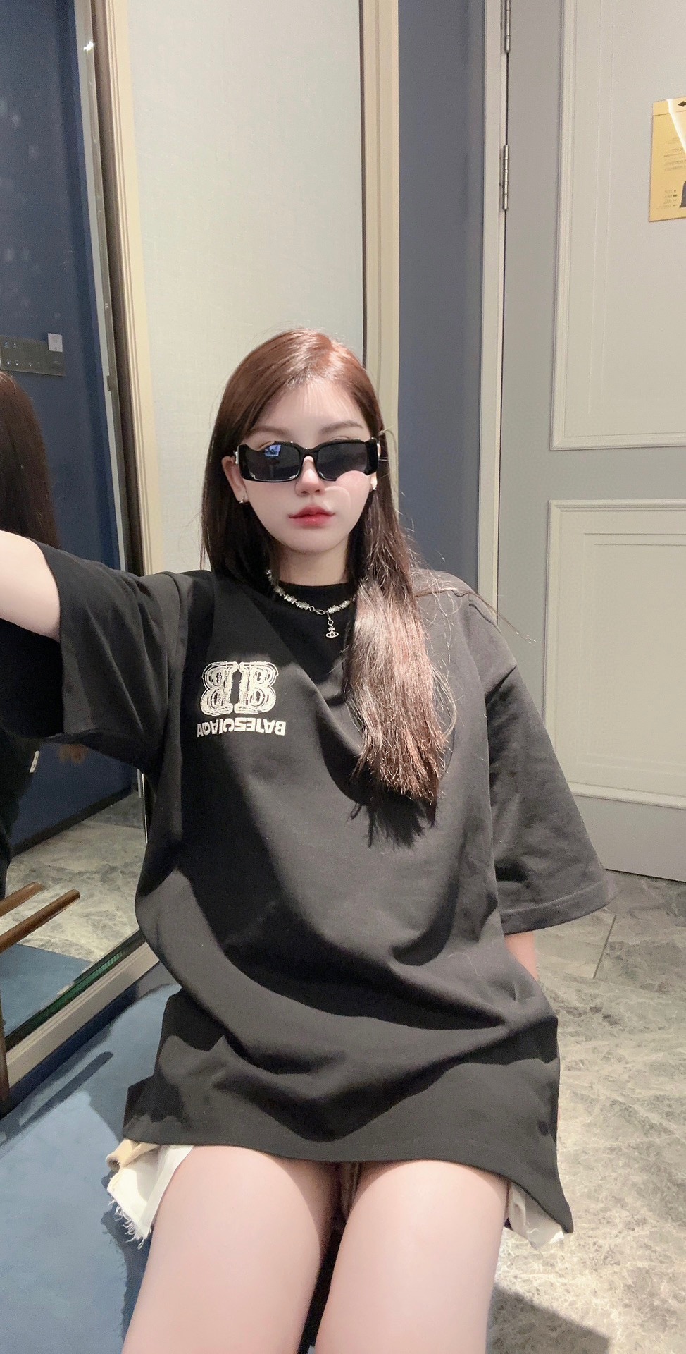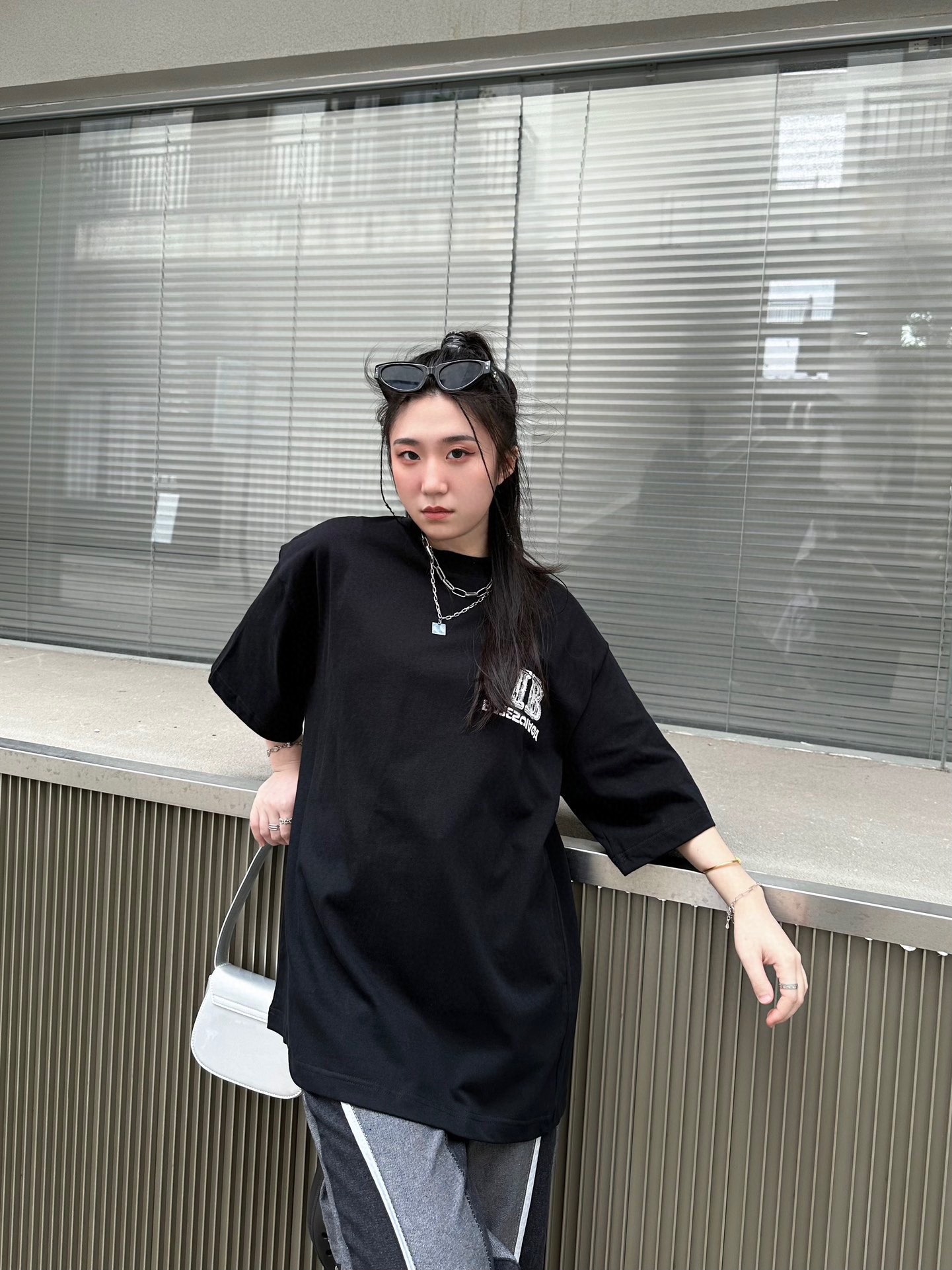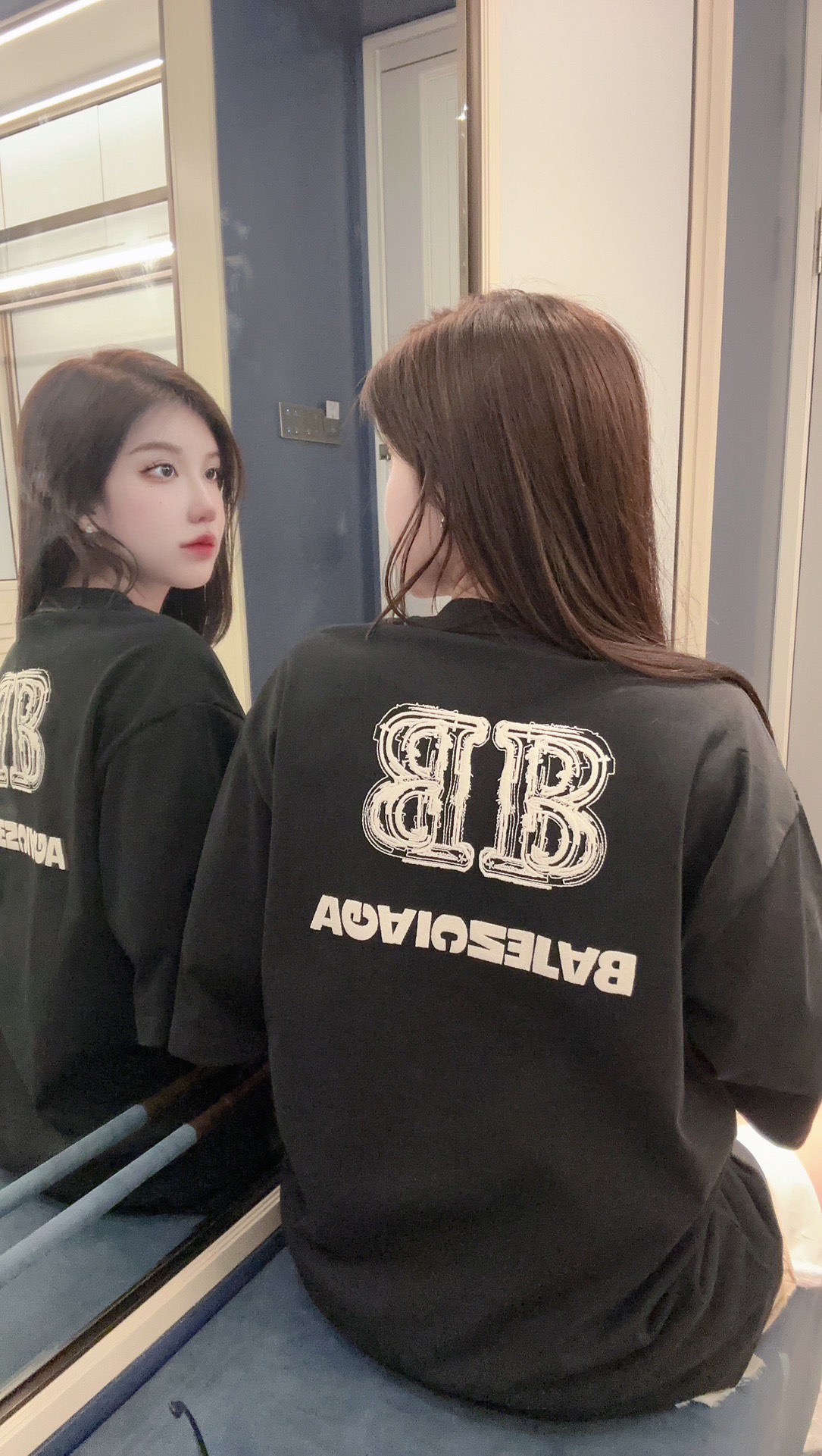 -BALENC*GA 巴黎新款BB反字母刺绣短袖T恤