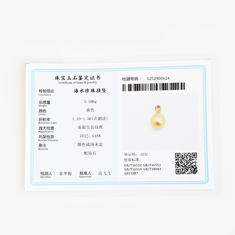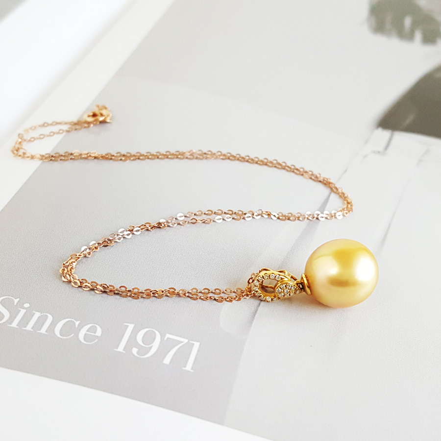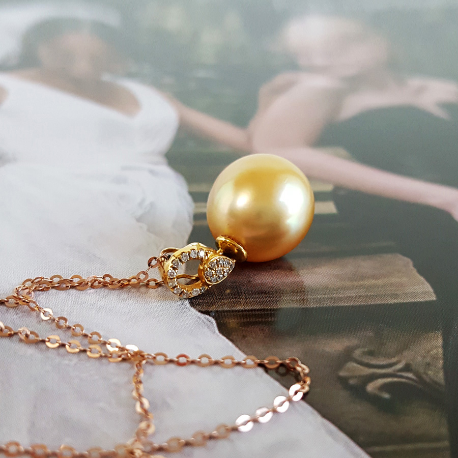 名称 | AU750黄金镶钻镶天然近完美约11.8MM浓金色南洋海水珍珠吊坠项链 |
