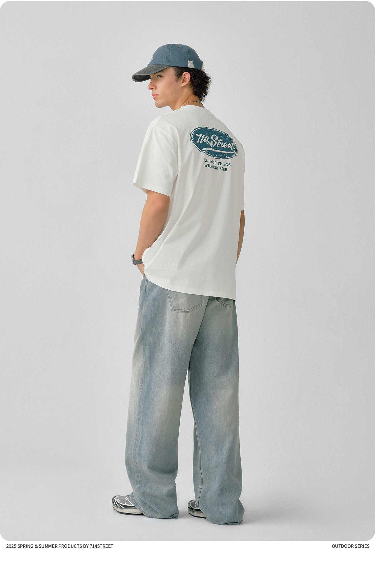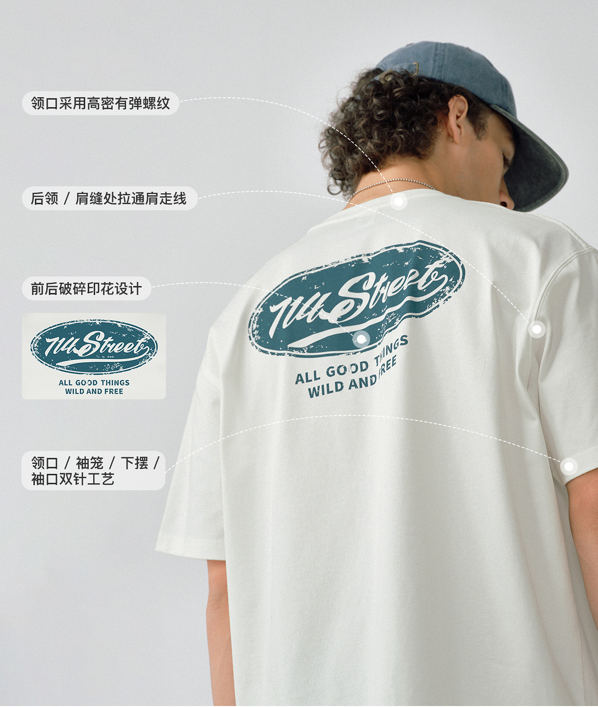 714street字母印花凉感短袖T恤男夏季新款抗皱宽松防晒上衣情侣装